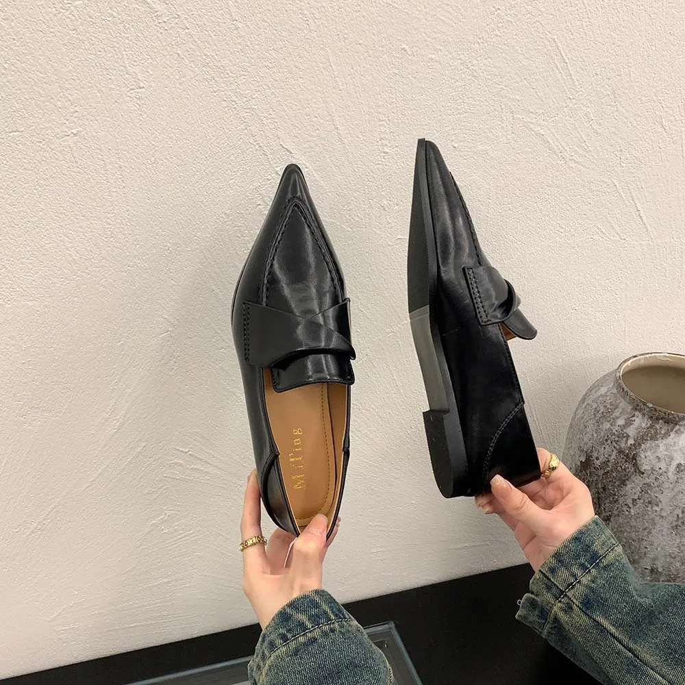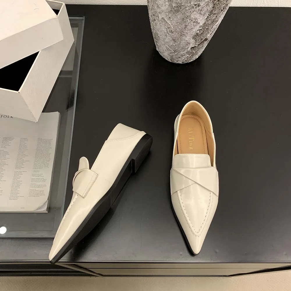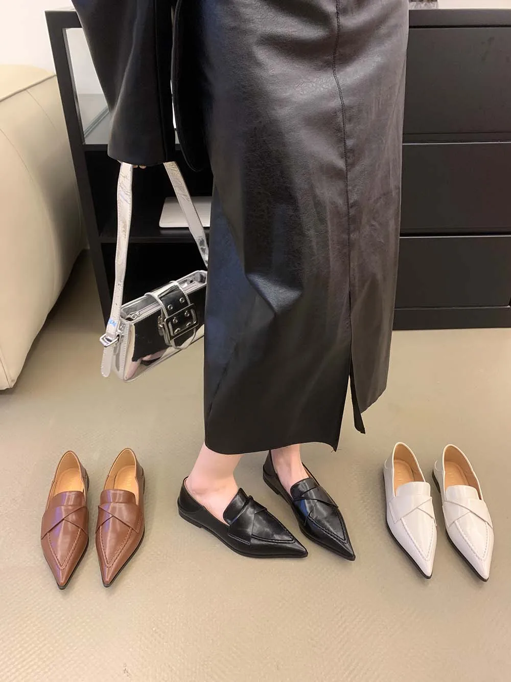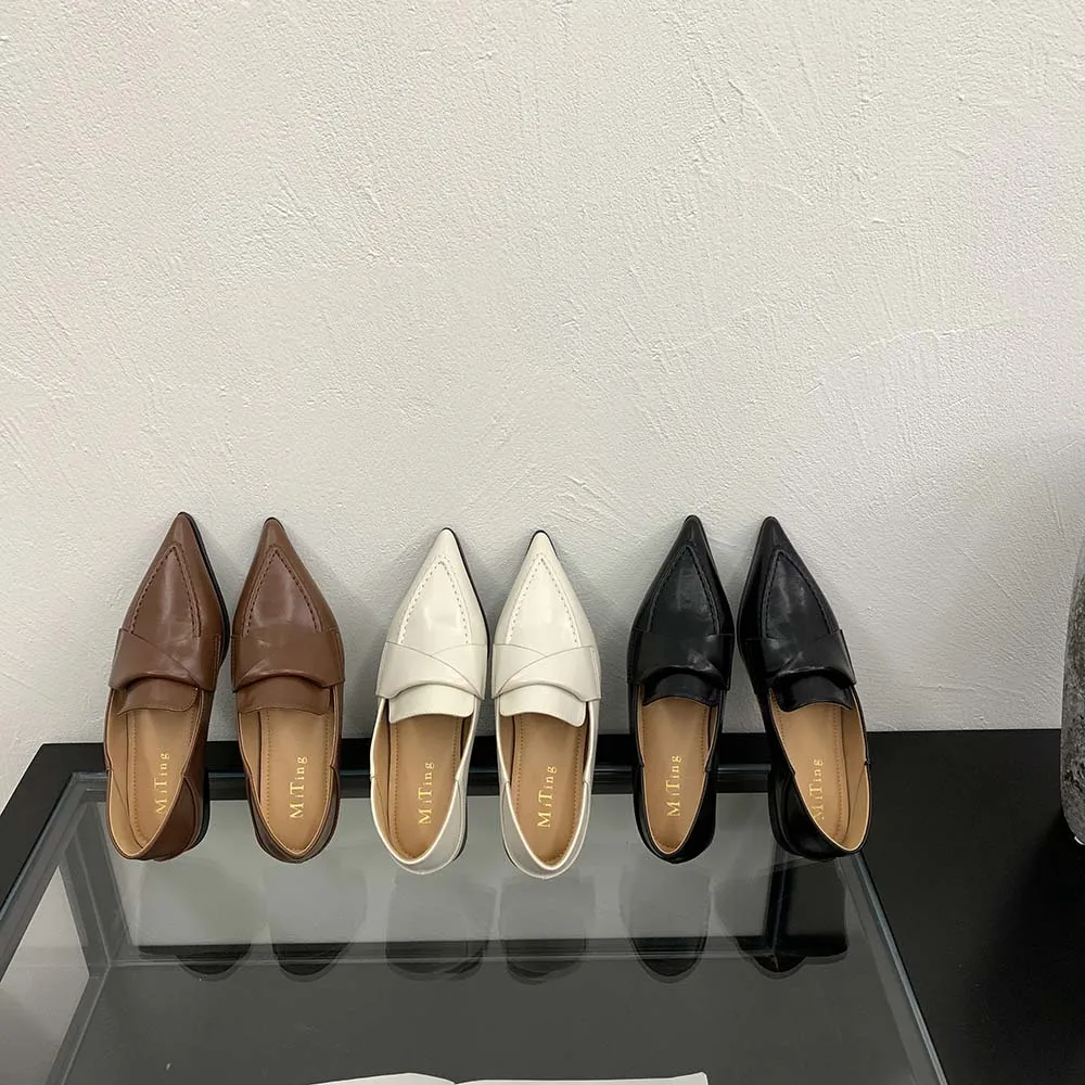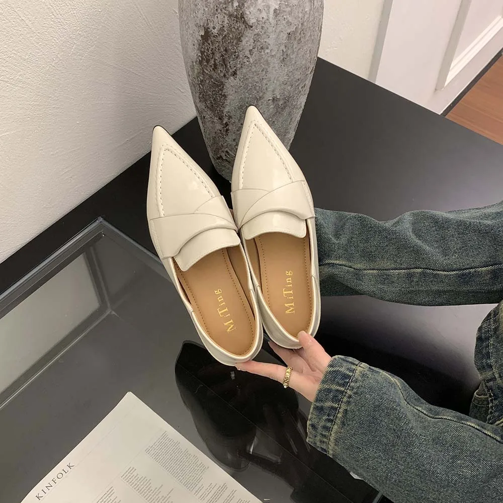 Fashion Women Loafers 2024 New Arrivals Autumn/Spring Dress Shoes Pointed Toe Black White Brown Ladies Mary Janes Size 35-39