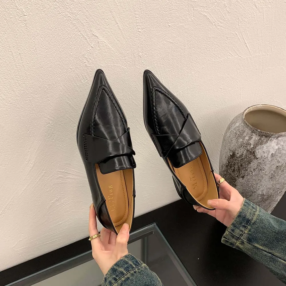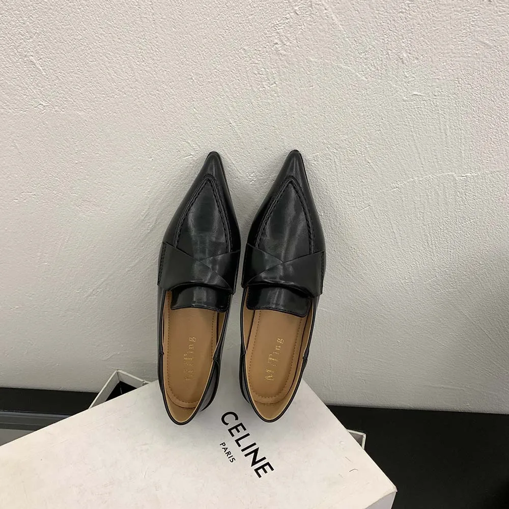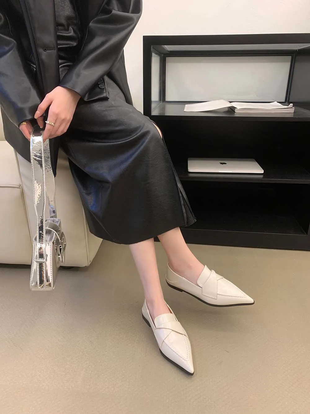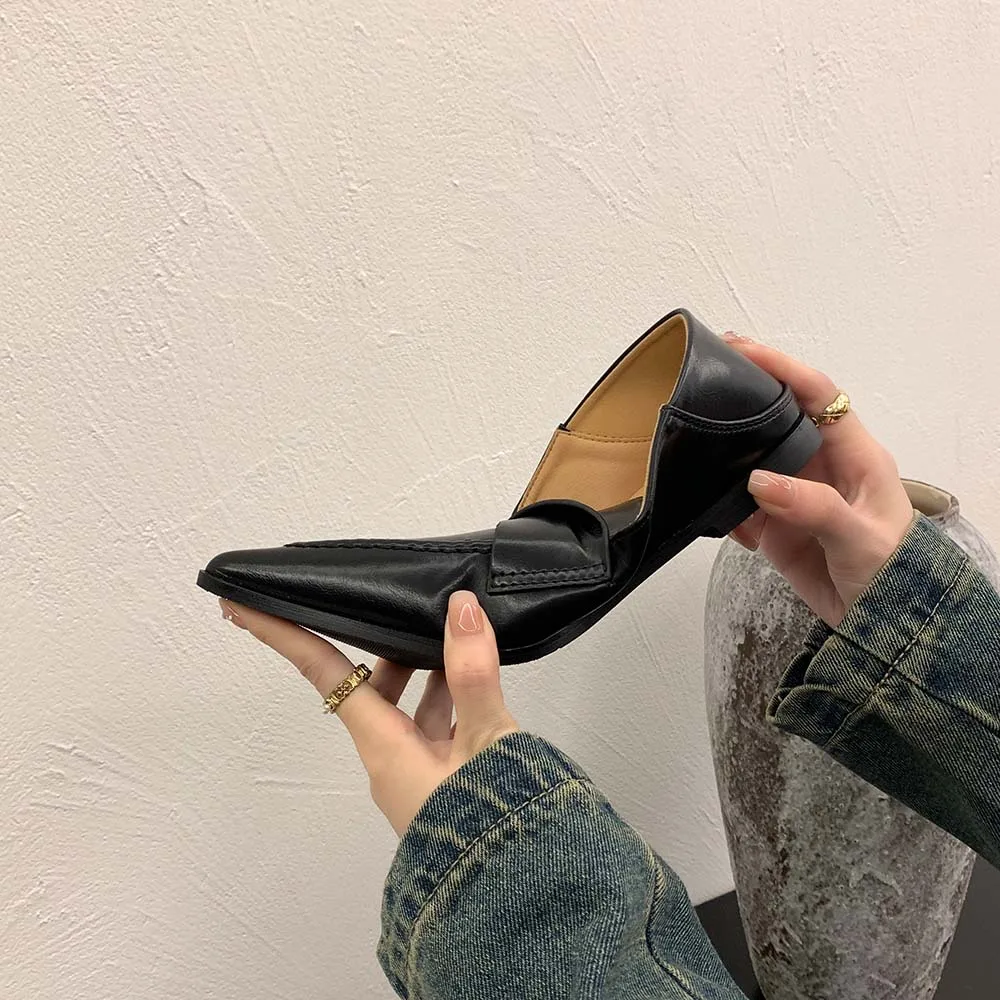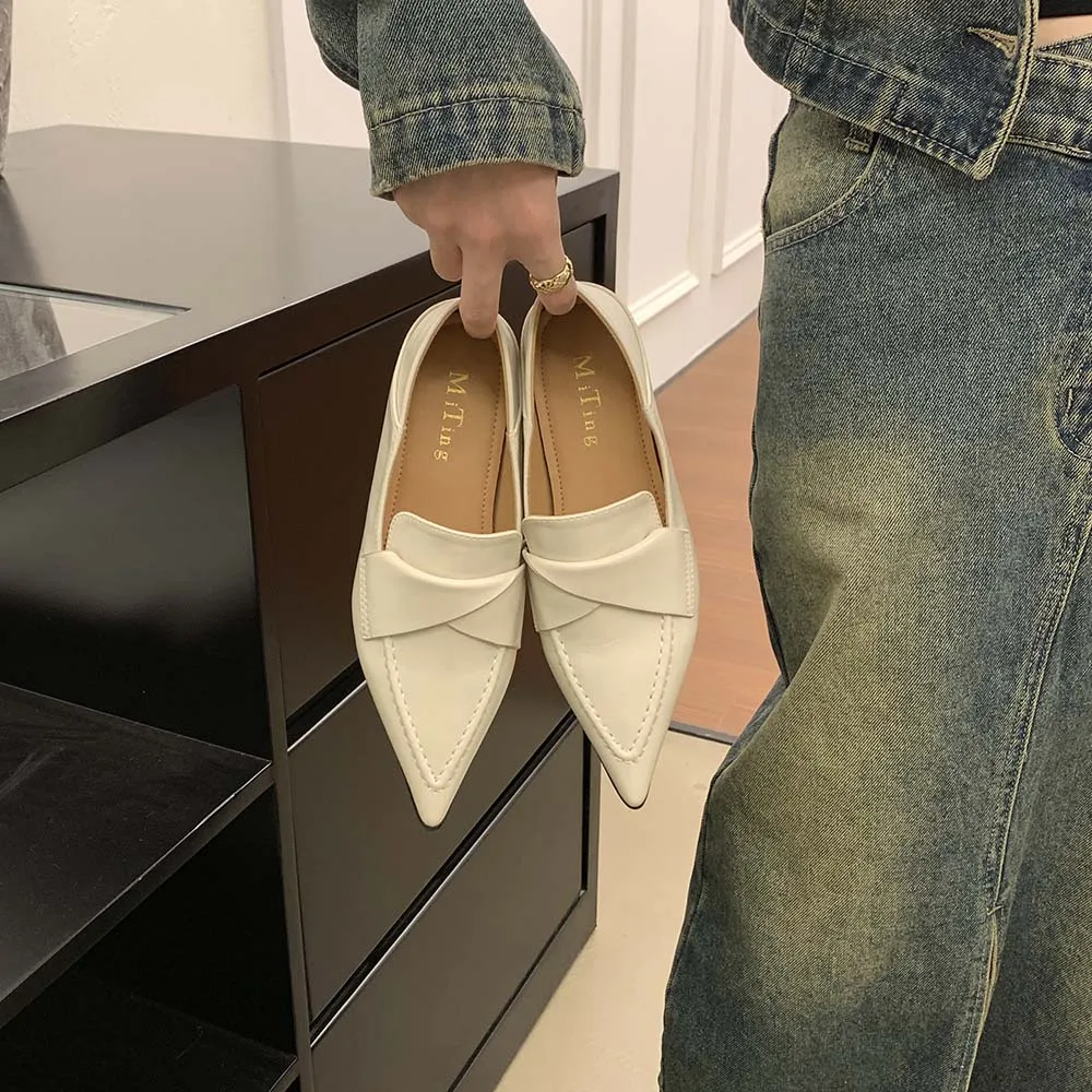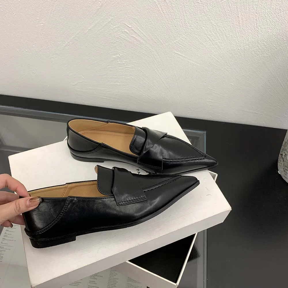 Fashion Women Loafers 2024 New Arrivals Autumn/Spring Dress Shoes Pointed Toe Black White Brown Ladies Mary Janes Size 35-39
