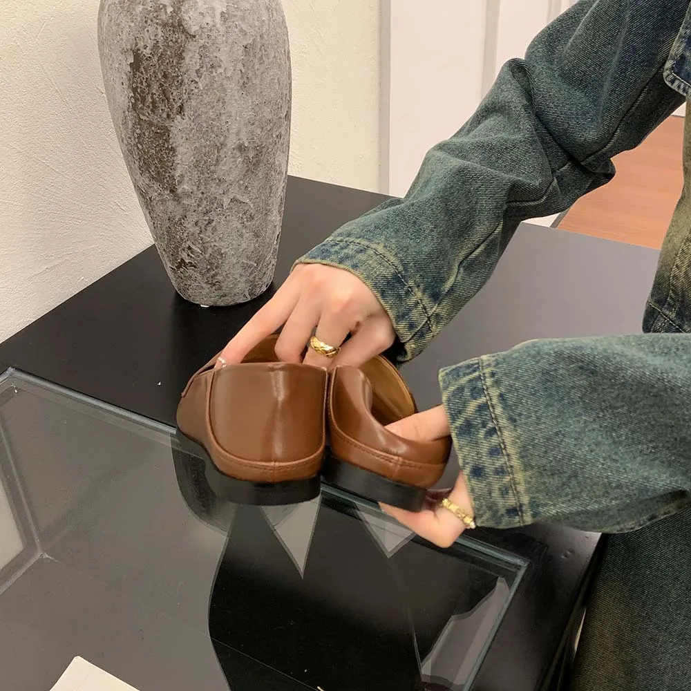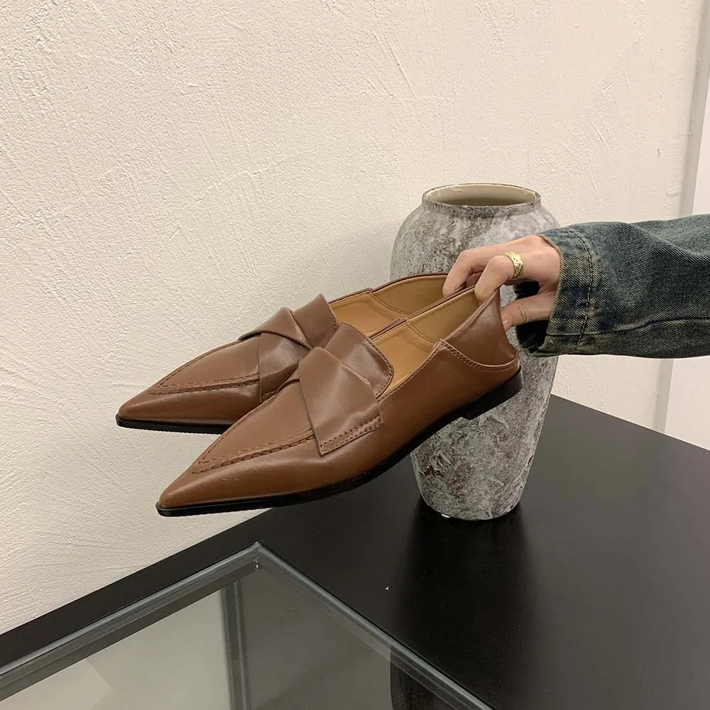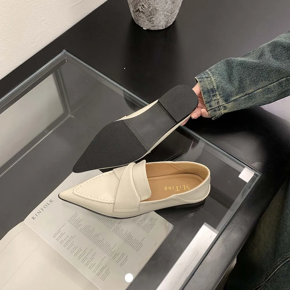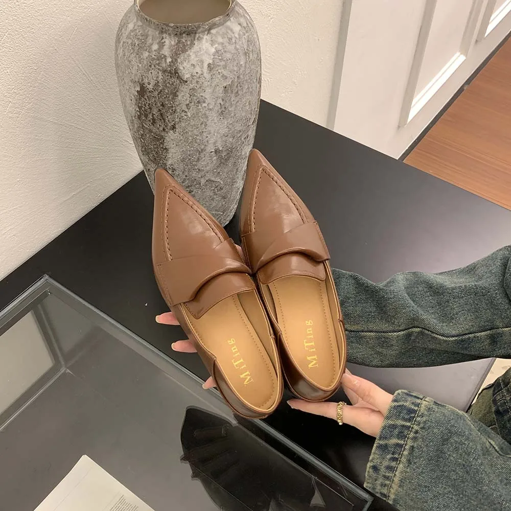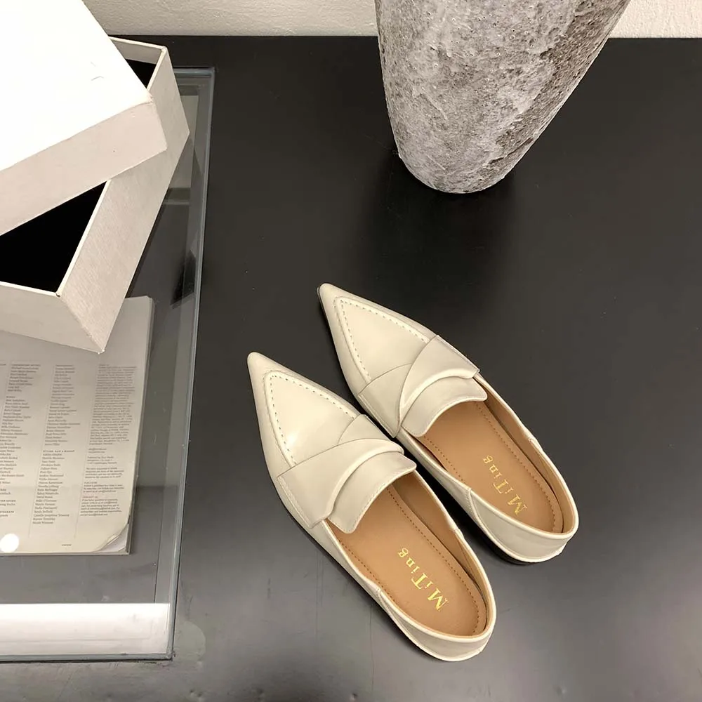 Fashion Women Loafers 2024 New Arrivals Autumn/Spring Dress Shoes Pointed Toe Black White Brown Ladies Mary Janes Size 35-39