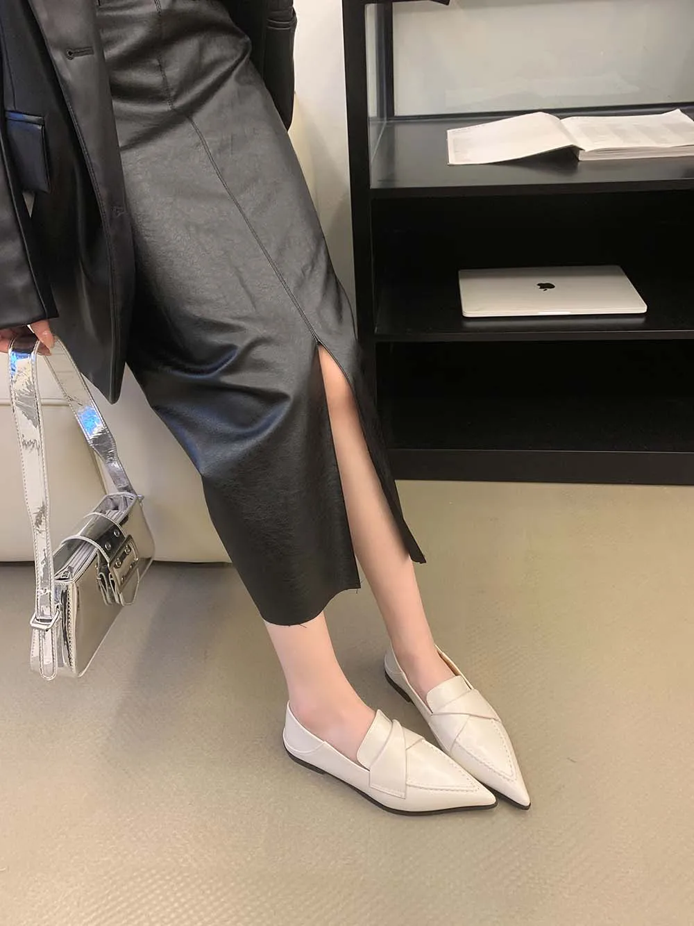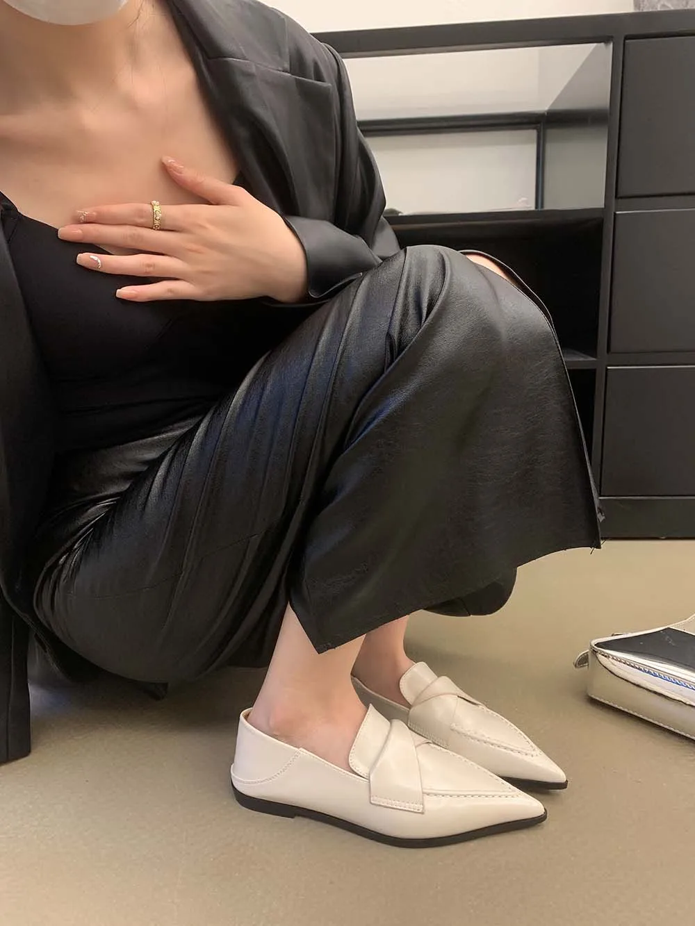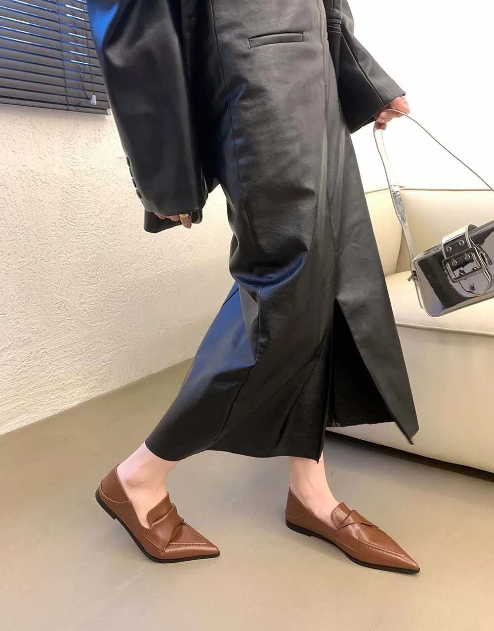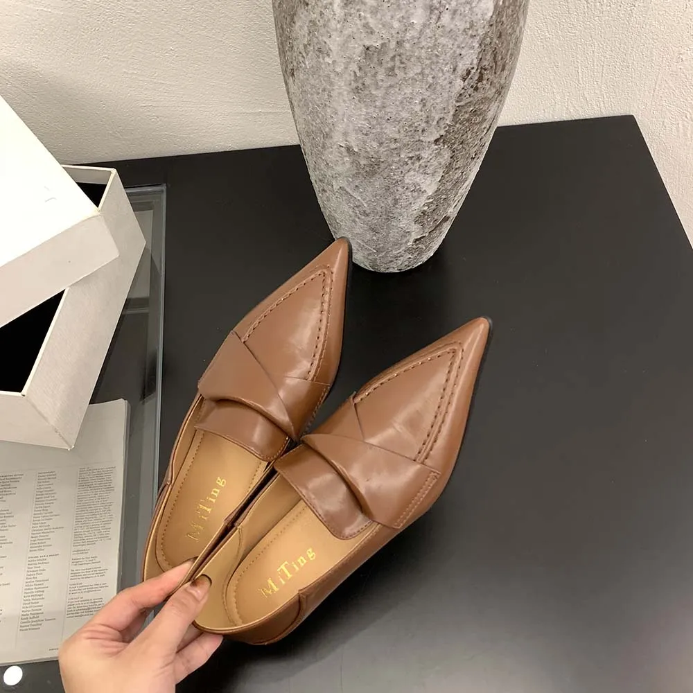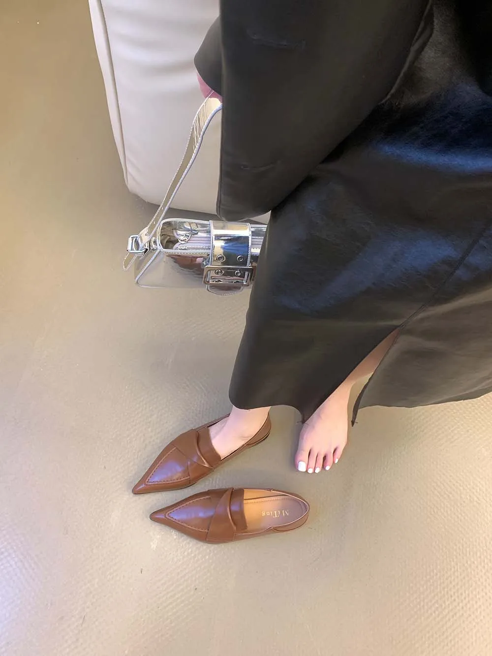 Fashion Women Loafers 2024 New Arrivals Autumn/Spring Dress Shoes Pointed Toe Black White Brown Ladies Mary Janes Size 35-39