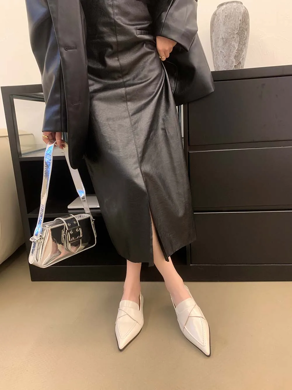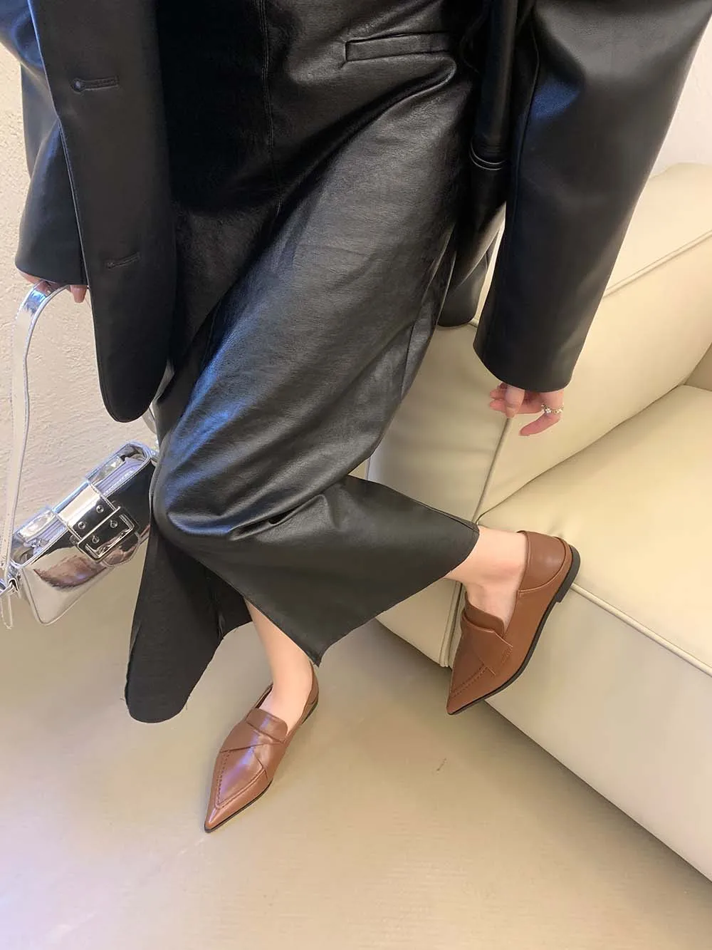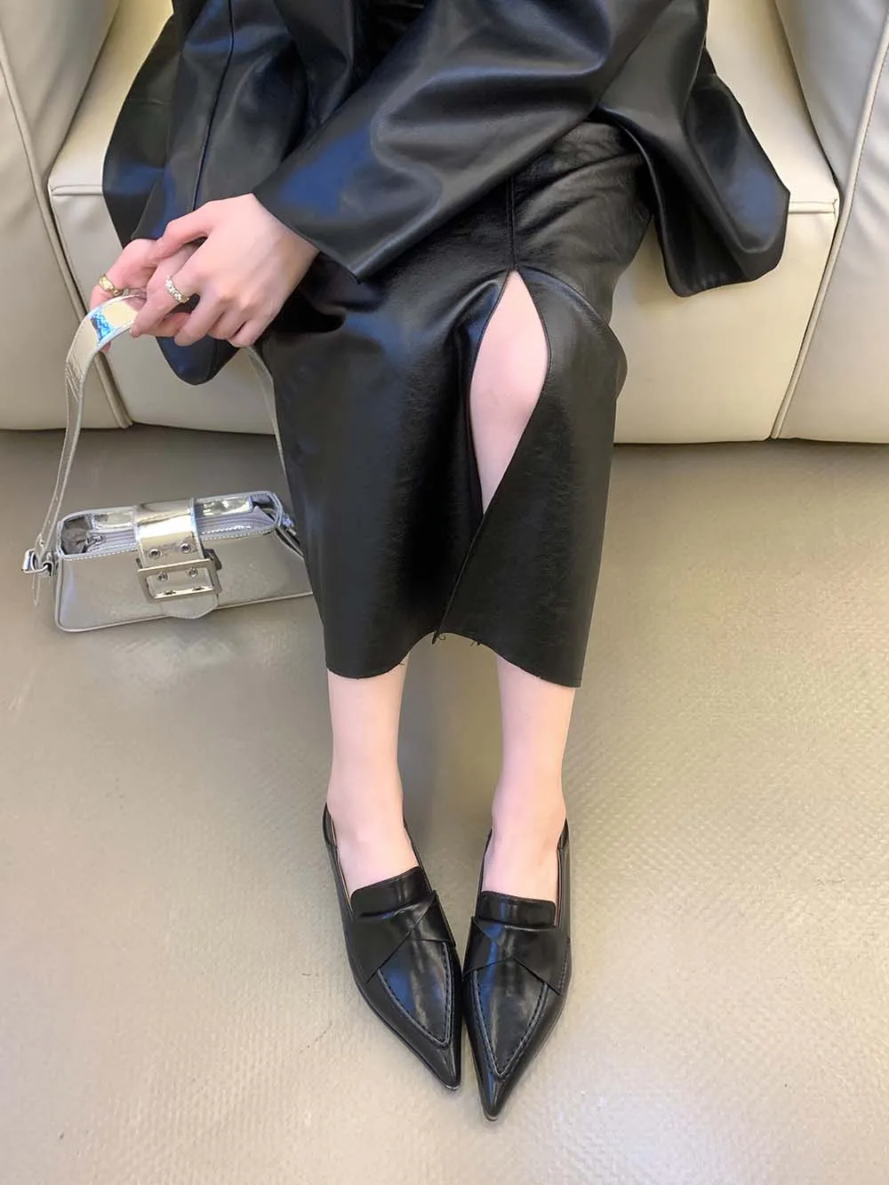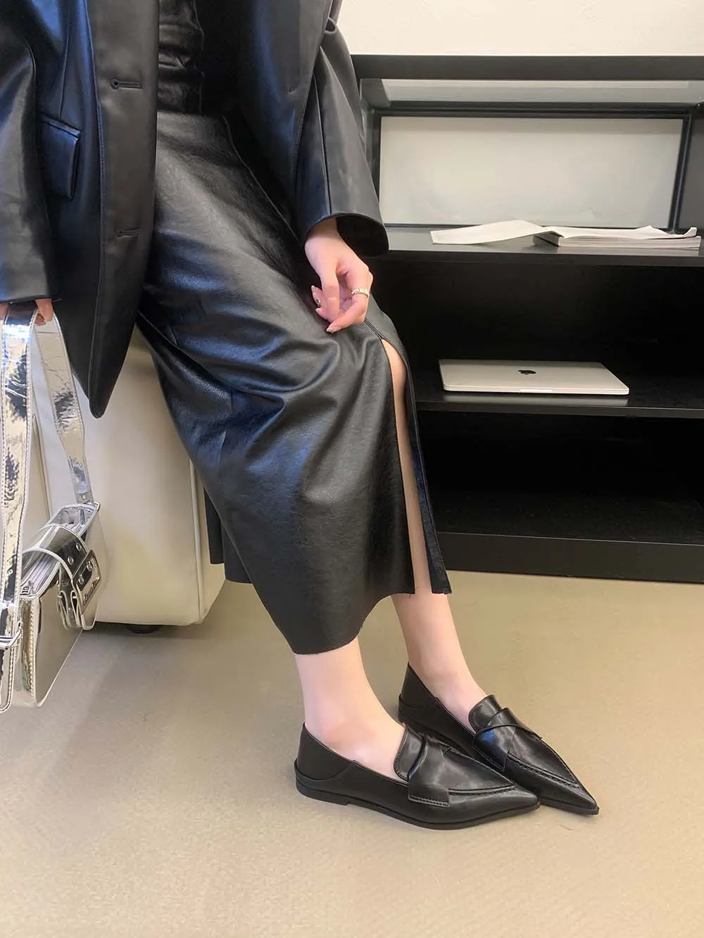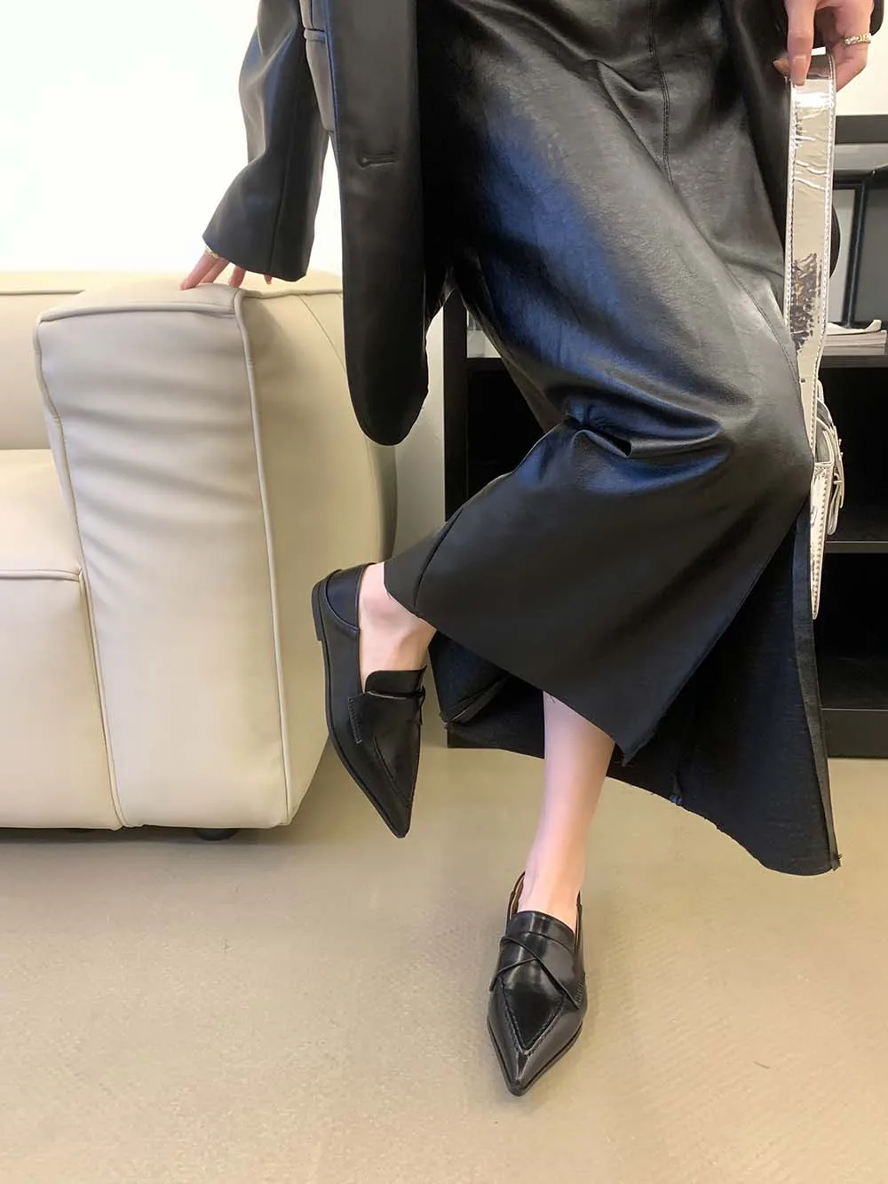 Fashion Women Loafers 2024 New Arrivals Autumn/Spring Dress Shoes Pointed Toe Black White Brown Ladies Mary Janes Size 35-39