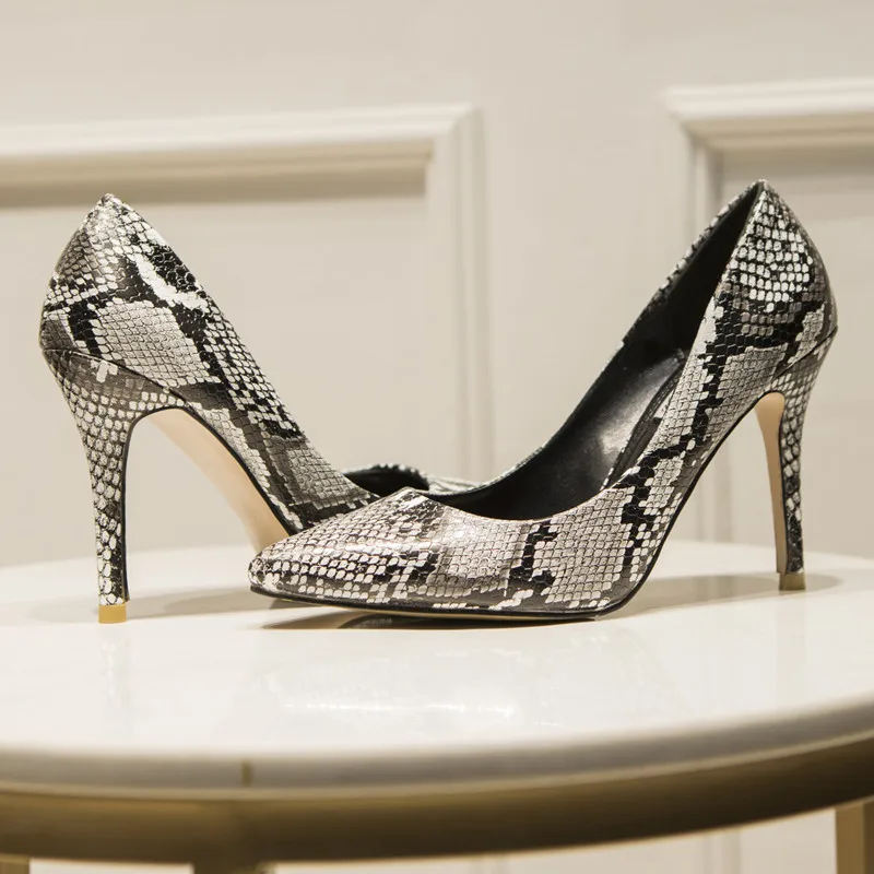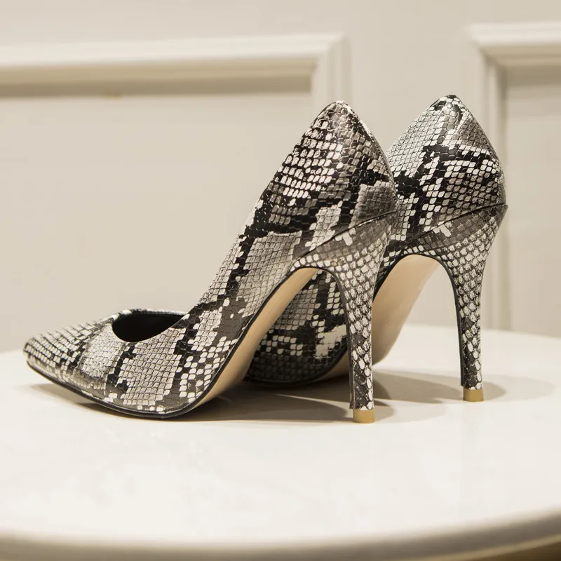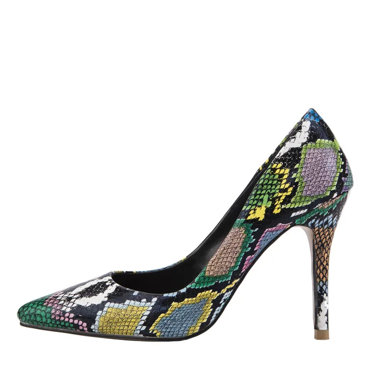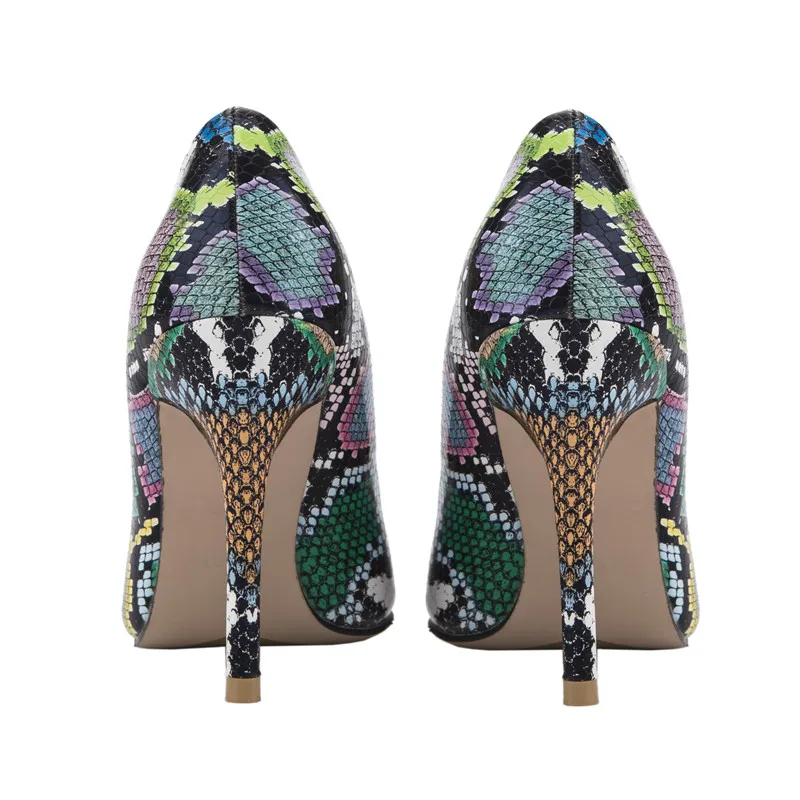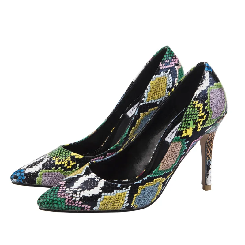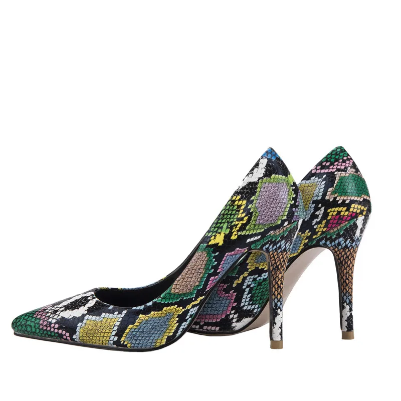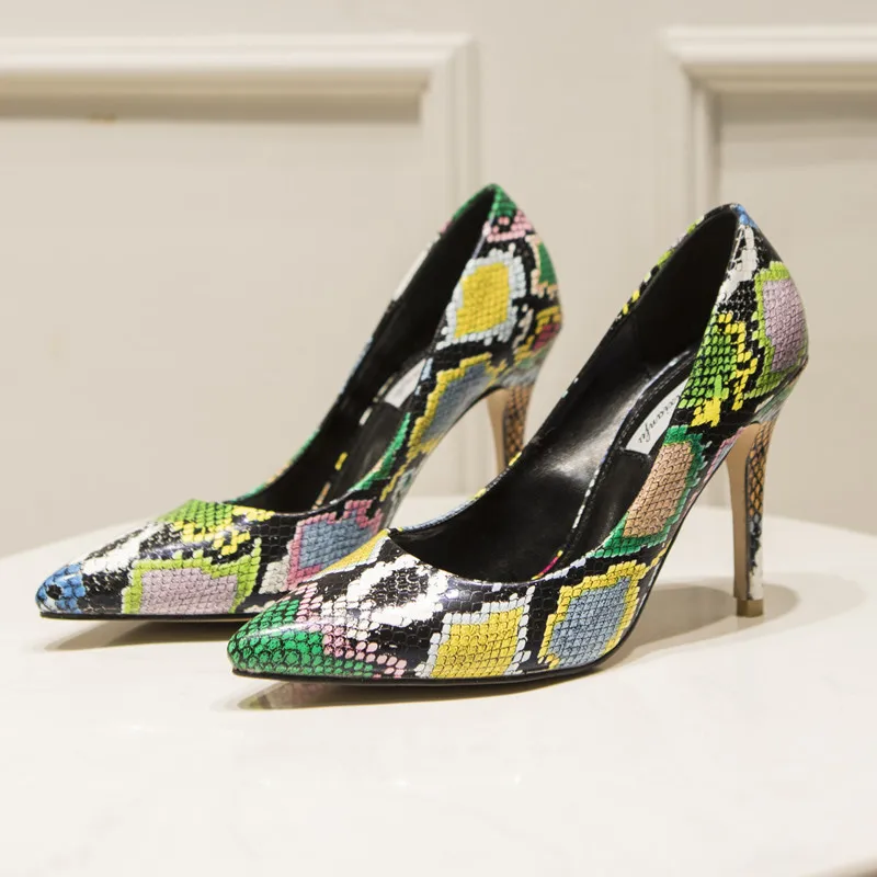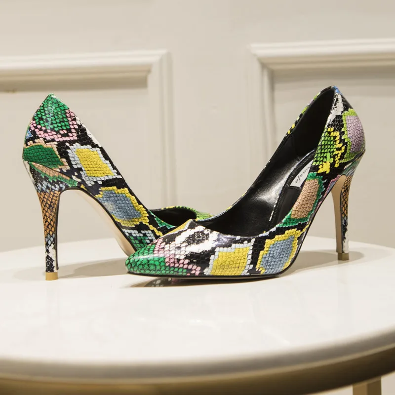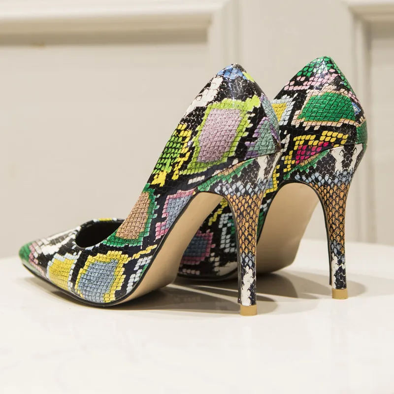 Fashion Women’s Shoes Colorful Snake Pattern High Heels 9cm Pointed Toe Sexy Shallow Female Pumps Slip-On Size 34–43 OULYYYOGO
