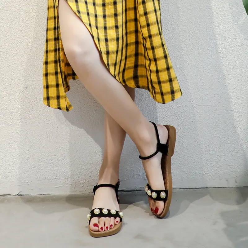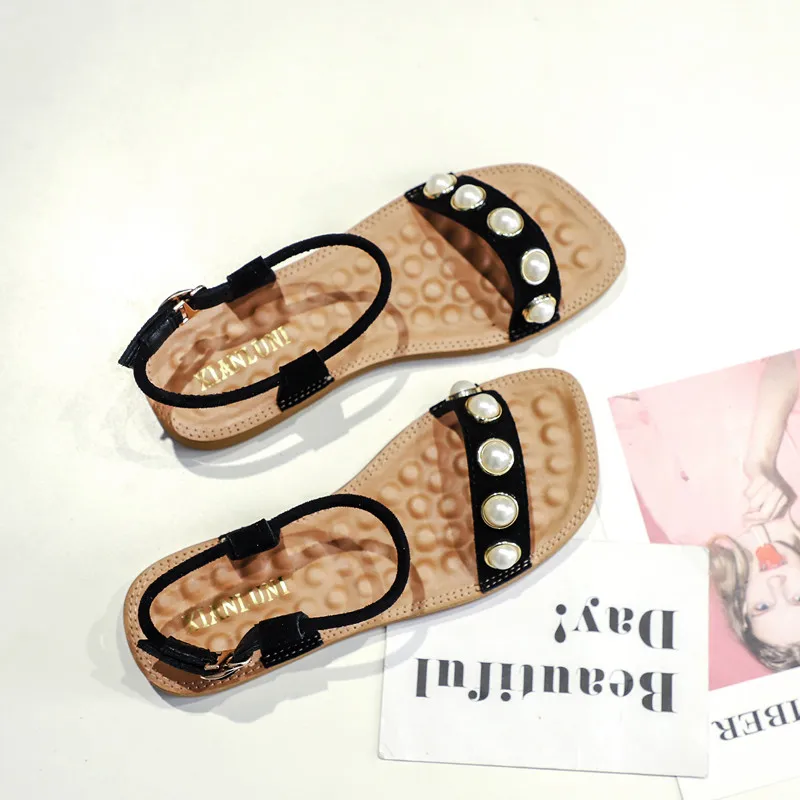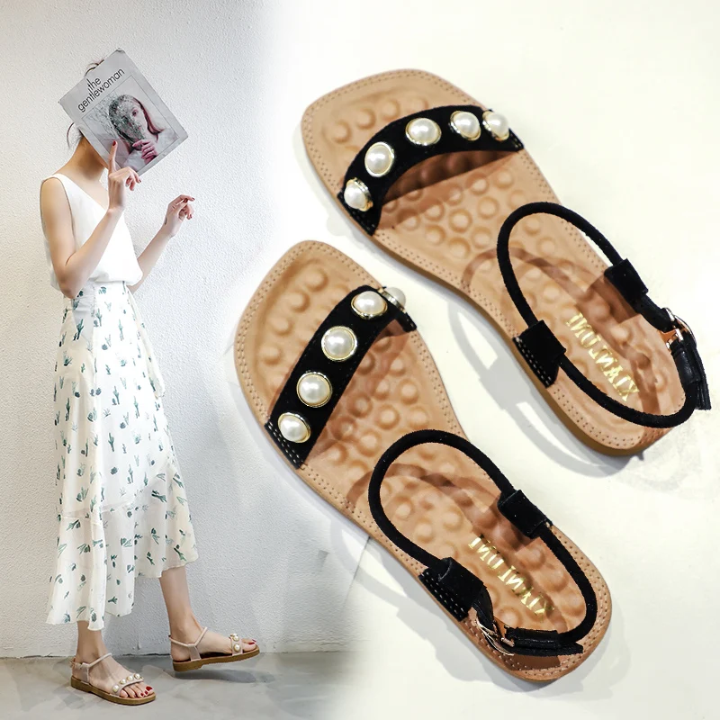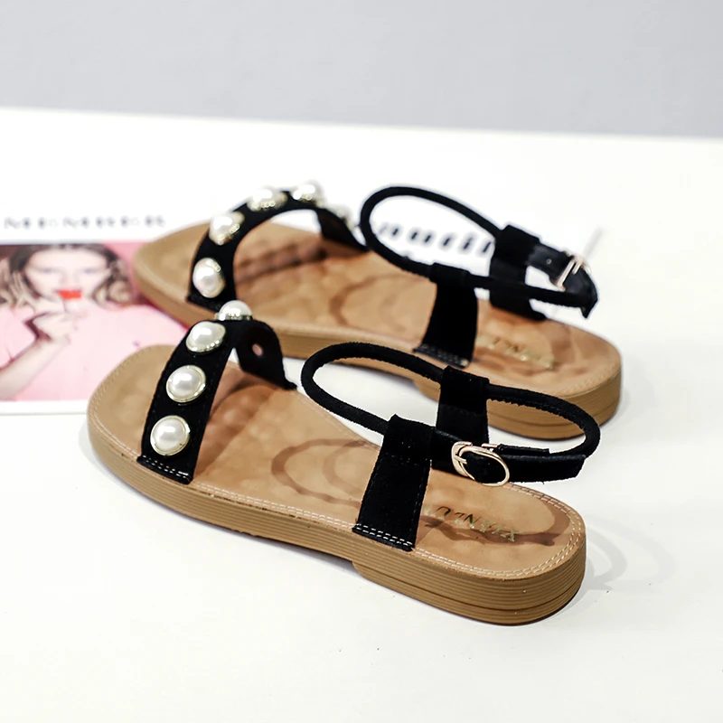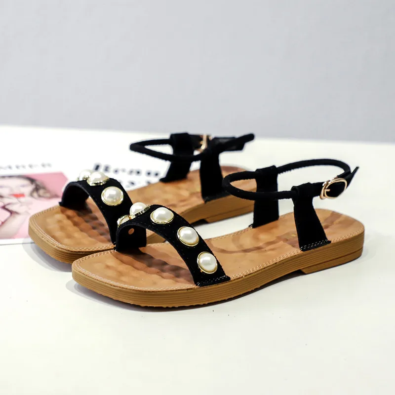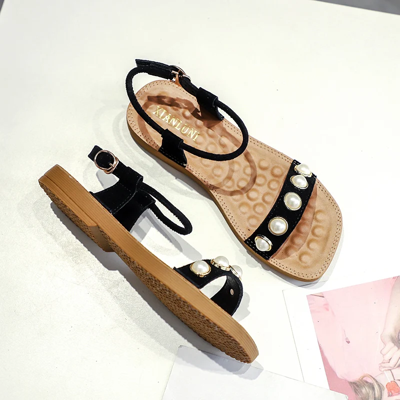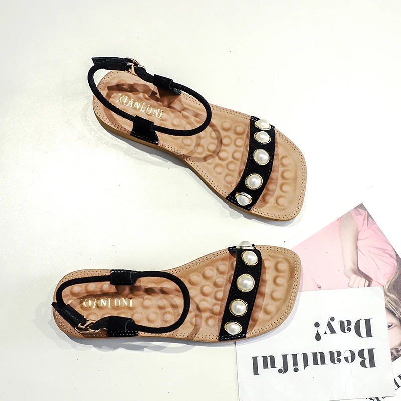 Fashion Women’s Shoes Summer Sandals Flat Platform Female Sandals 2 Colours Casual Bead Shoes Size: 35-43 OULYYYOGO