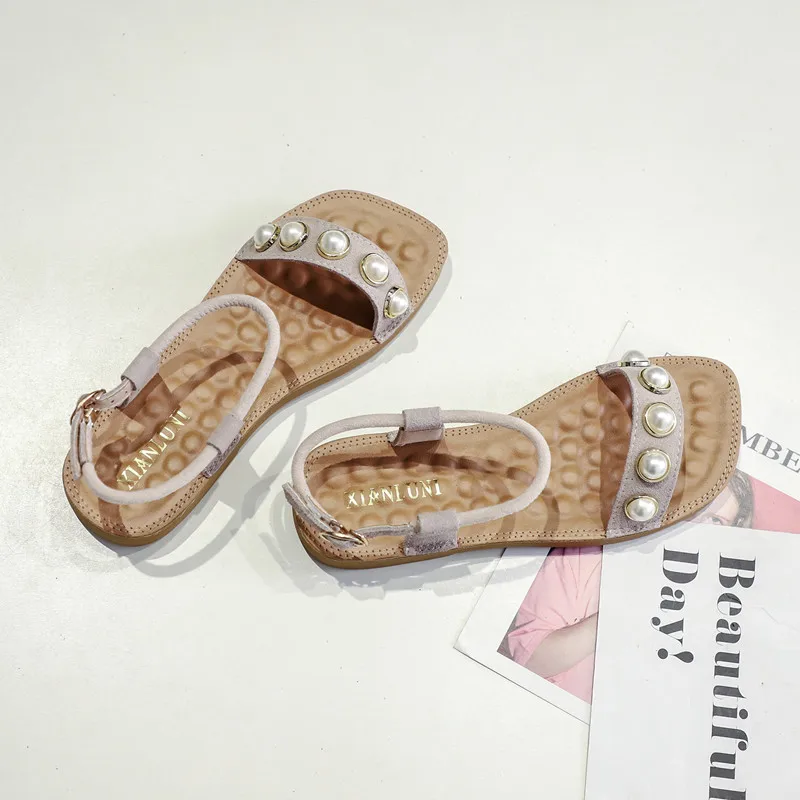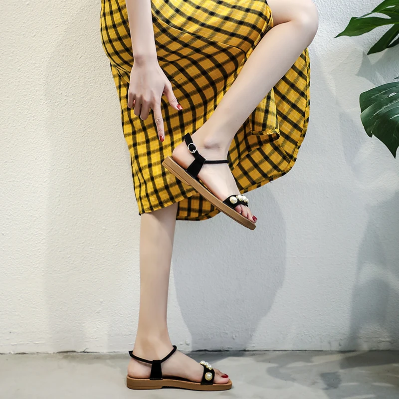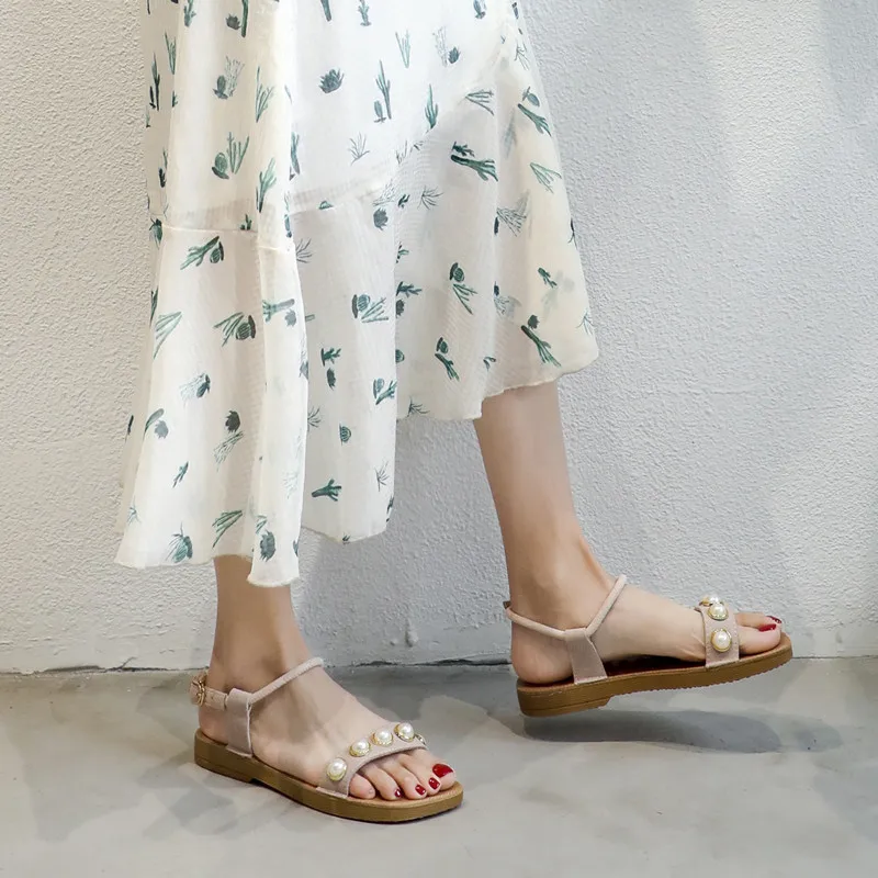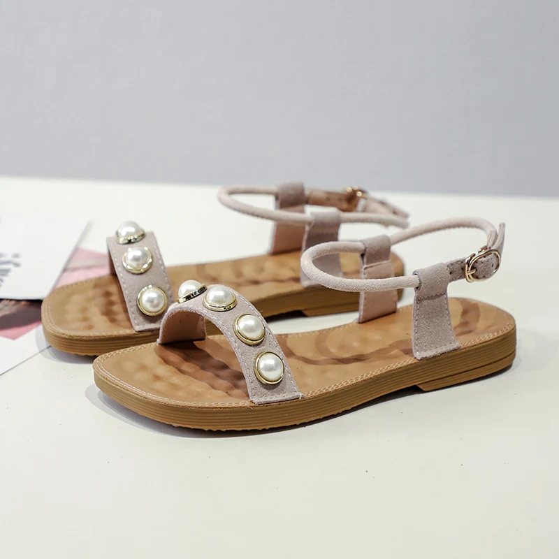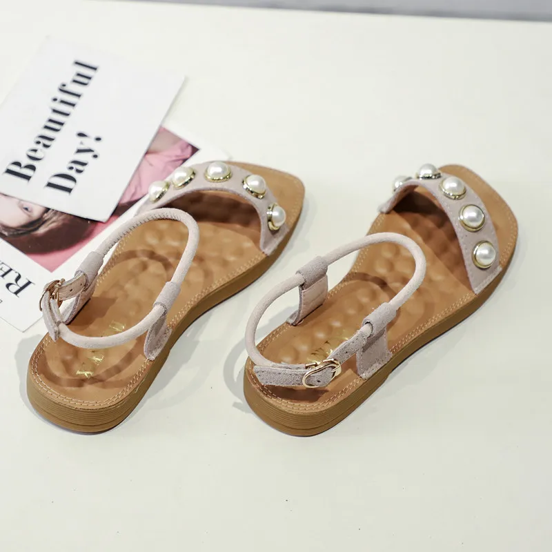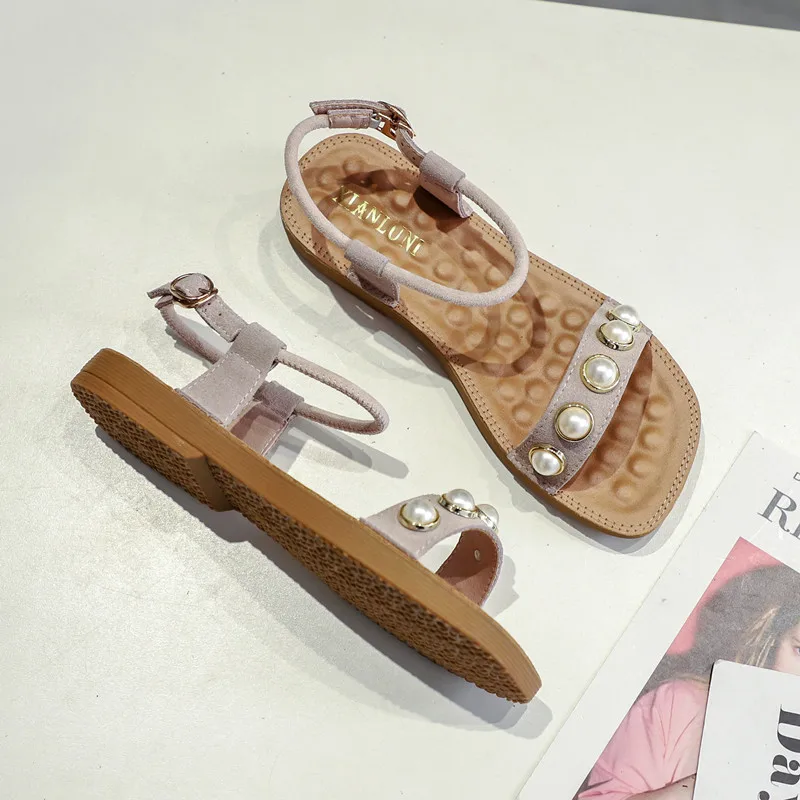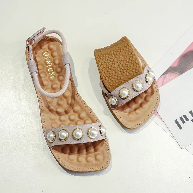 Fashion Women’s Shoes Summer Sandals Flat Platform Female Sandals 2 Colours Casual Bead Shoes Size: 35-43 OULYYYOGO