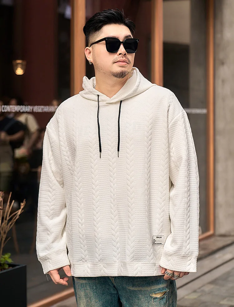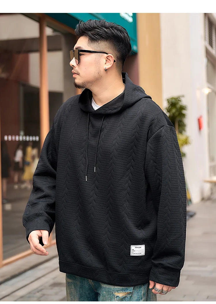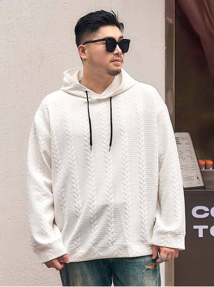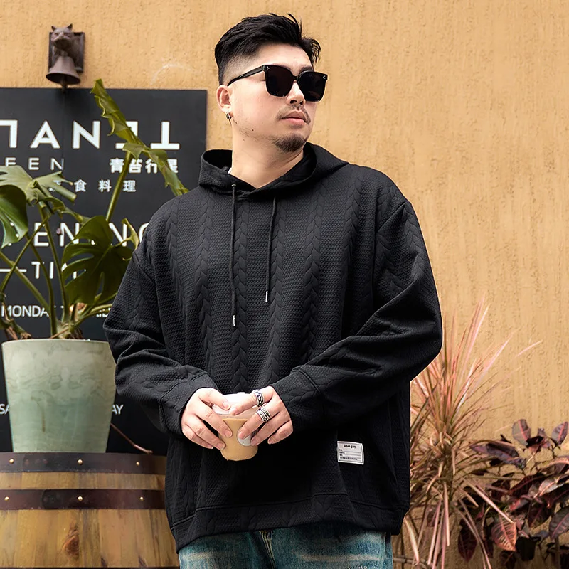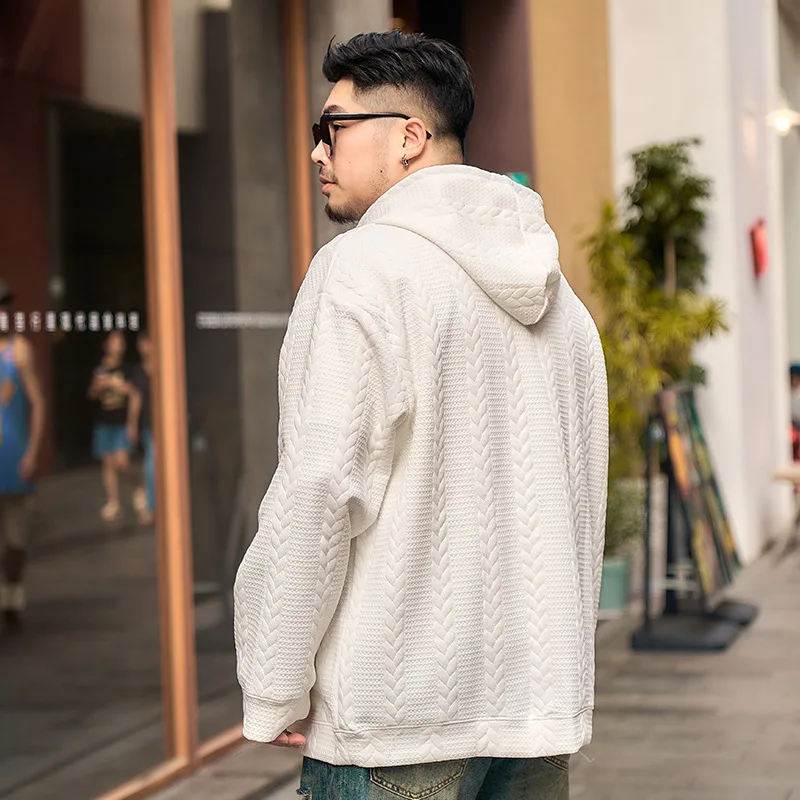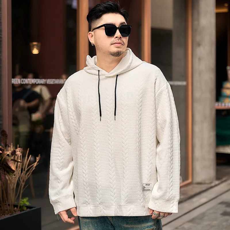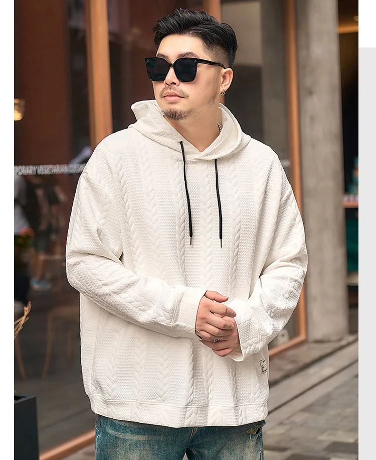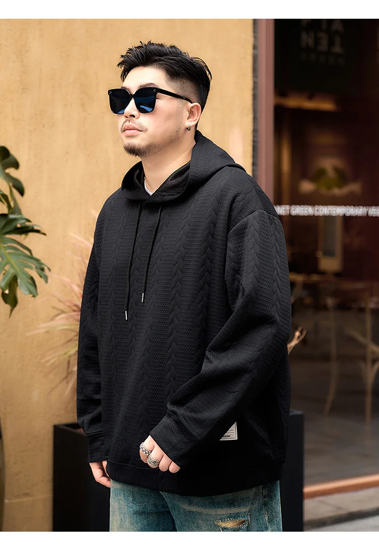 Fat Plus Size Men Hooded Sweater Autumn New Fried Dough Twists Braid Jacquard Fashion Fat Man Long Sleeve Hoodie 170kg 10xl
