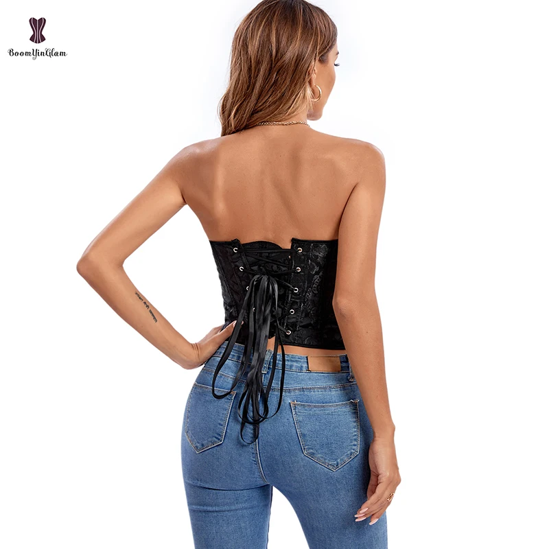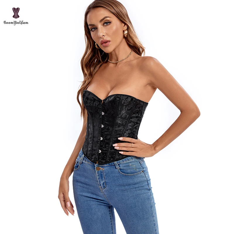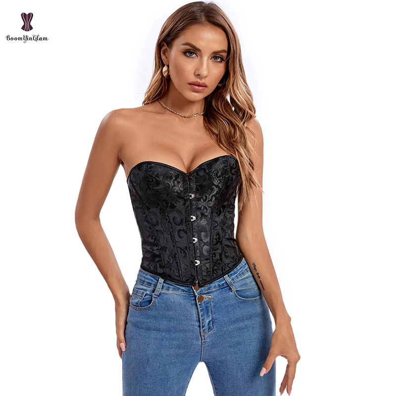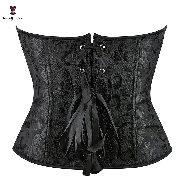 Female Fashion Floral Print Lace Up Boned Corsets & Buster Plus Size Underwear Gorset Short Torso Body Shapewear