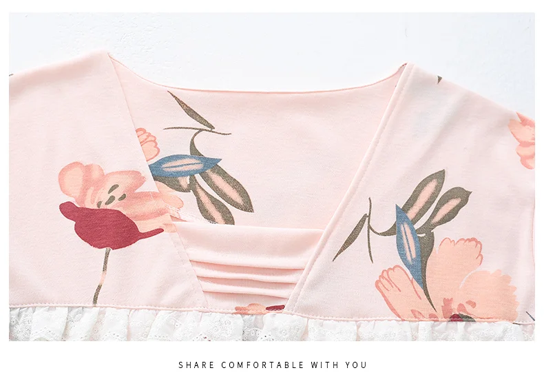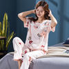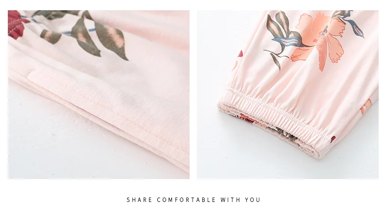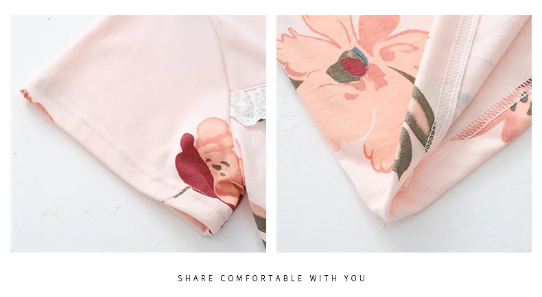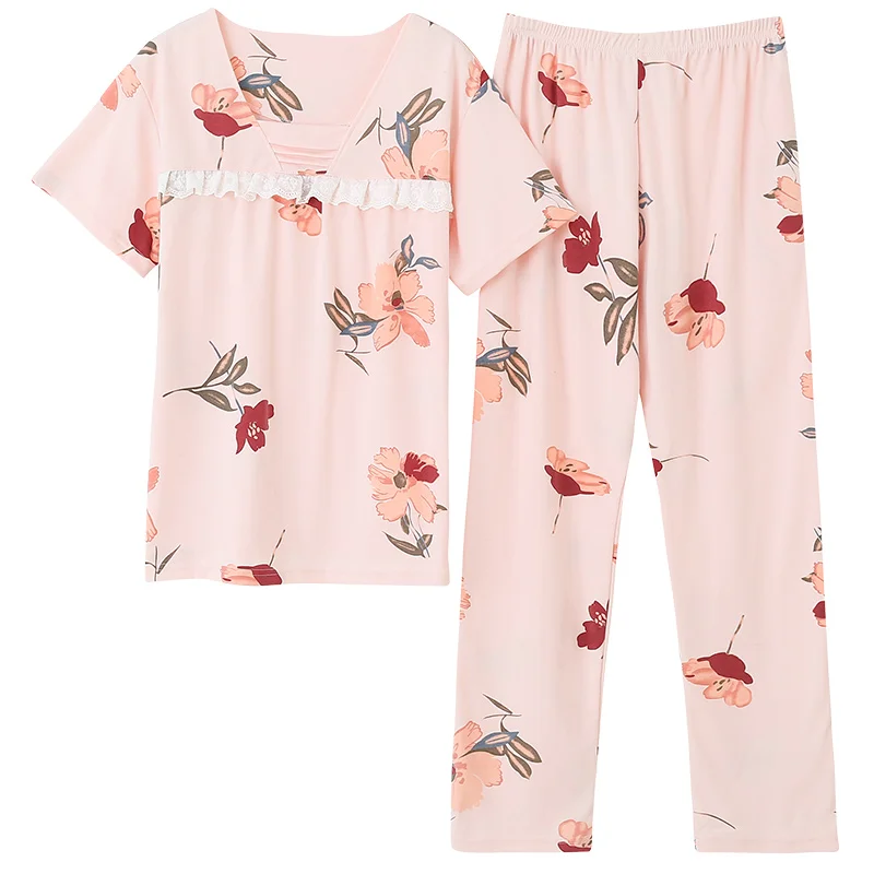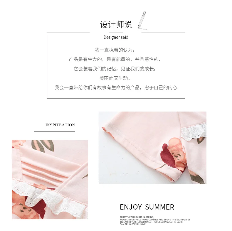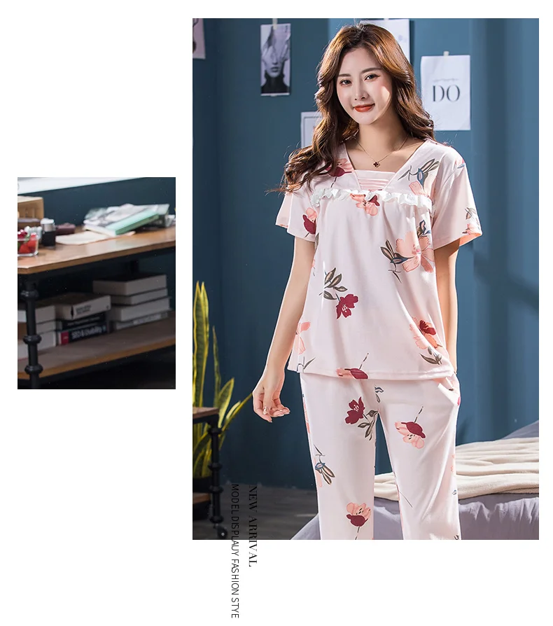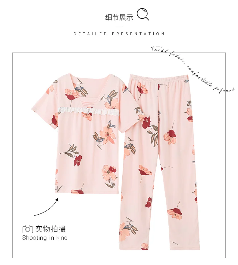 Female Square Collar Pajamas Sets Spring Summer Short Sleeve Full Cotton Flower Print Sleepwear 2pcs Pijamas Mujer Leisure Women
