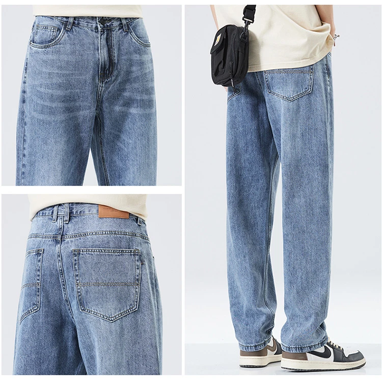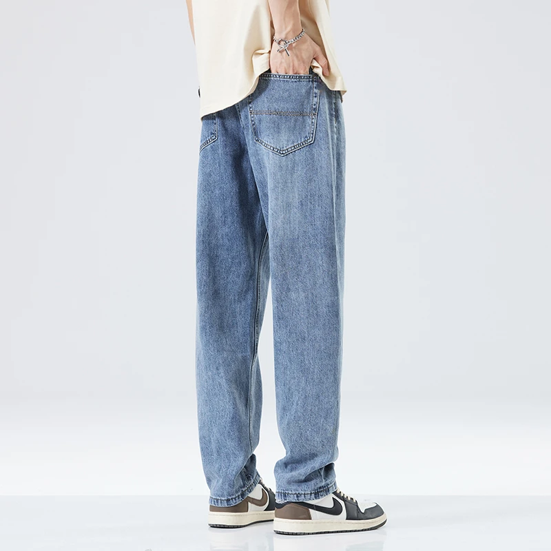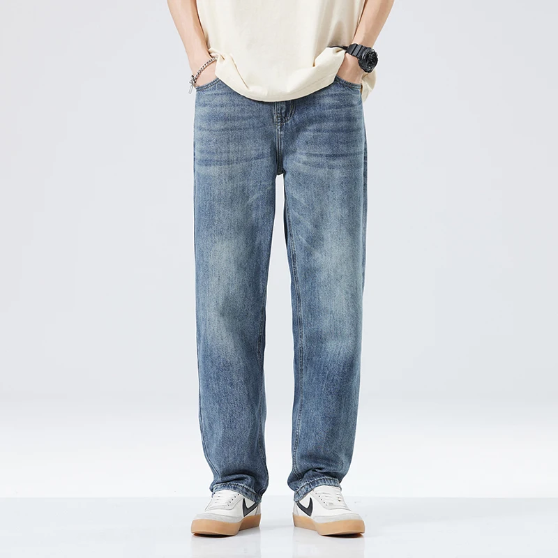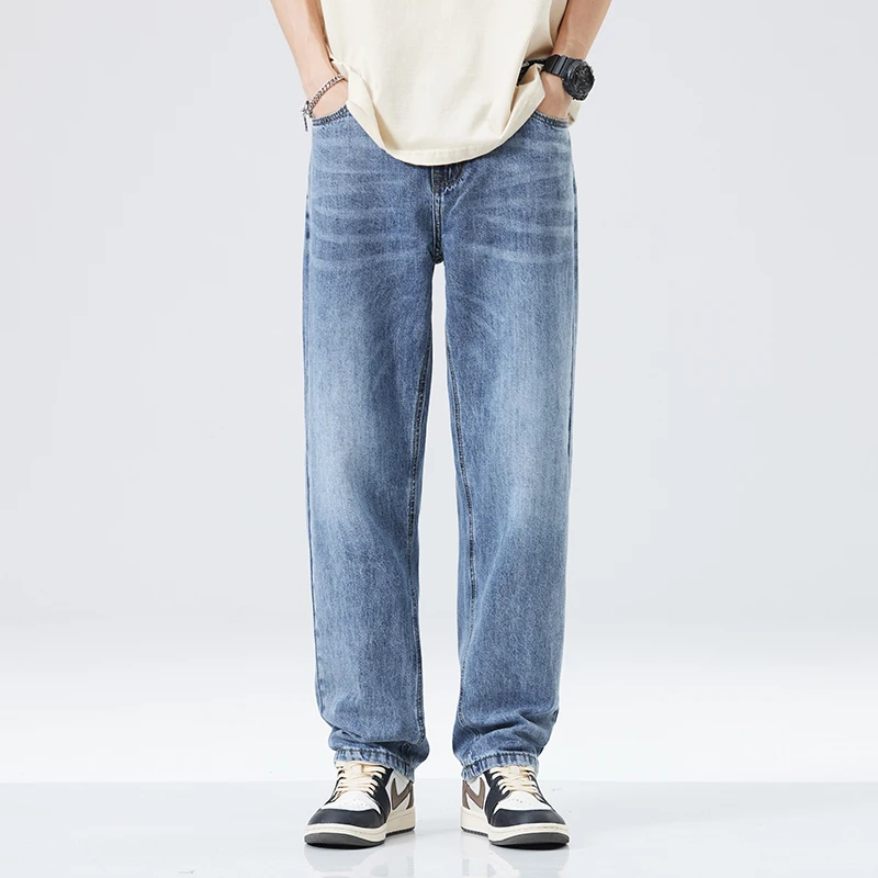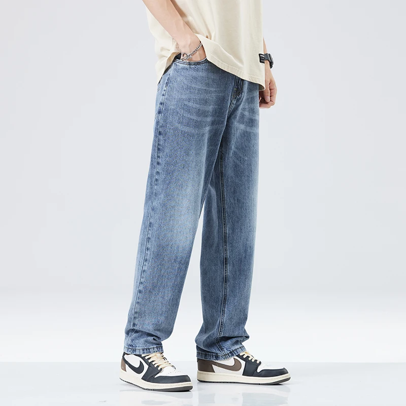 Fitting Denim Loose Casual Men’s Thin Straight-leg Loose Jeans Classic Style Advanced Stretch Baggy Pants Male Plus Size 40 42