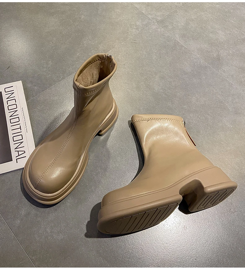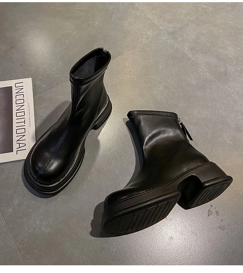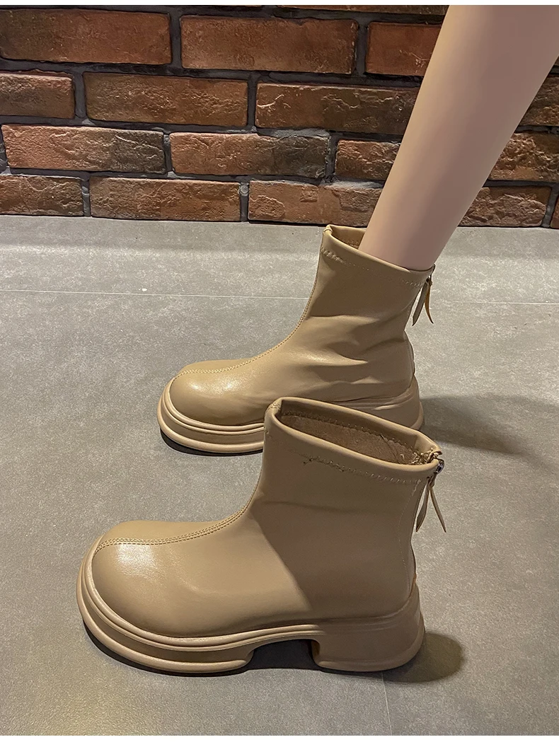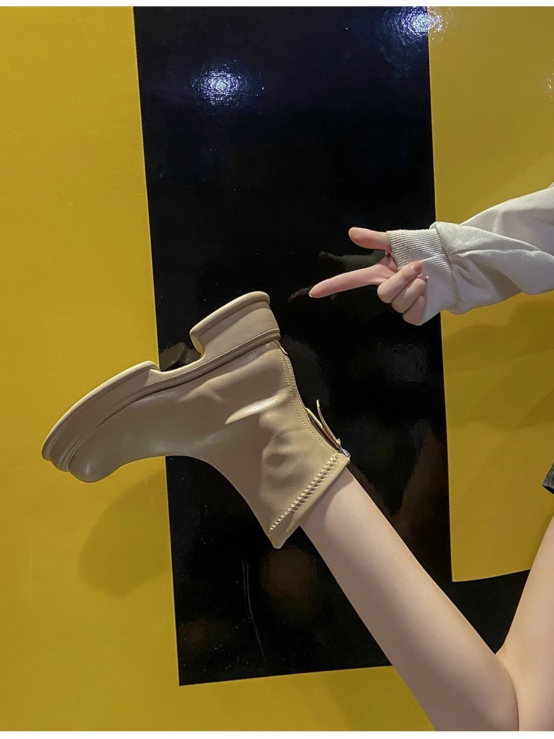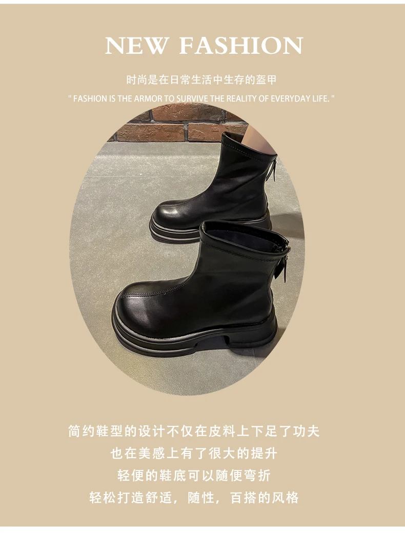 Flat Heel White Ankle Boots Women’s Rubber Shoes Rain Zipper Luxury Designer Boots-Women Clogs Platform Round Toe Low Autumn Fas