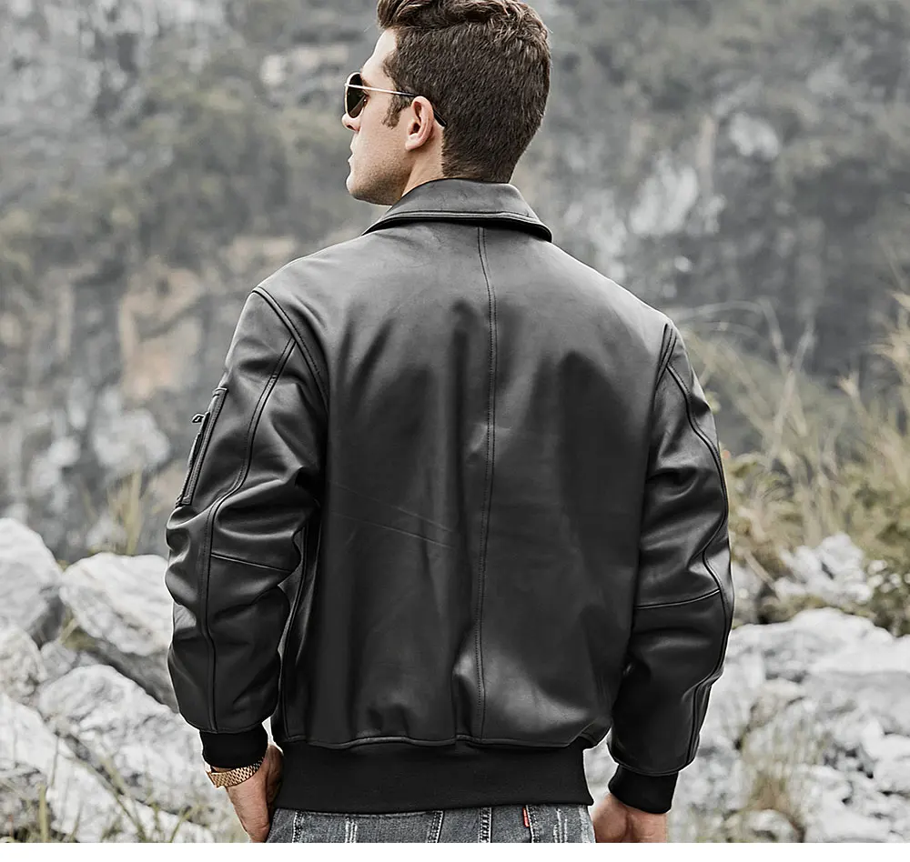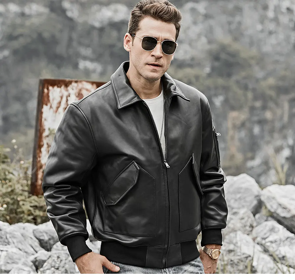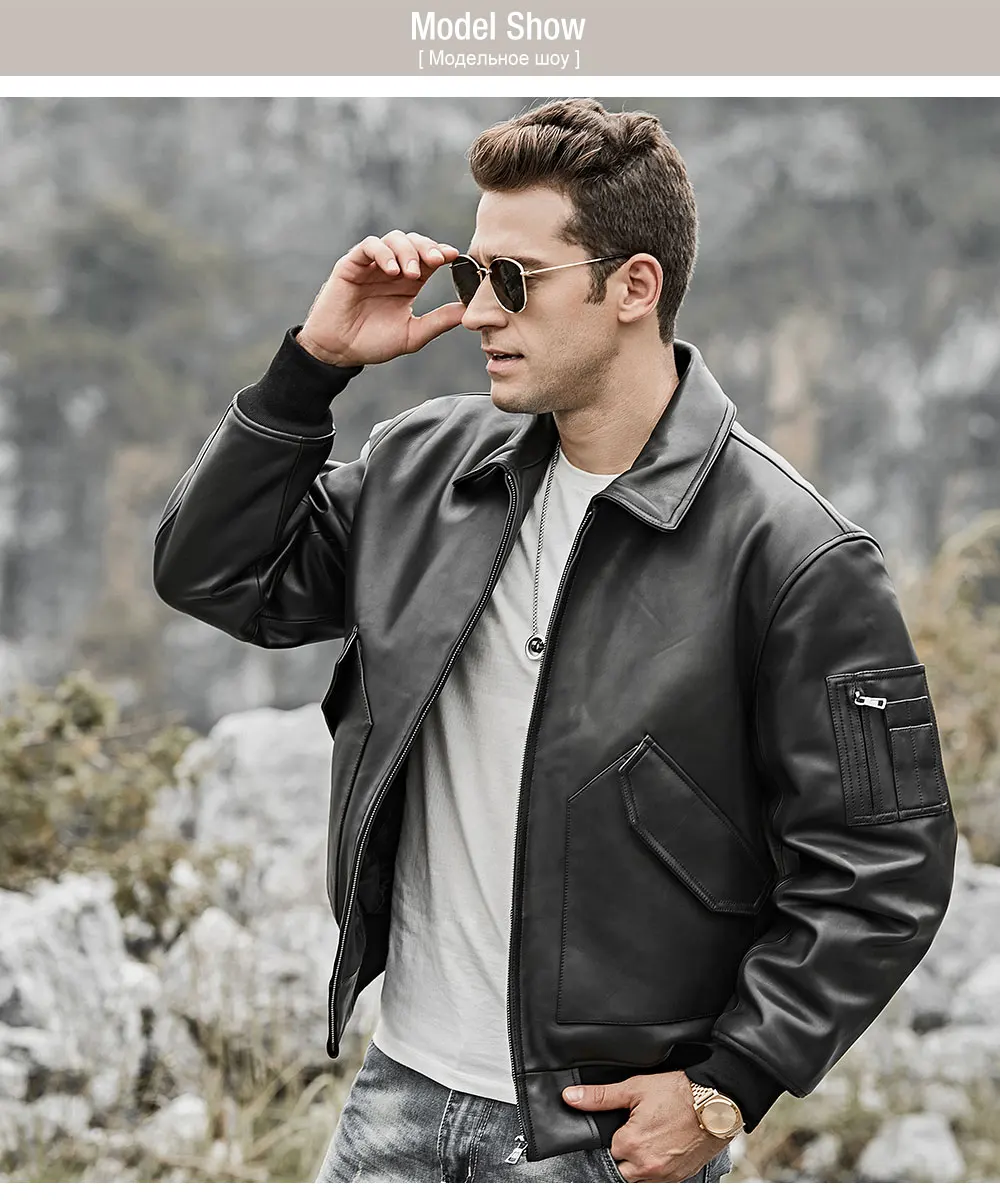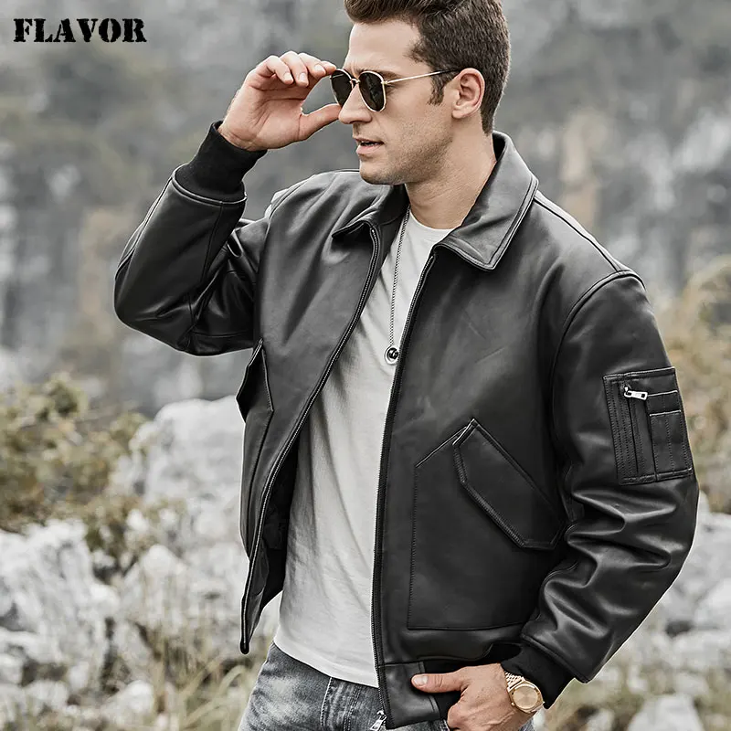 FLAVOR 2018 Men’s Real Leather Jacket Bomber Lambskin Winter Warm Air Force Leather Aviator Coat