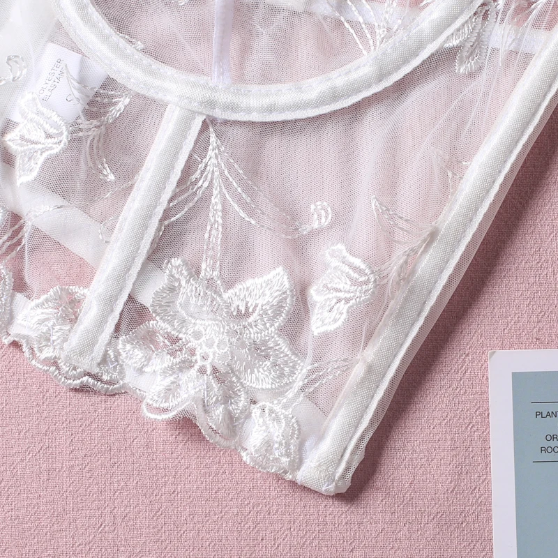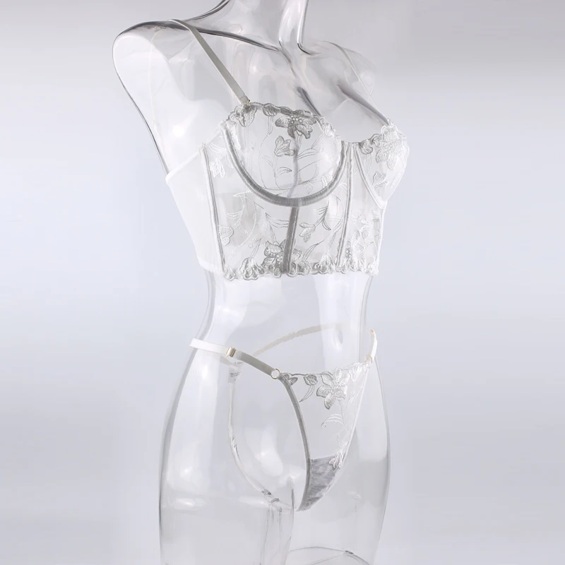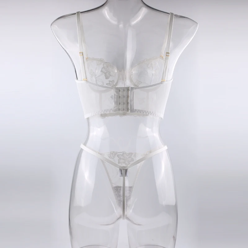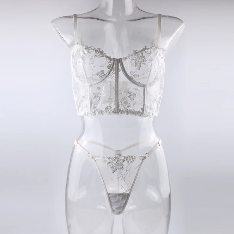 Floral Embroidery Fancy Lingerie Women 2 Piece Sexy Underwear Set Fairy Delicate G-string Lace Push Up Transparent Bra Intimate