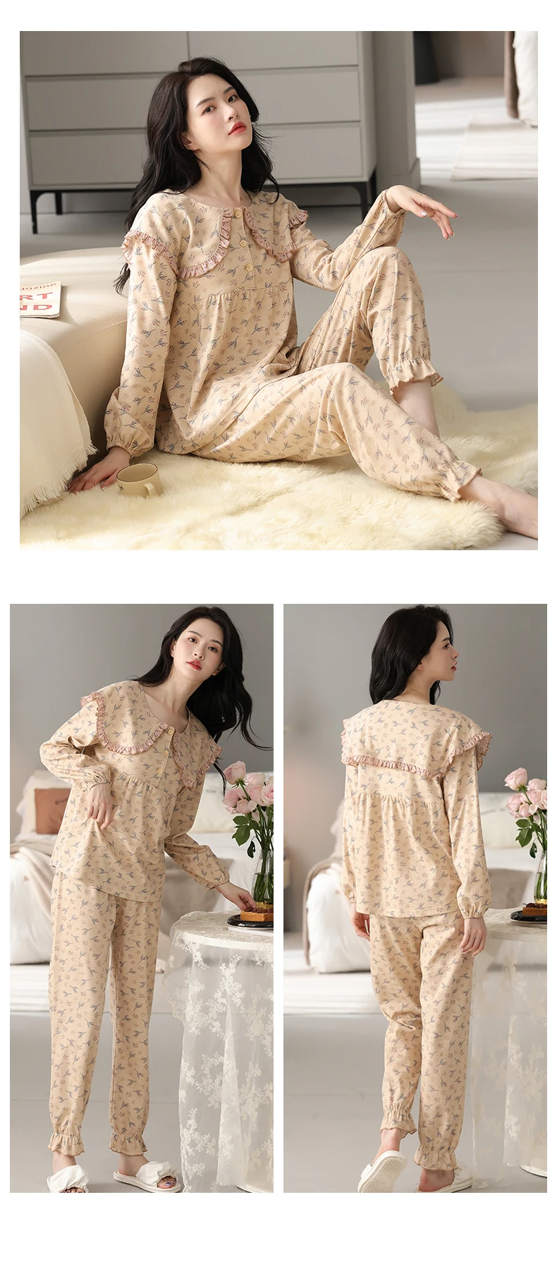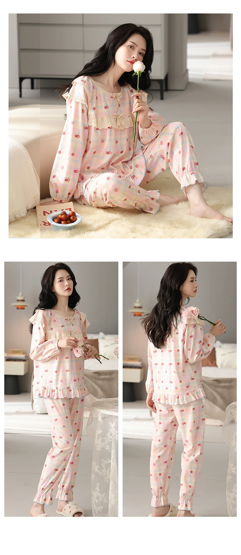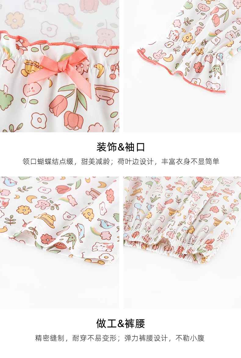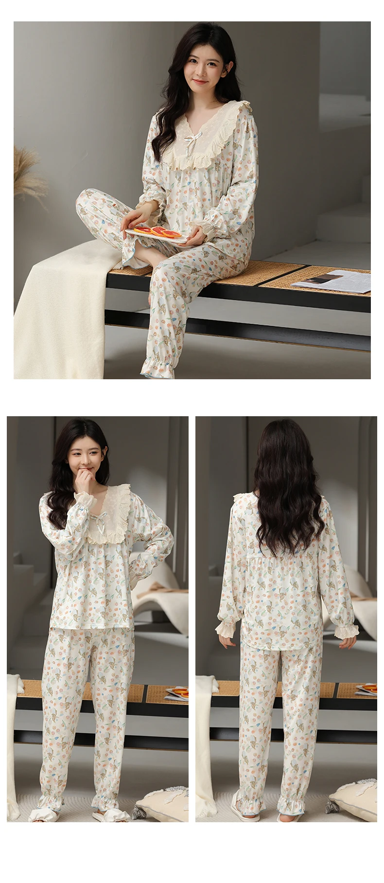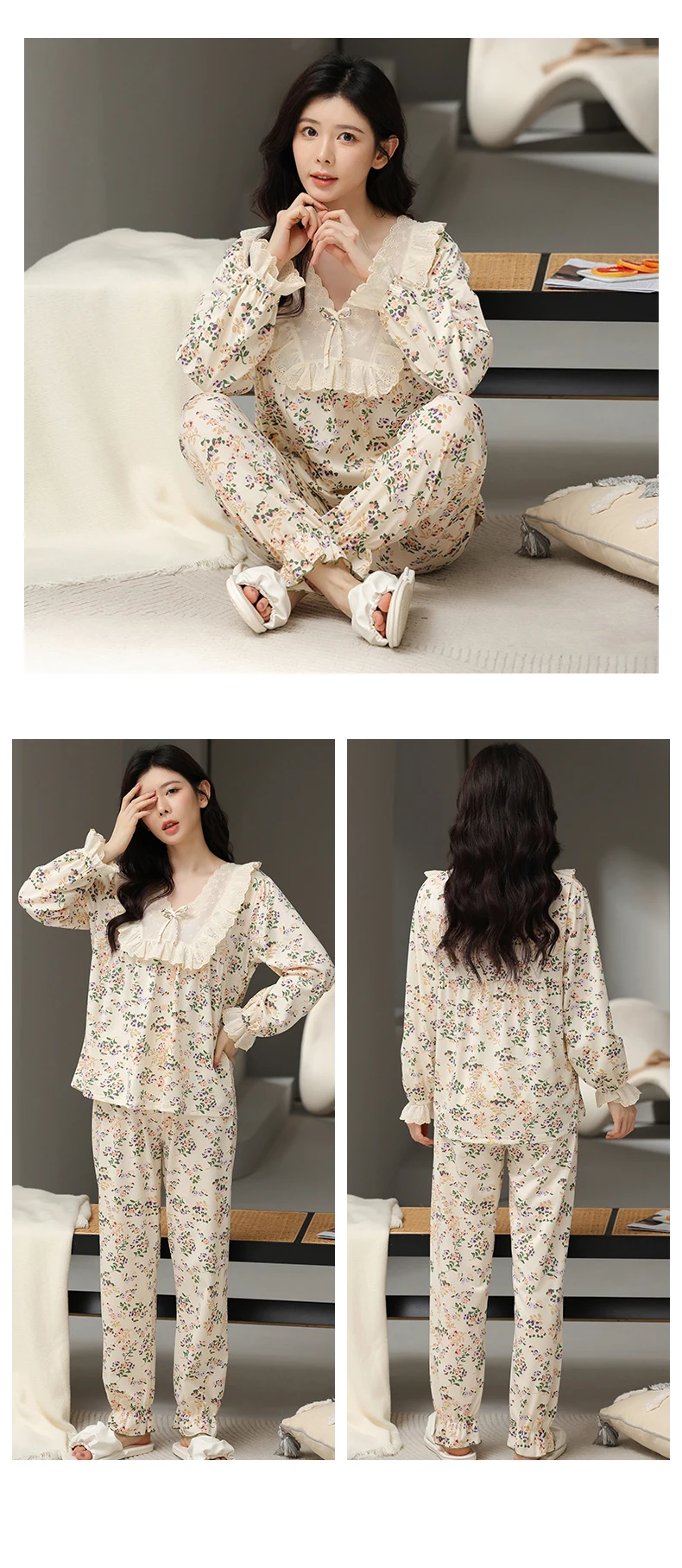 Floral Pajamas For Young Girls Spring Modal Sleepwear Princess Lace O-Neck Long Sleeve Pyjamas Female Autumn Home Suit XXXXL