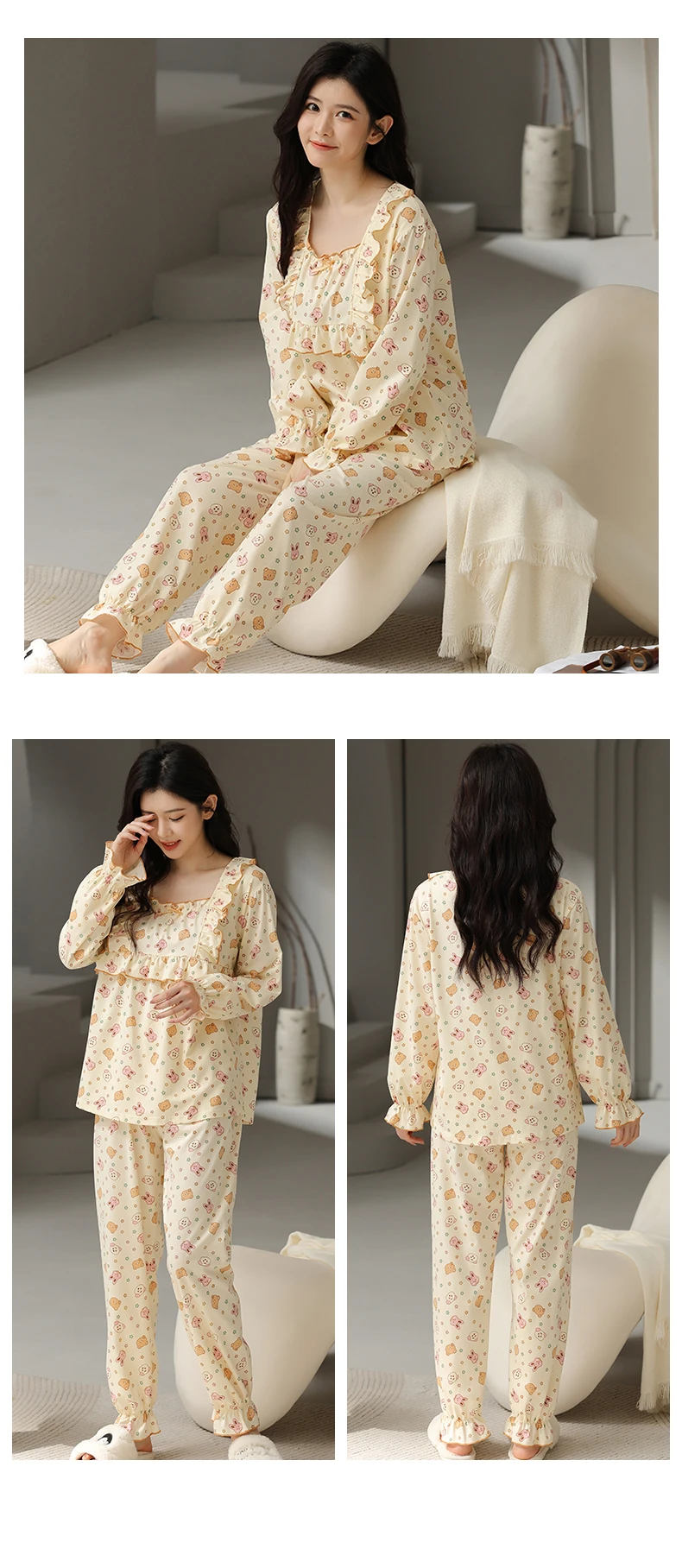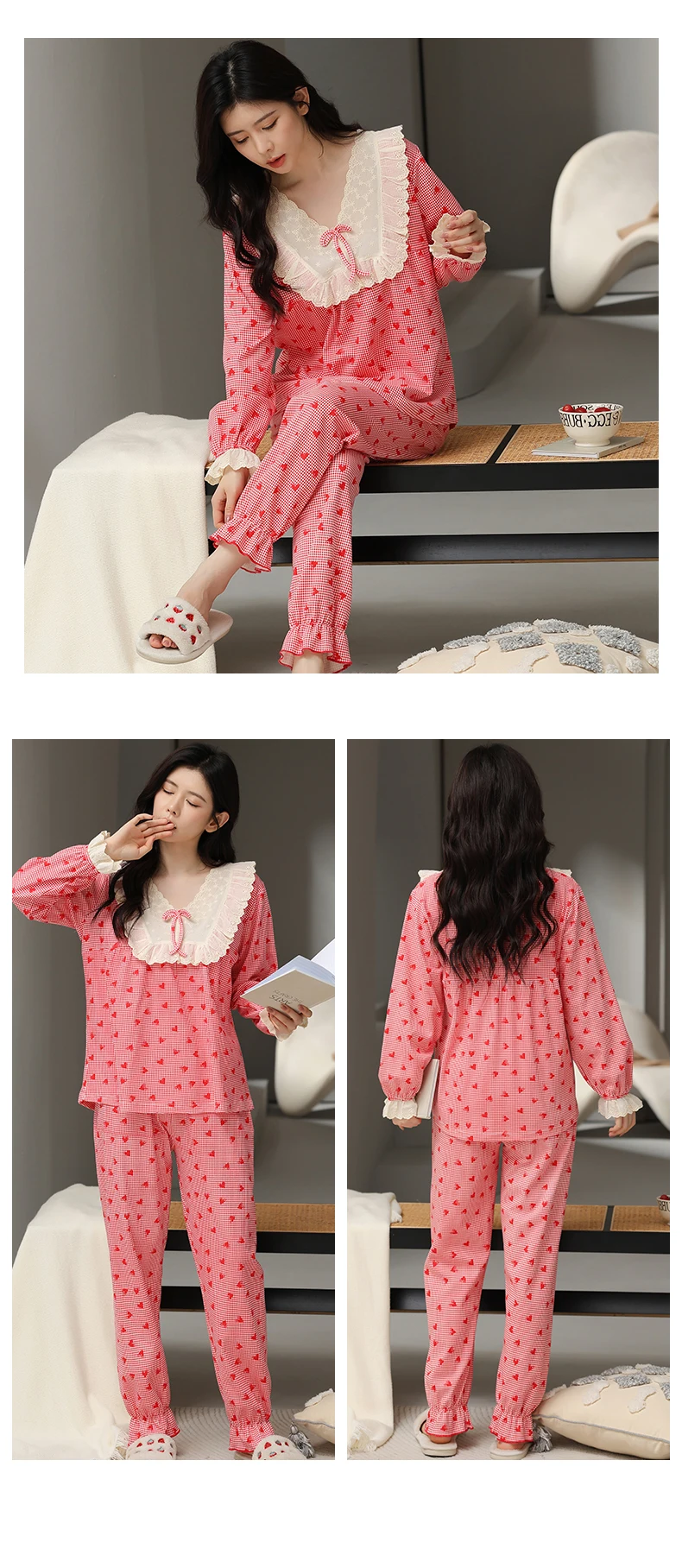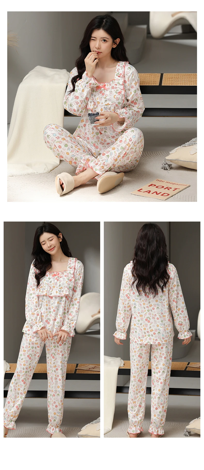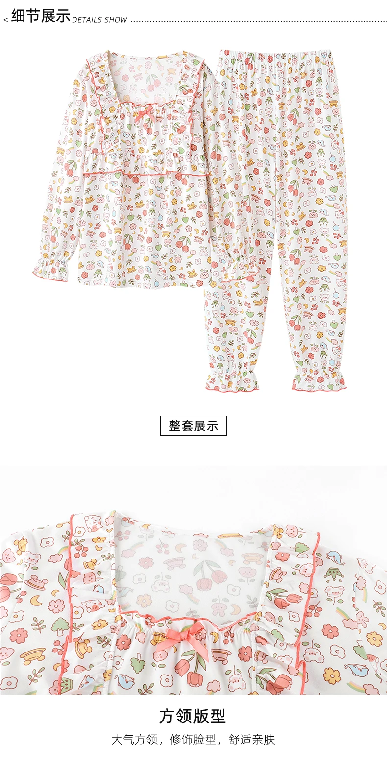 Floral Pajamas For Young Girls Spring Modal Sleepwear Princess Lace O-Neck Long Sleeve Pyjamas Female Autumn Home Suit XXXXL