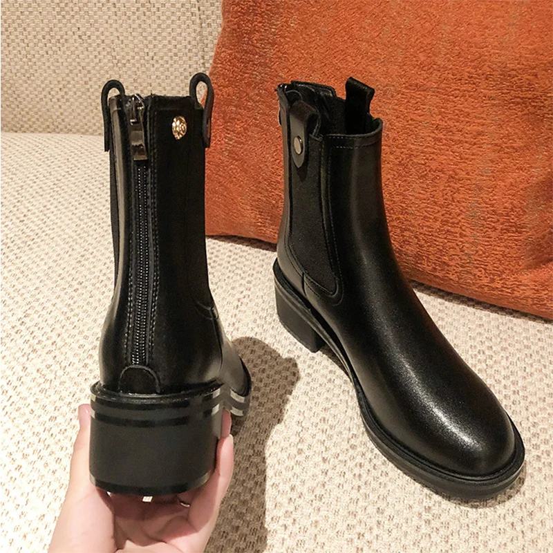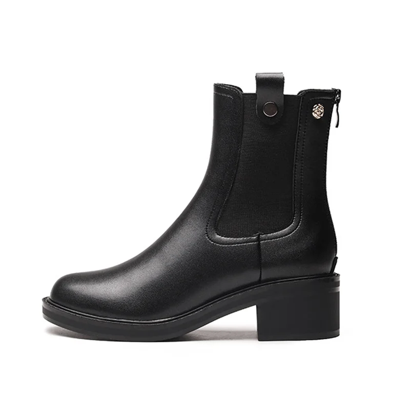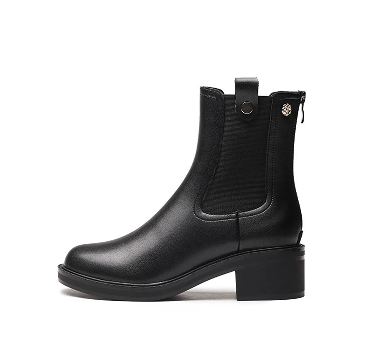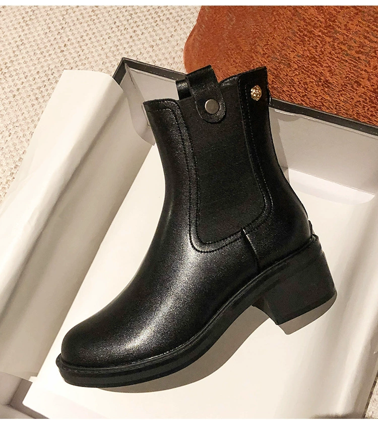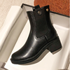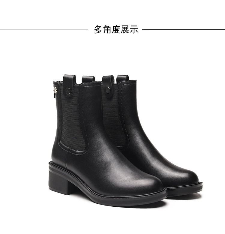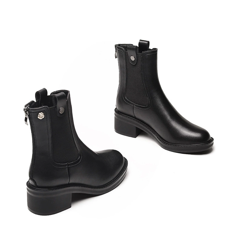 Flower studs riding bots women elastic zipper plush winter bottes round toe mid-calf booties chunky high heels black booties2020