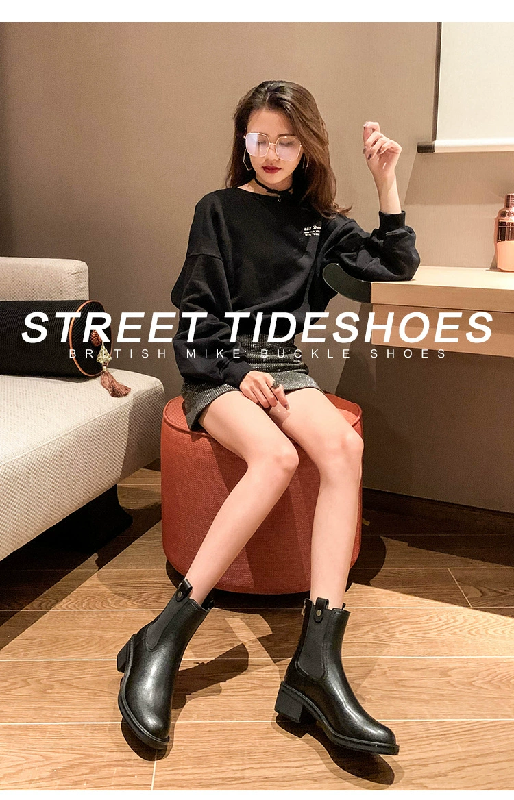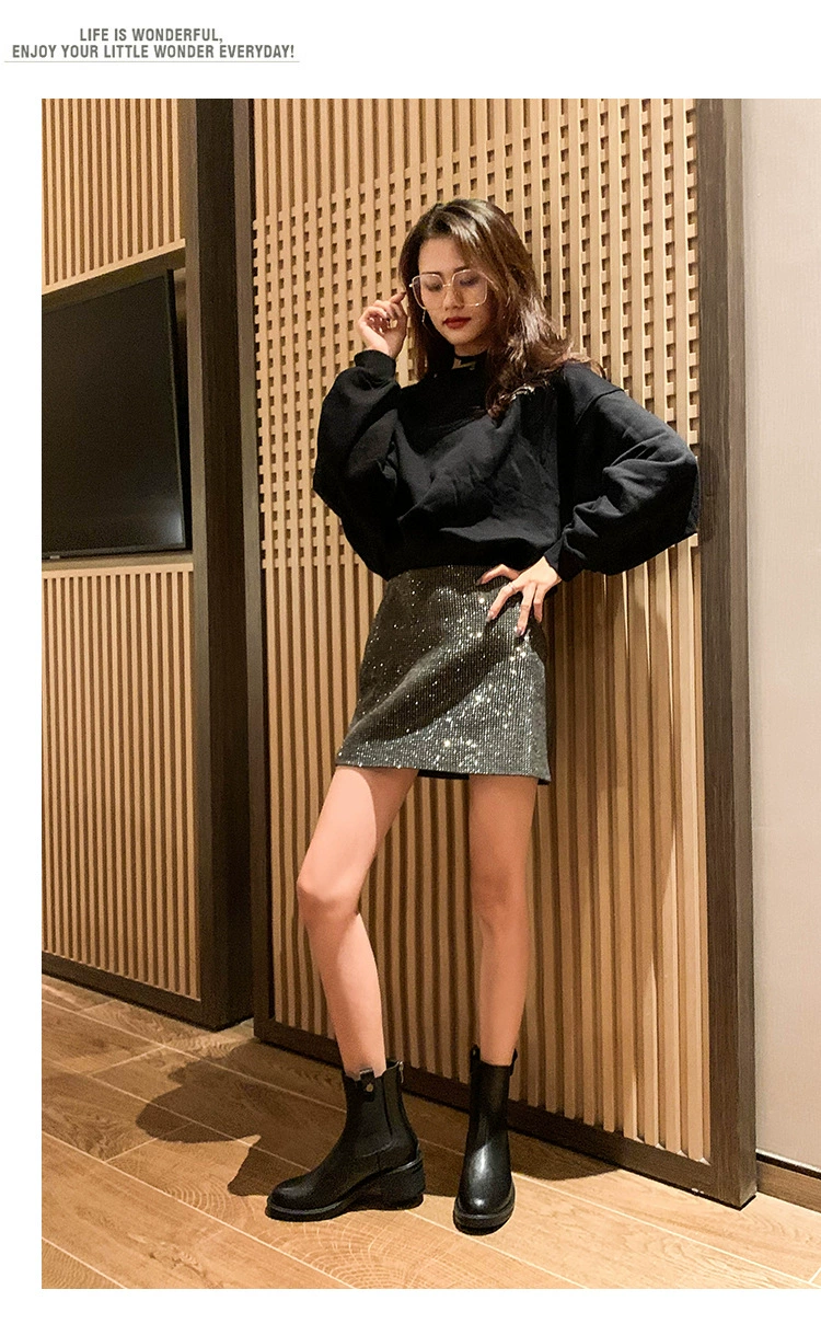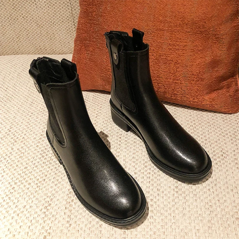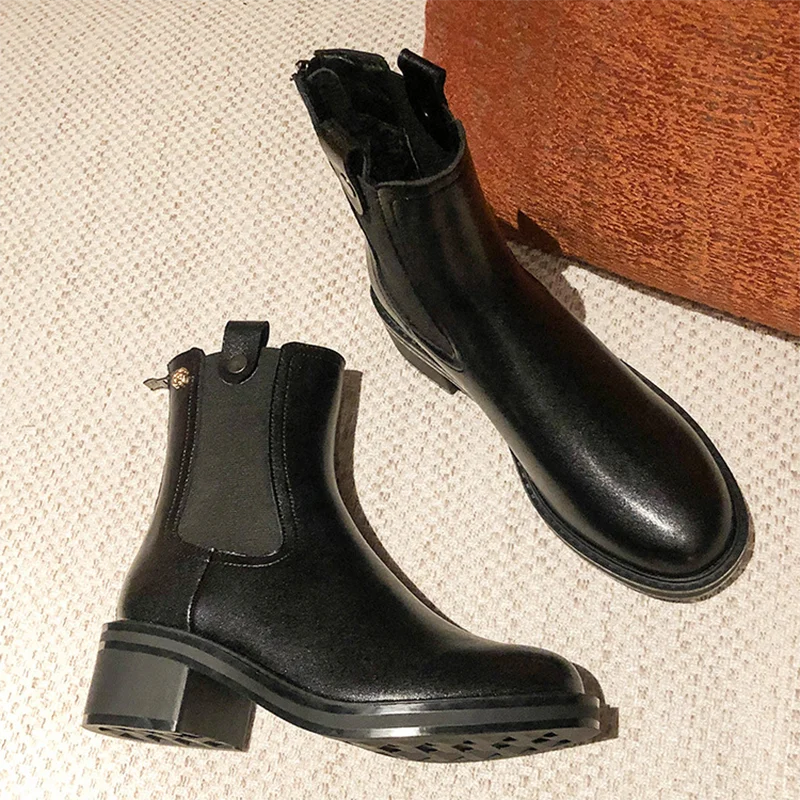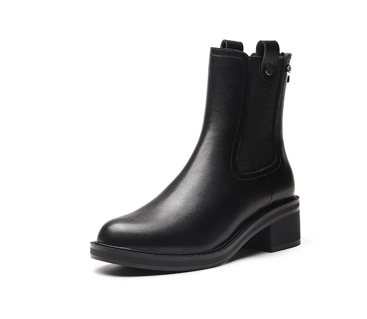 Flower studs riding bots women elastic zipper plush winter bottes round toe mid-calf booties chunky high heels black booties2020