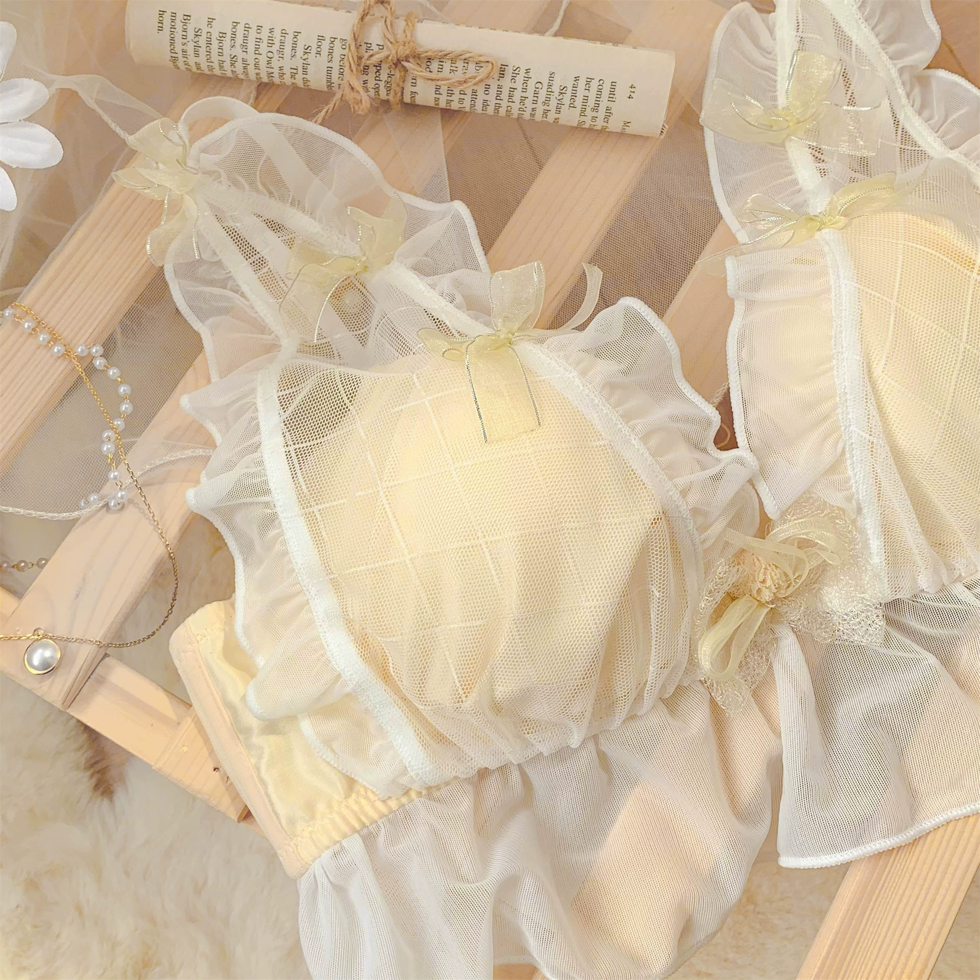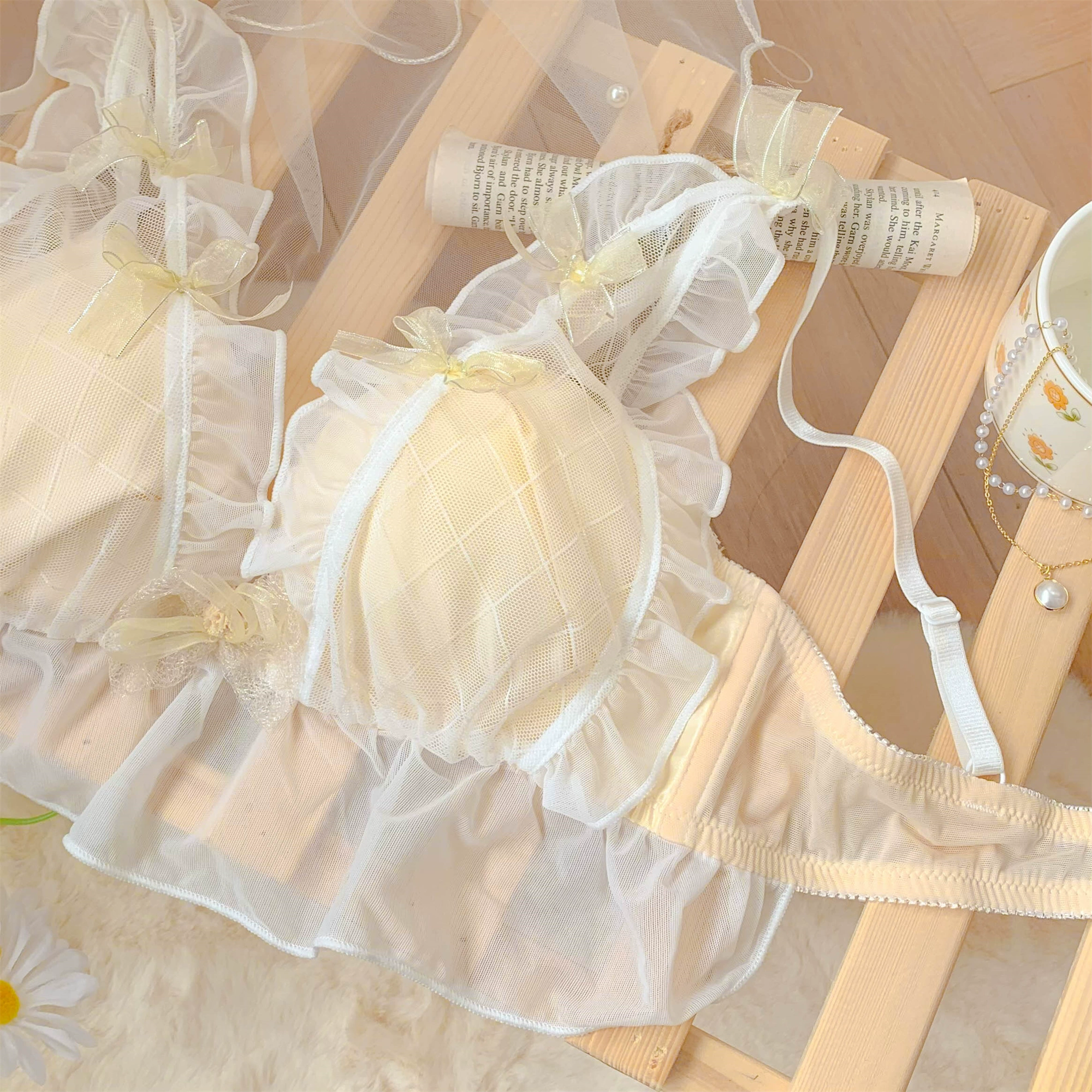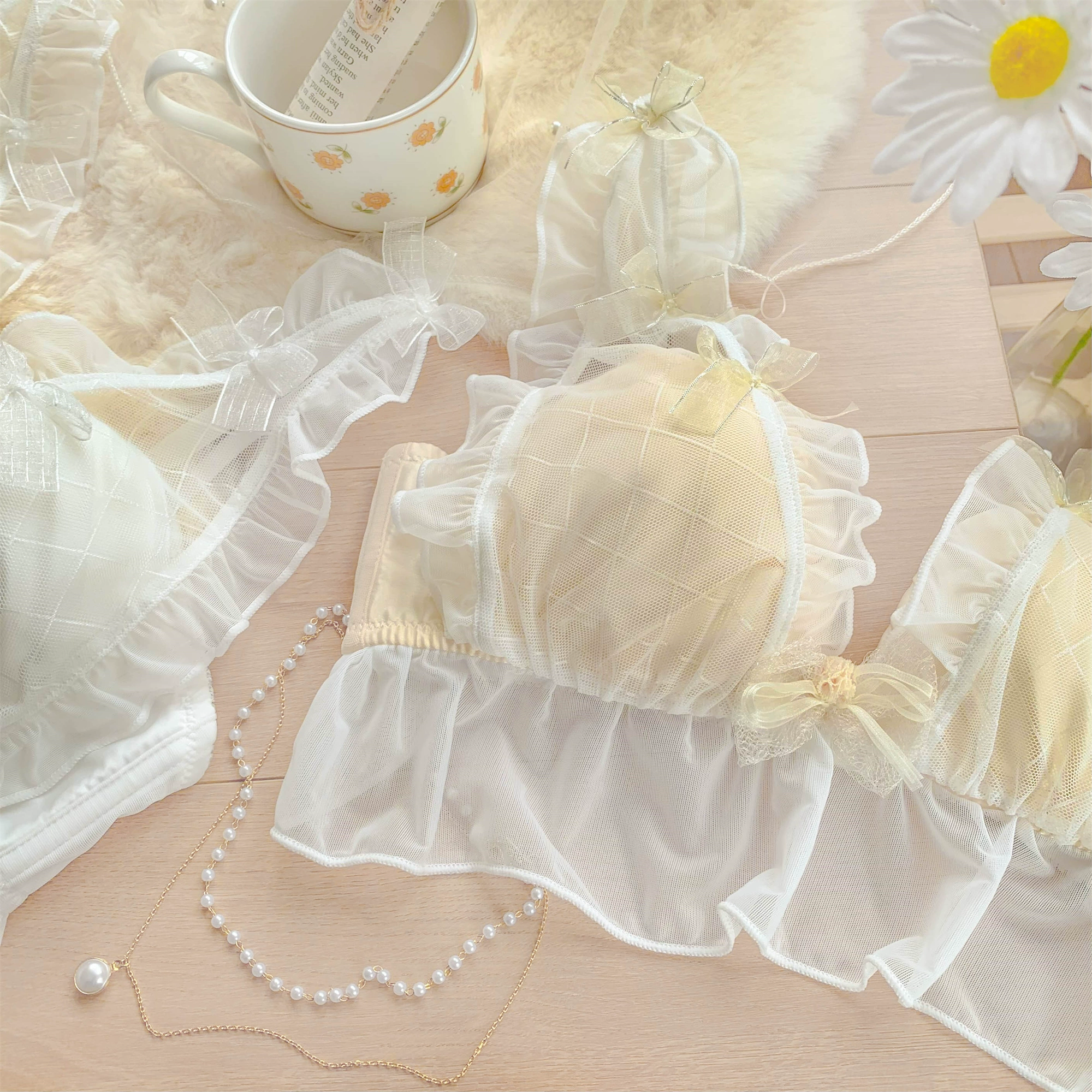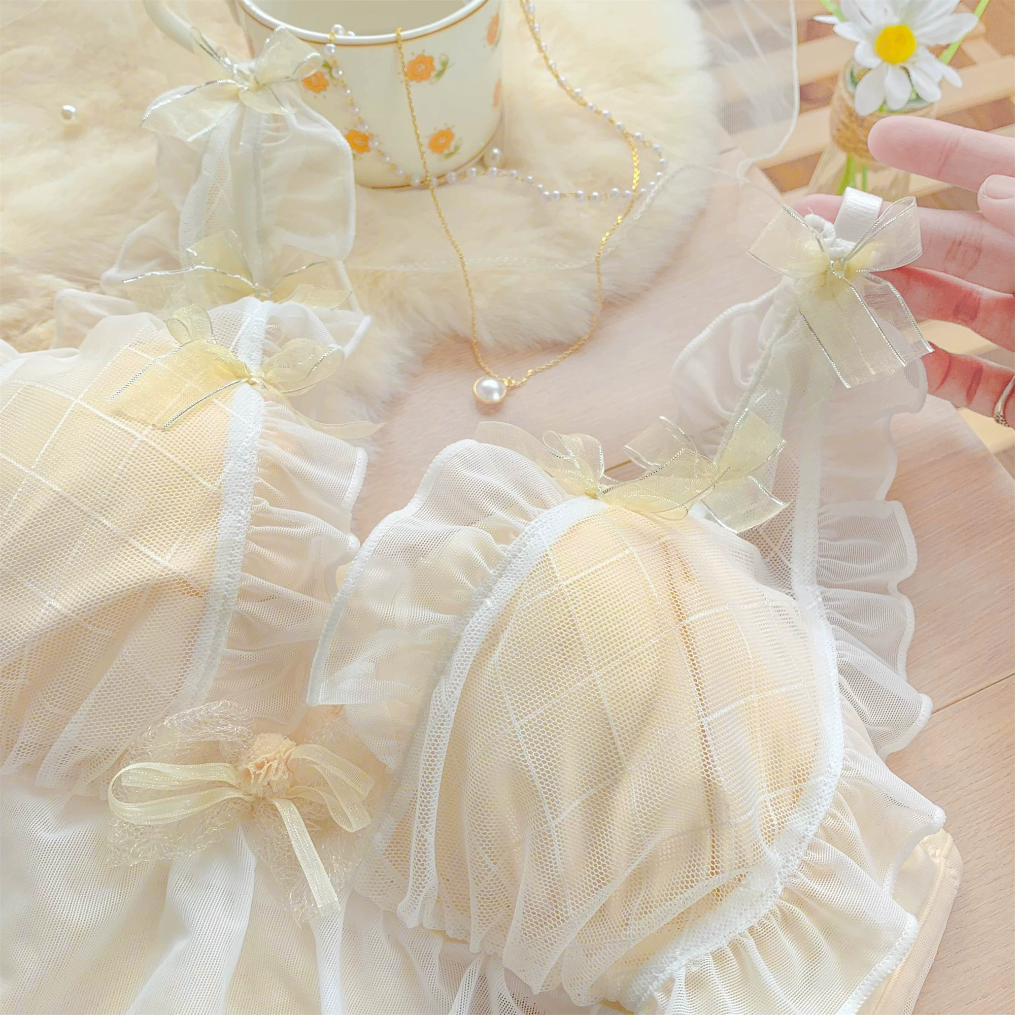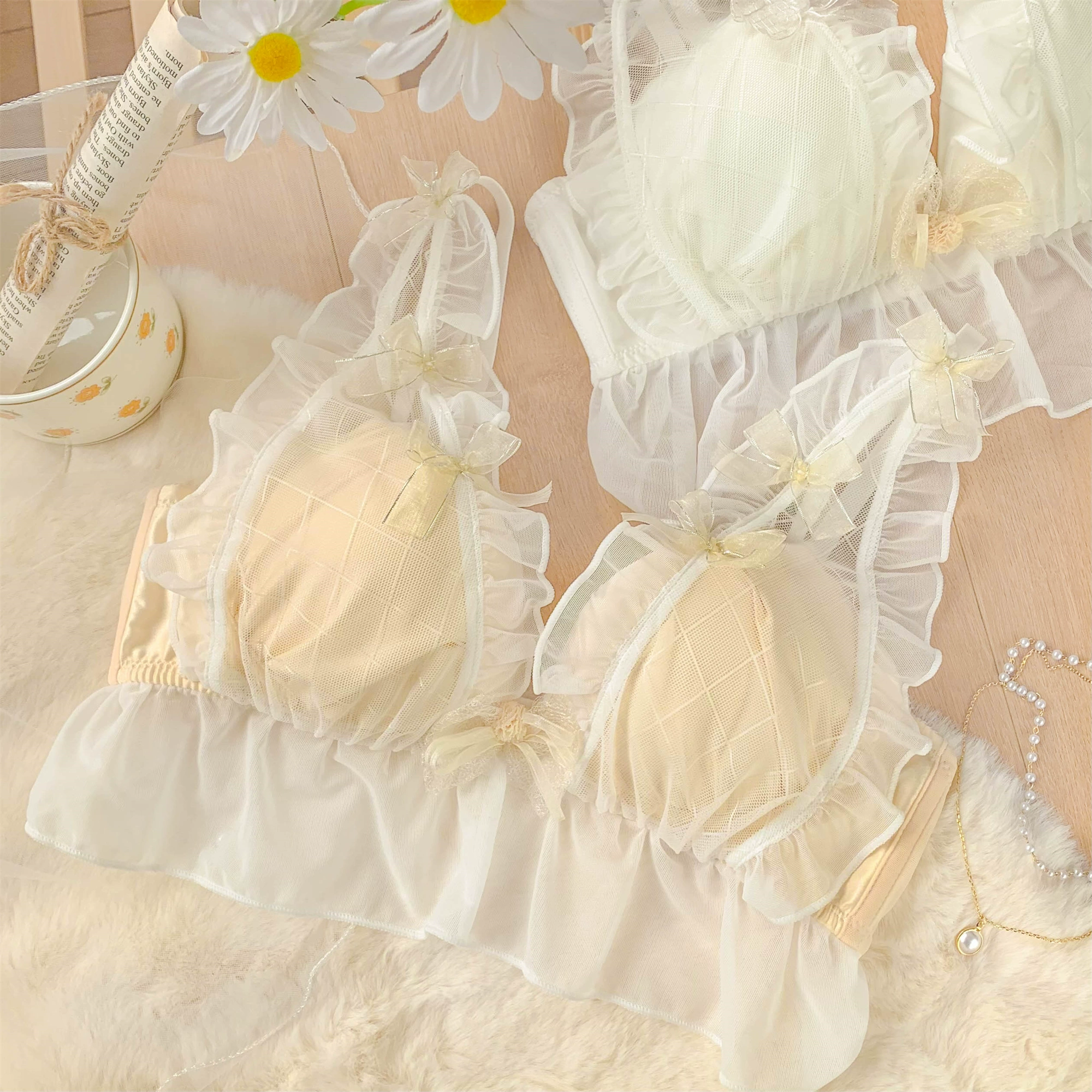 Flower woven gauze ~ Japanese sexy no steel ring bra girls underwear female small chest gathered lace pure desire bra