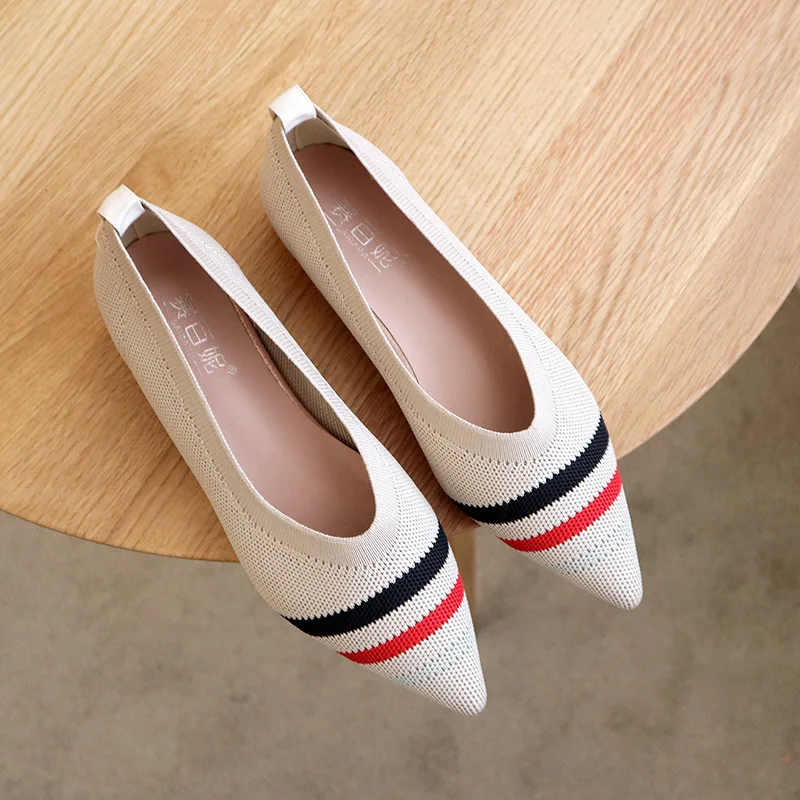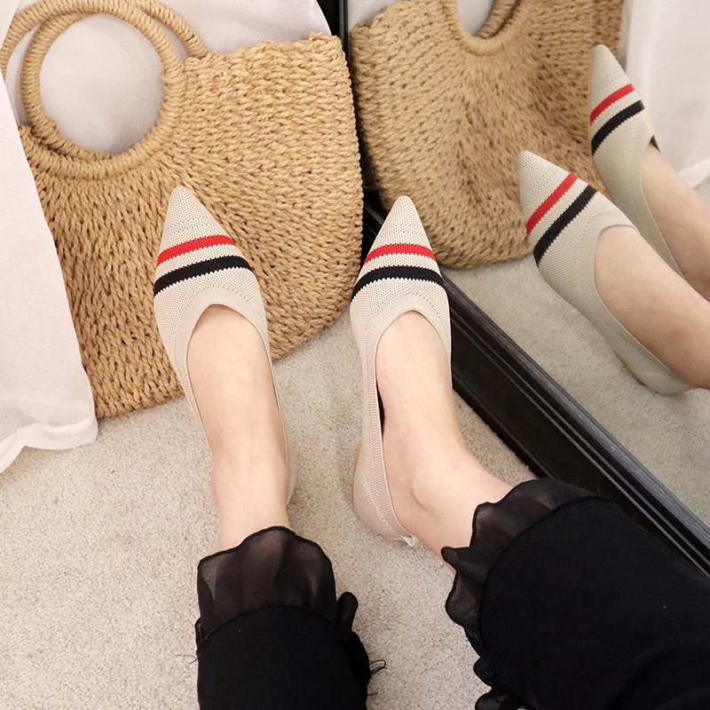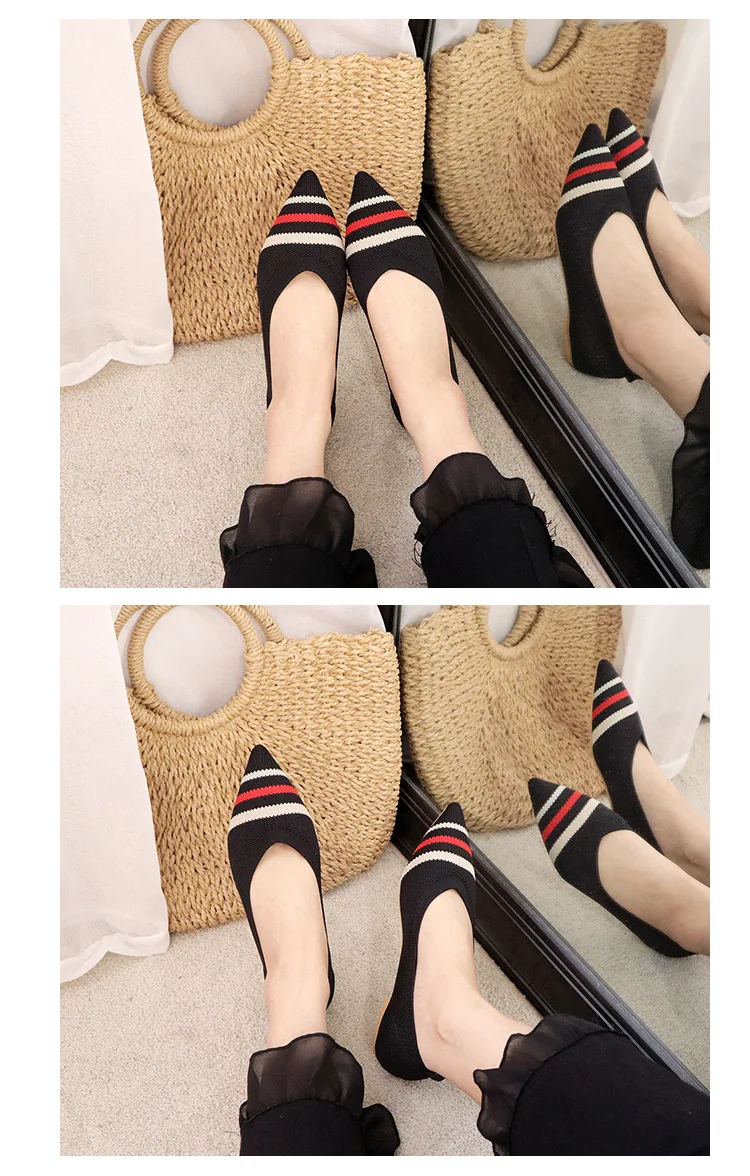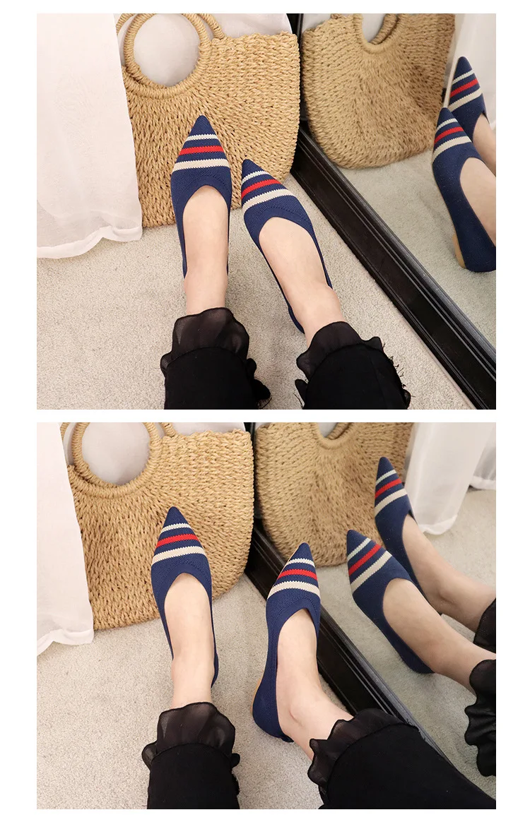 Mixed Color Stripes Flats Women Loafers Moccasins