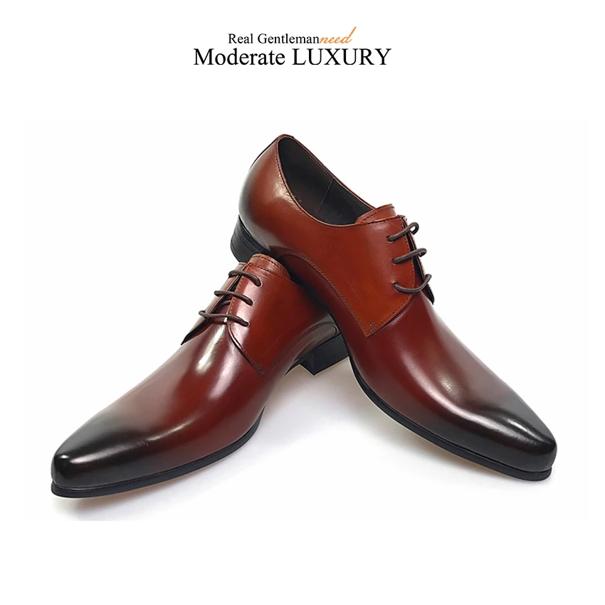 Formal mens dress shoes genuine leather brown wedding Italian Fashion male shoes 2017 GRIMENTIN