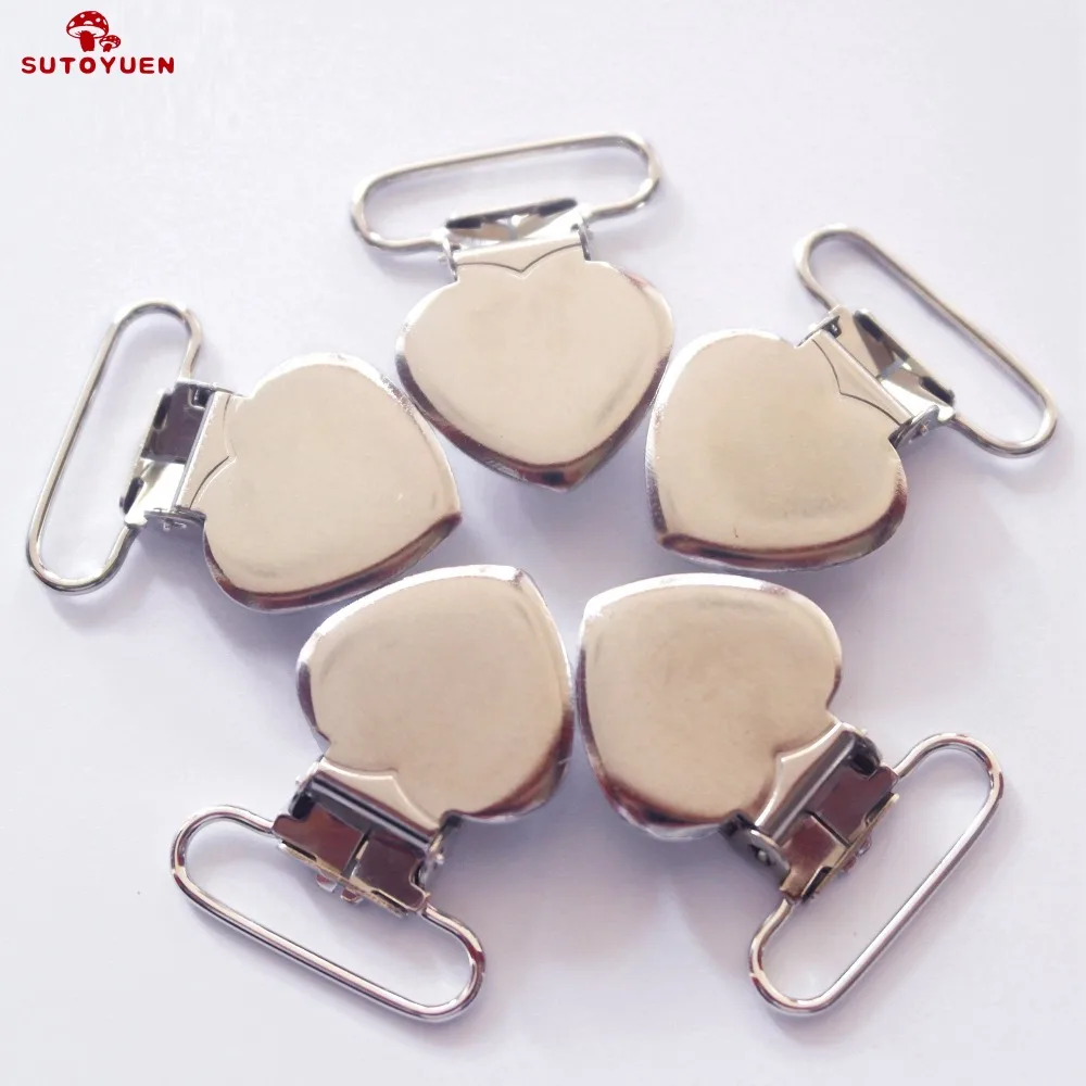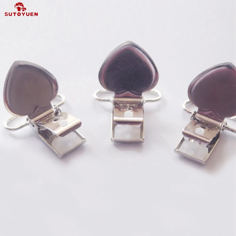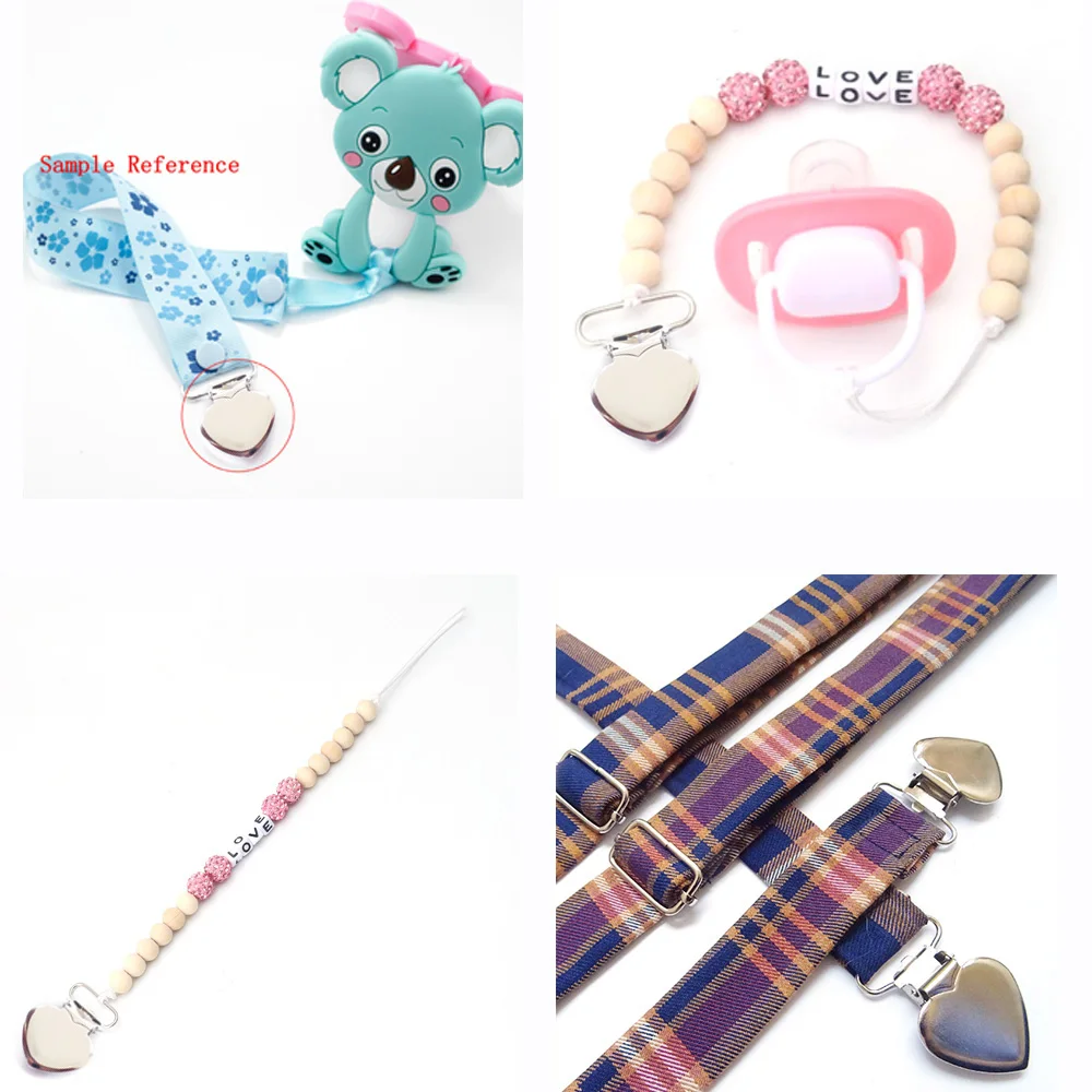 . Min order: 1 LOT=100 PCS Heart Metal pacifier clips suspender clips