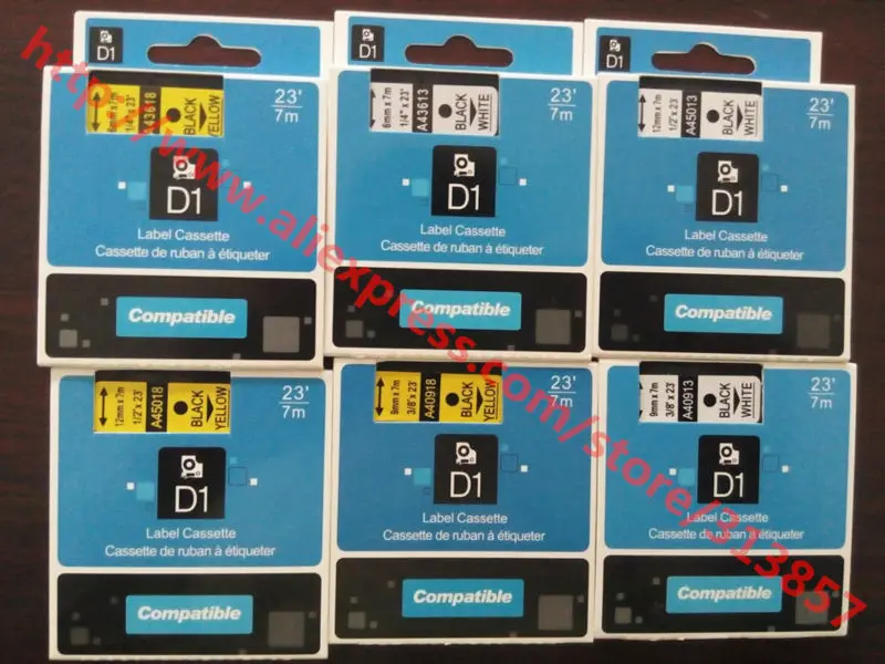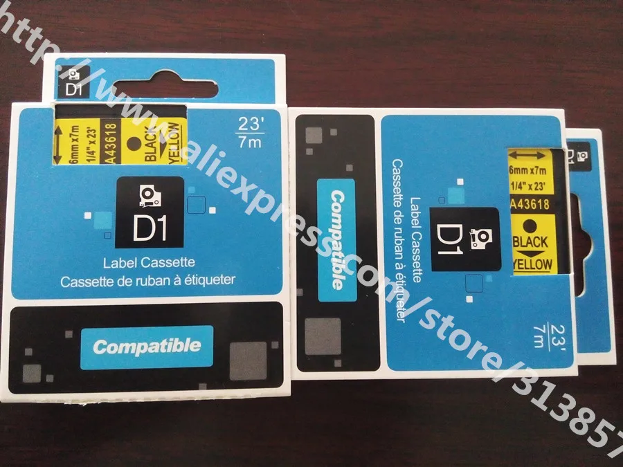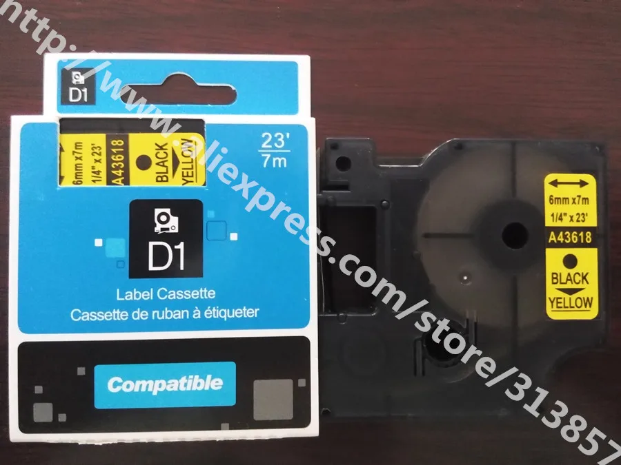Free shipping 100Pcs DYMO compatible Label Tape Cassette 43618 Black On yellow 6mm * 7m For DYMO LM500TS paper tags label maker
