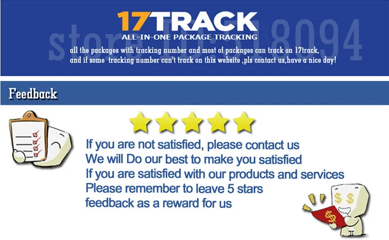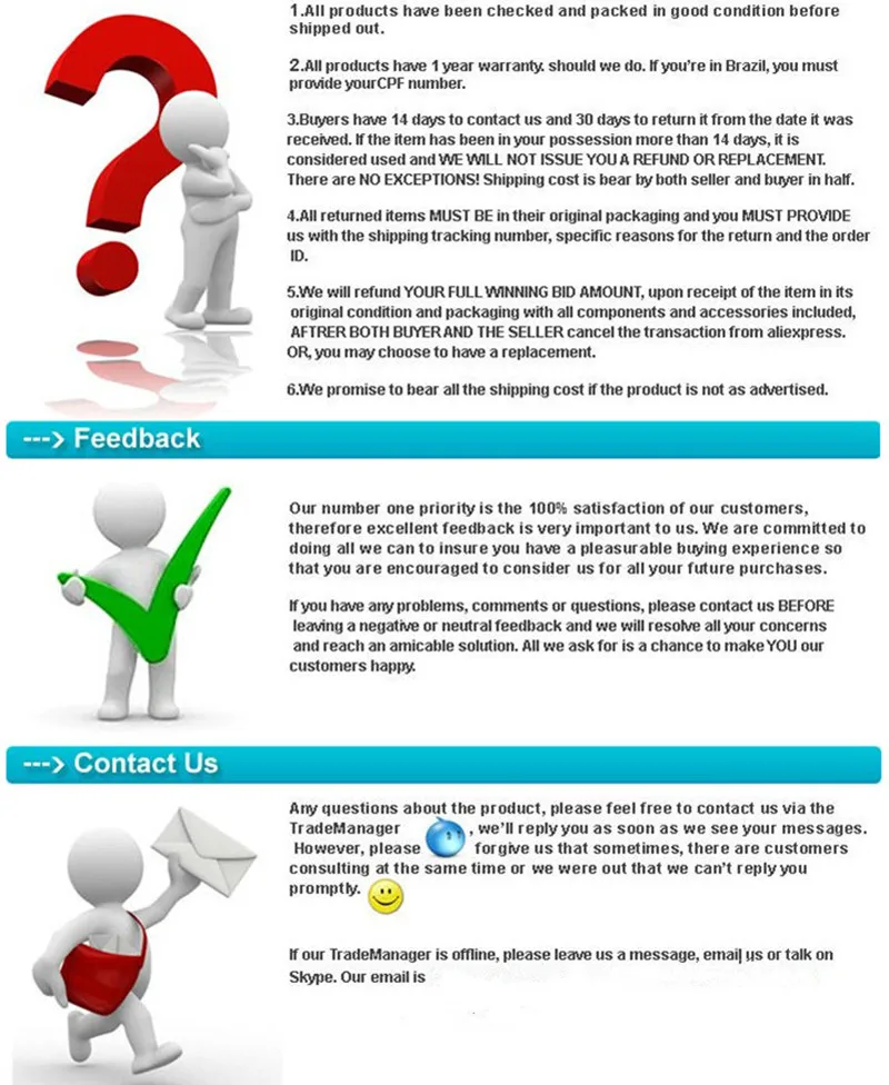 4. If you have not received your shipment within 30 days from payment, pleasecontact us. We will track the shipment and get back to you as soon as possiblewith a reply. Our goal is customer satisfaction!