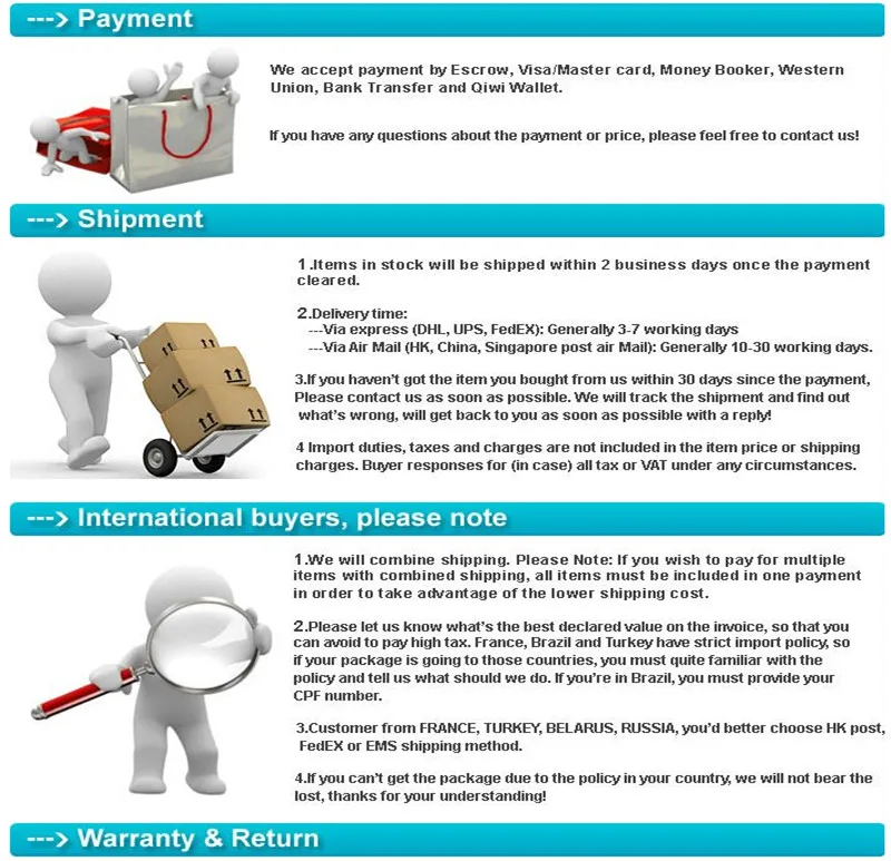 2.After receiving your payment;(within the prescribed time of delivery) delivery!
