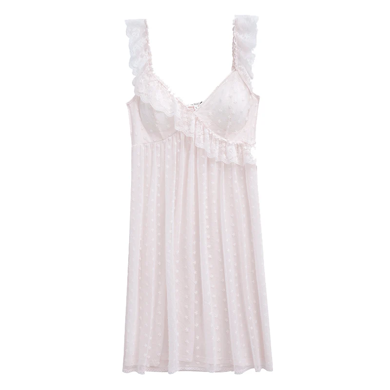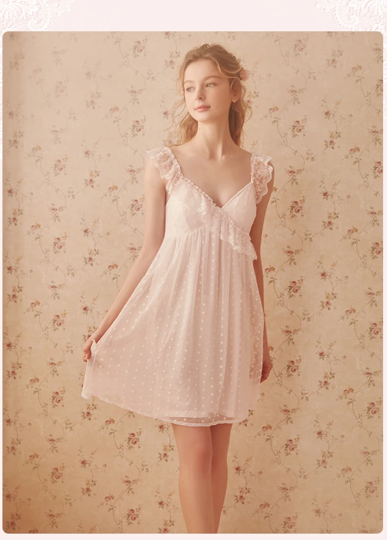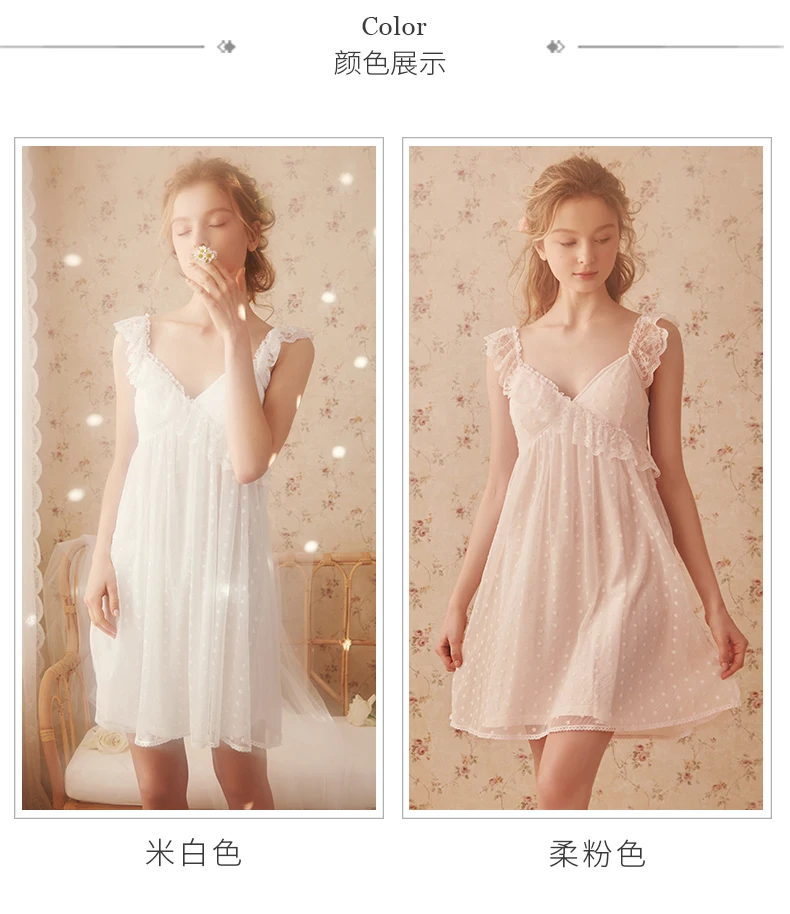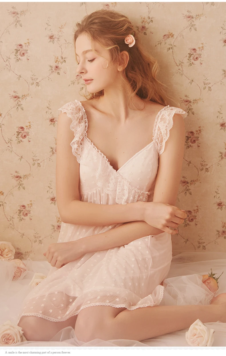 Free Shipping 2023 New Summer Modal Princess Women’s Nightgown Short Sleepwear Pink White Slip Vintage Pijamas Lace Nightdress