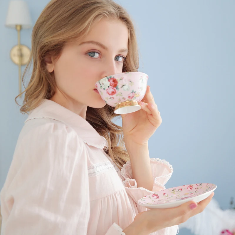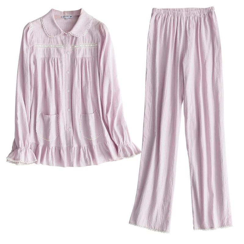 Free Shipping New Autumn Princess Women’s Pink and Purple Pajamas Pants Set Lace Decoration Sleepwear Gril Home Cloth