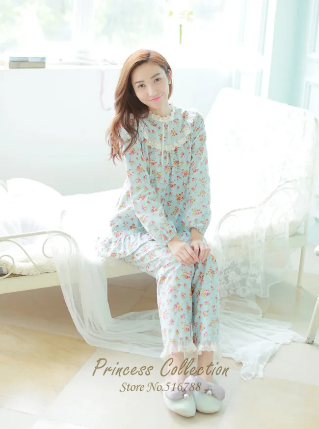 Free Shipping New Autumn Women’s Floral Corduroy Pajamas Pants Set Pastorable Sleepwear Home Cloth pijamas femininos verao