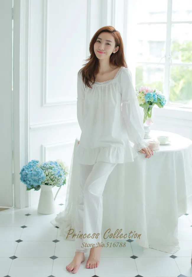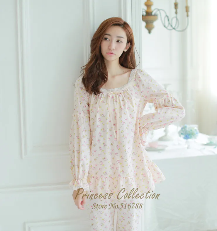 Free Shipping New Autumn Women’s Floral Pajamas Pants Set Lace Decoration Sleepwear Home Cloth pijamas femininos verao