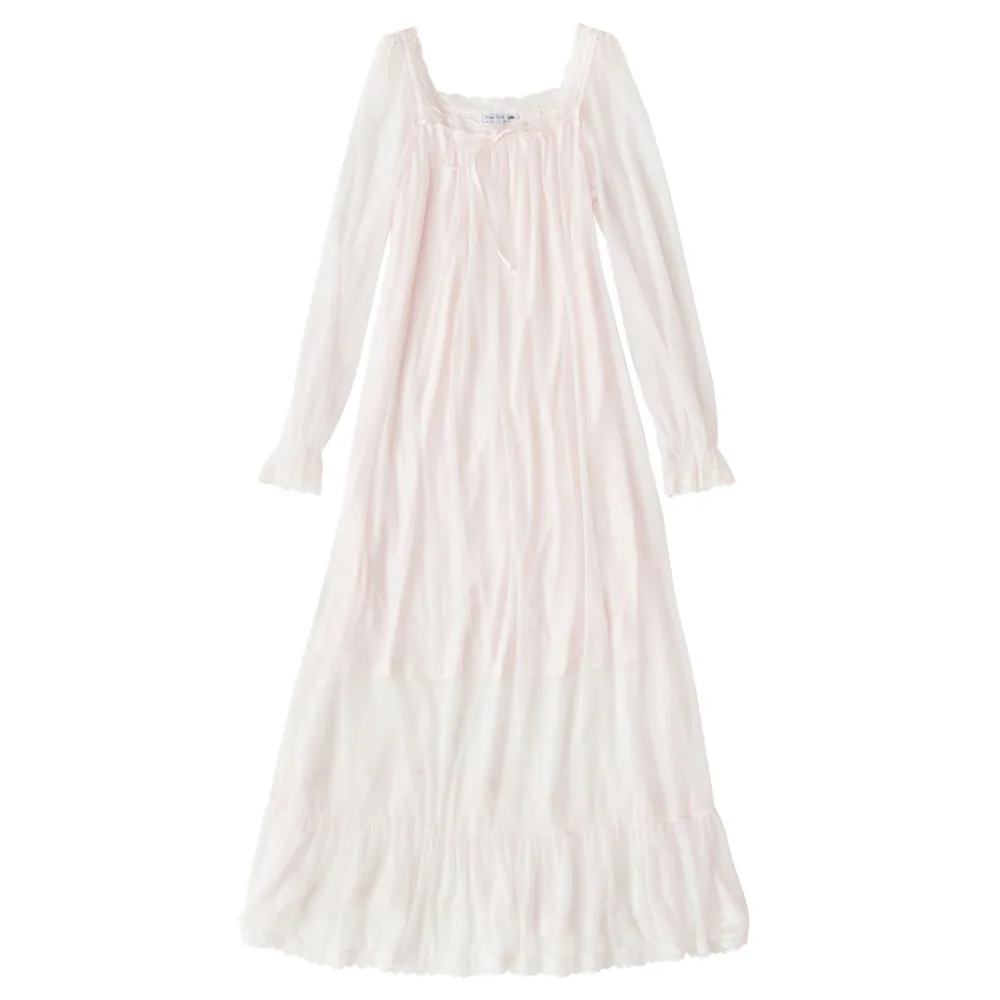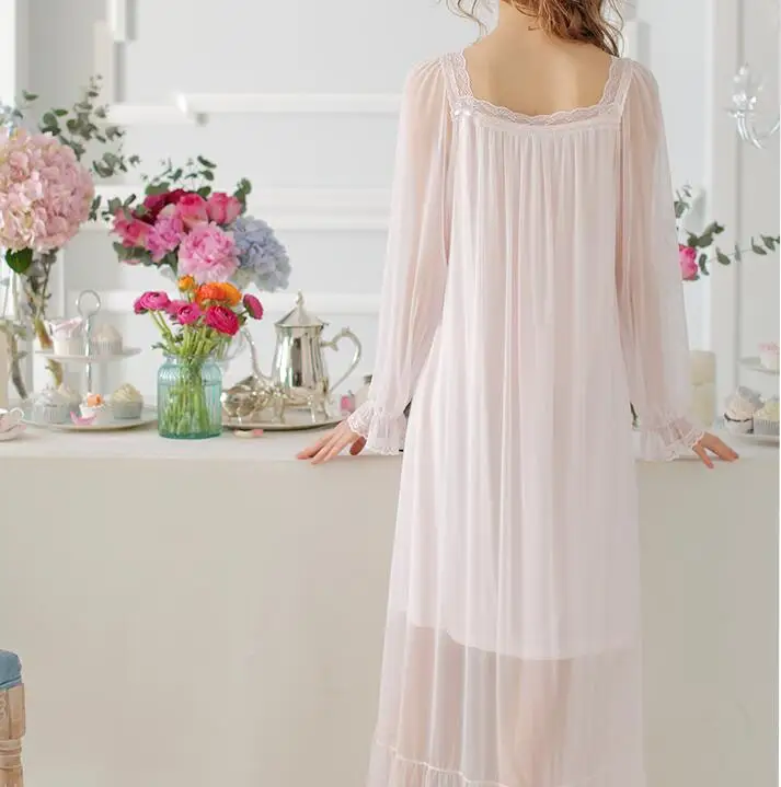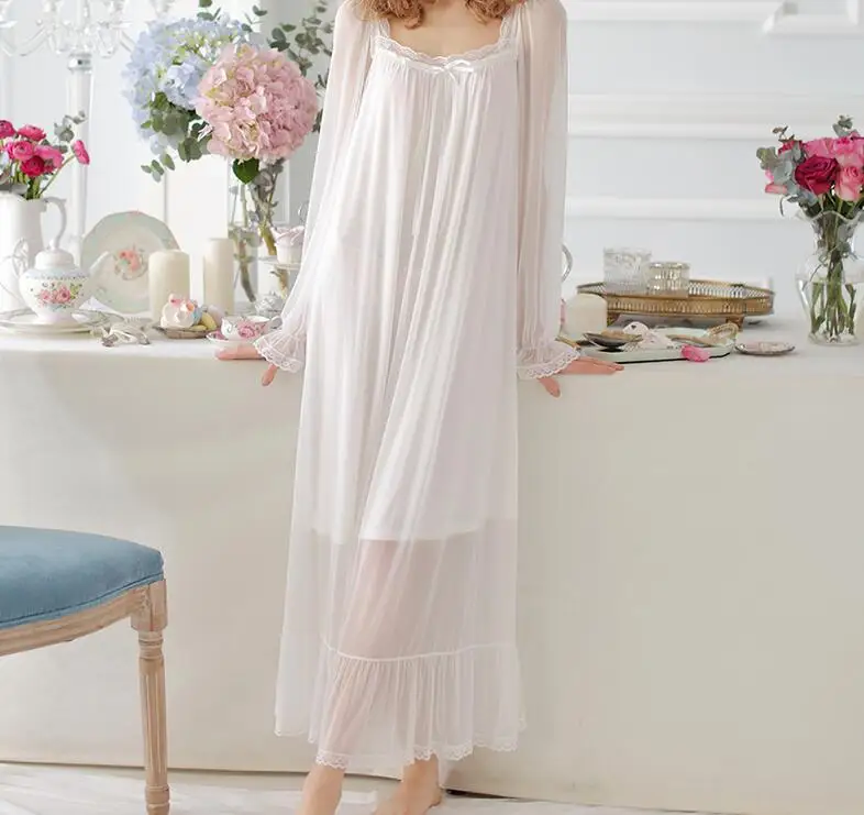 Free Shipping New Spring Princess Nightdress Royal Pyjamas Women’s Long Nightgown Lace Sleepwear Modal 3 Color Nightshirt