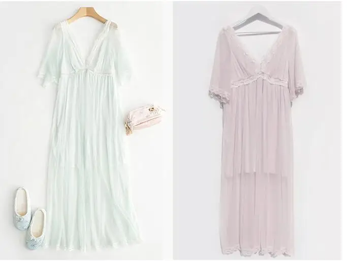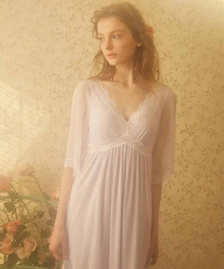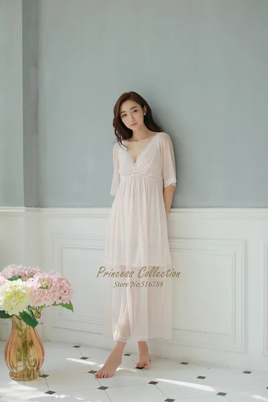 Free Shipping New Summer Princess Women’s Nightgown Long Sleepwear Vintage Pijamas V-neck Nightshirt
