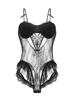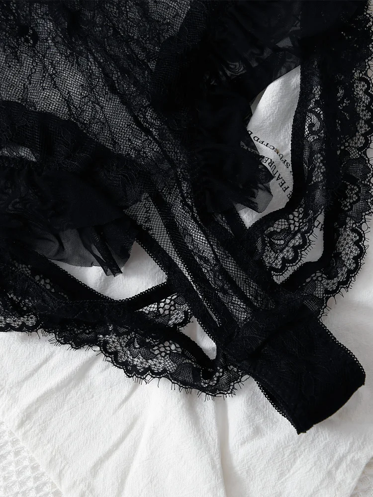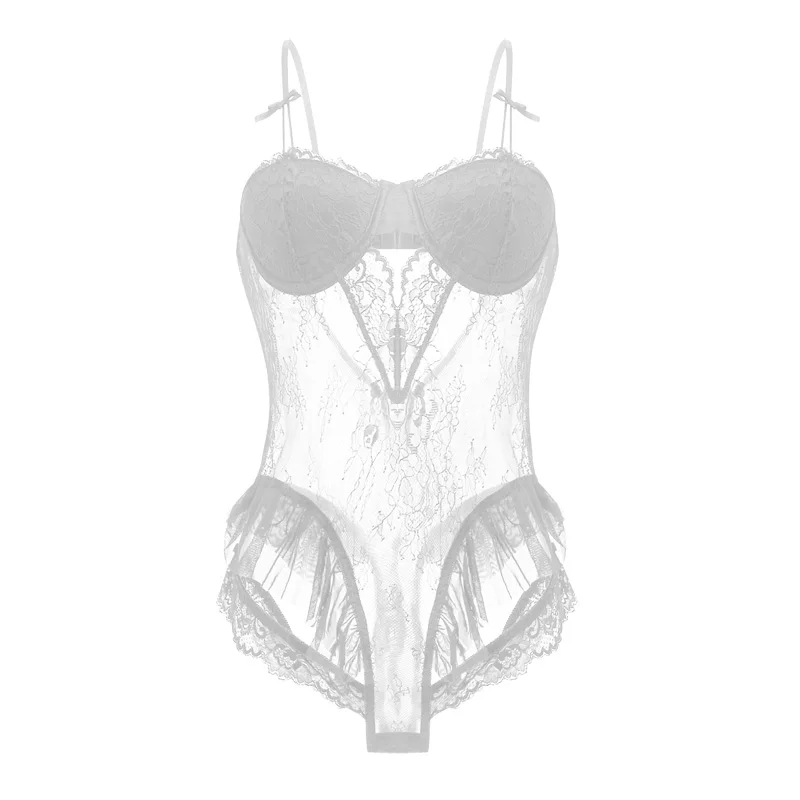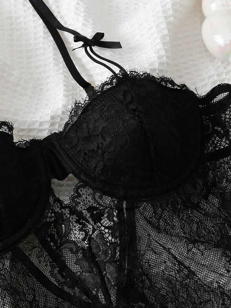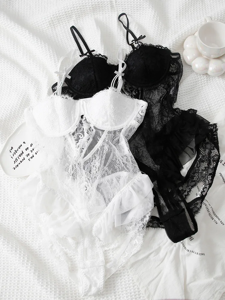 French Sexy Lace Bodysuit Perspective Mesh Ballet Skirt Strap One-Piece Underwear Set Half Cup Bra Women Lingeire