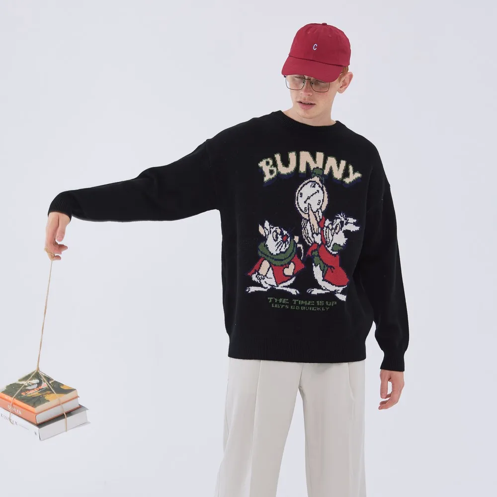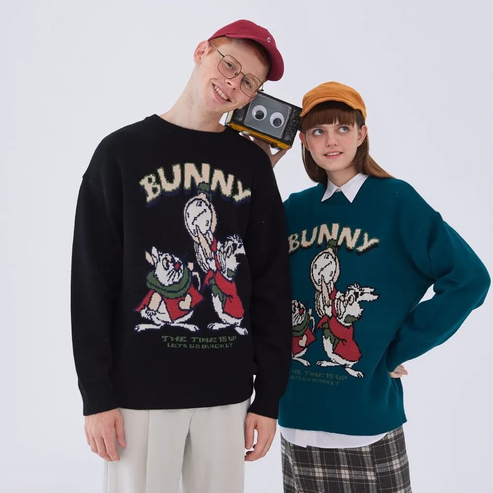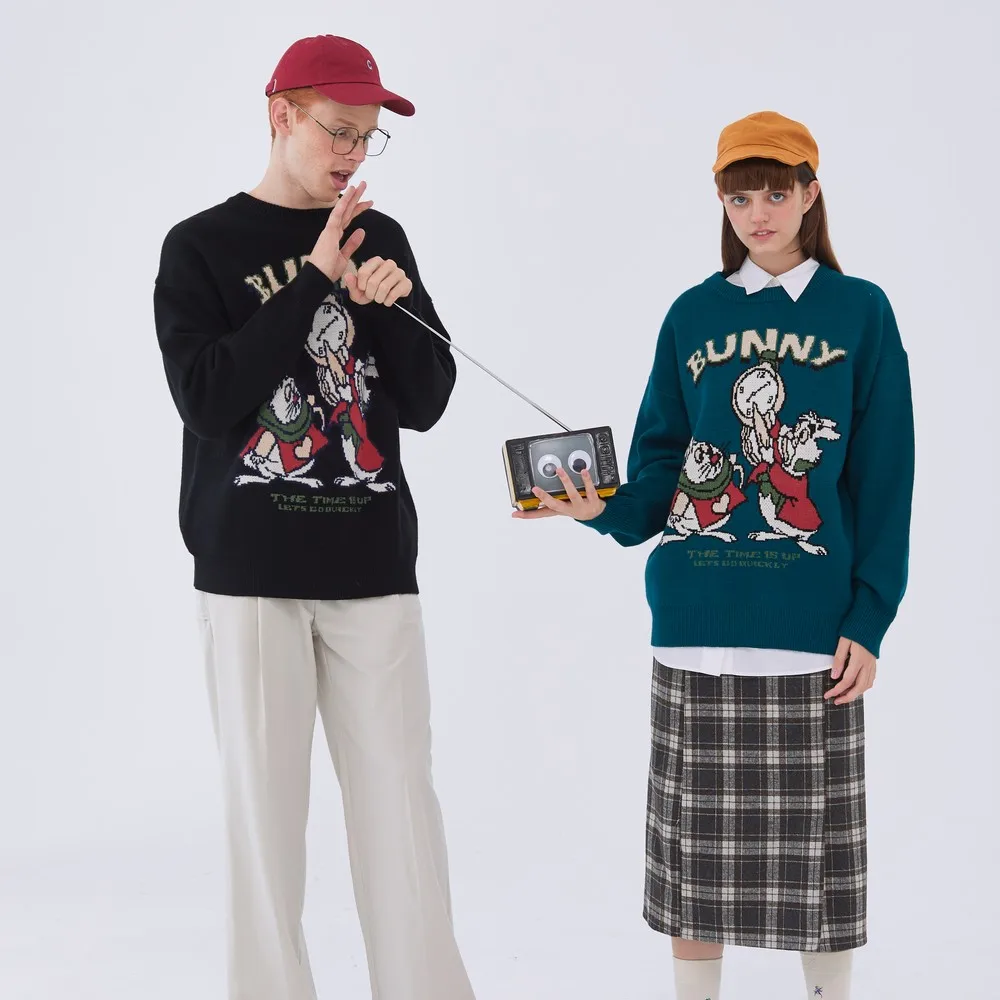 Funny Kawaii Couple Clothes Cute Japan Clothes Knitted Retro Sweater Harajuku Men Clothing Pull Homme Tops Nice Pullover Sweter