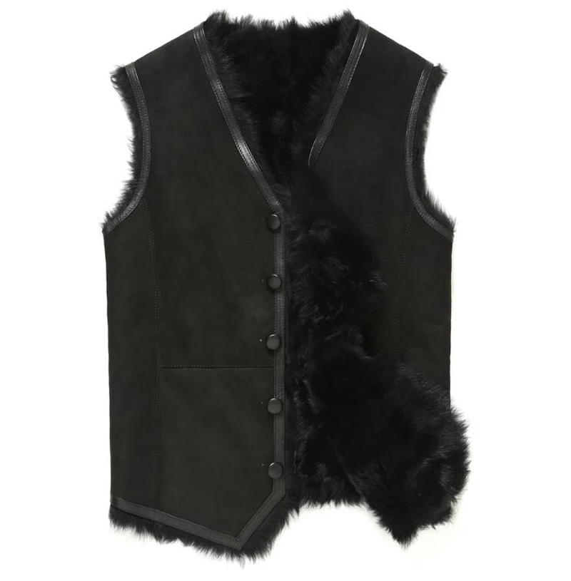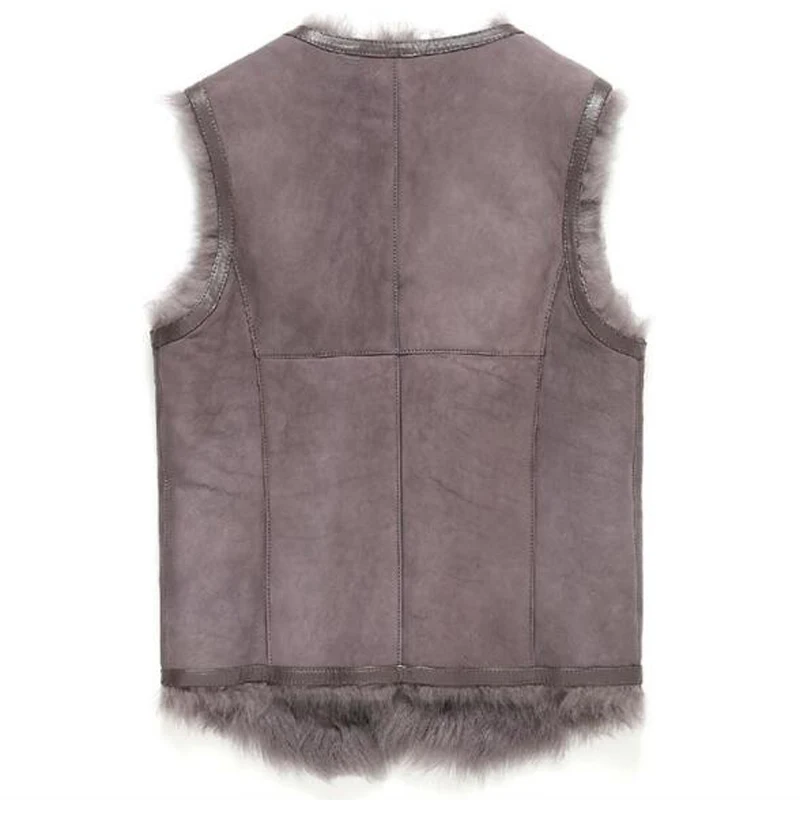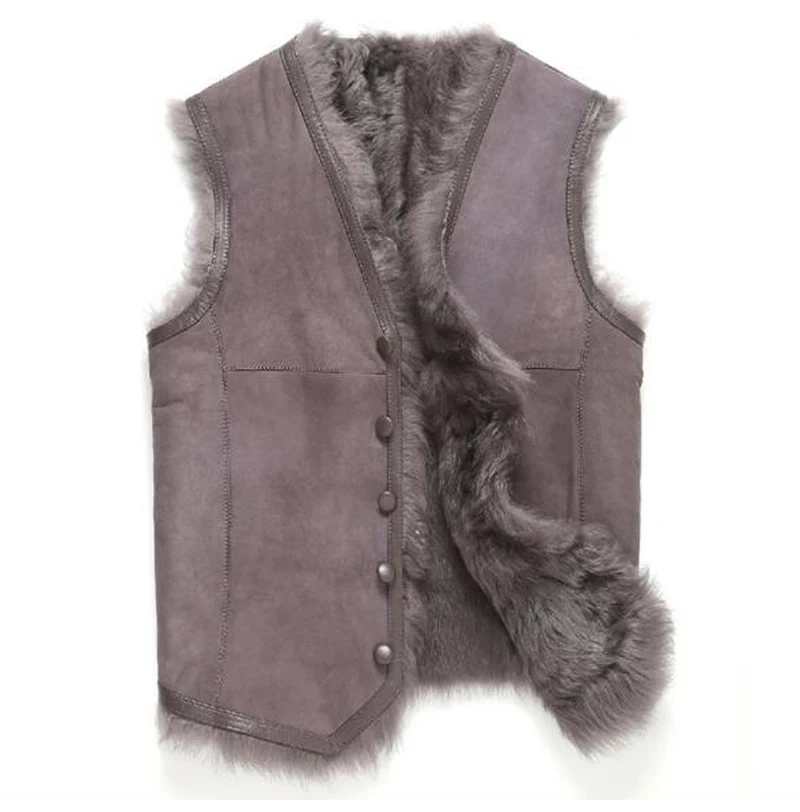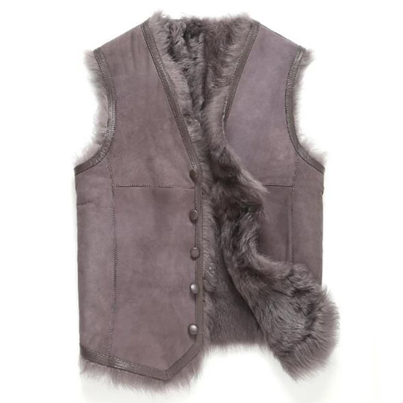 Fur Vest Men Shearling Jacket Fur Coat Tuscany Wool Outerwear Short V Collar Leather Coat TJ43