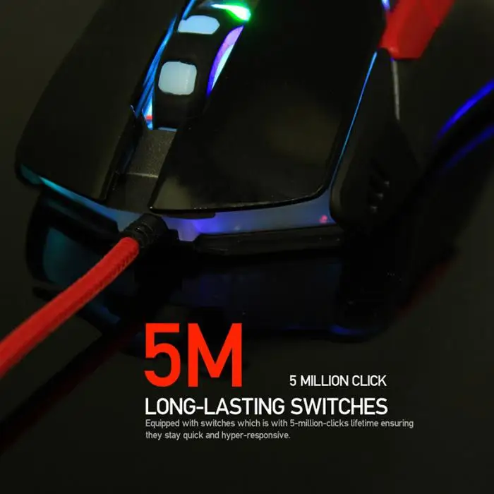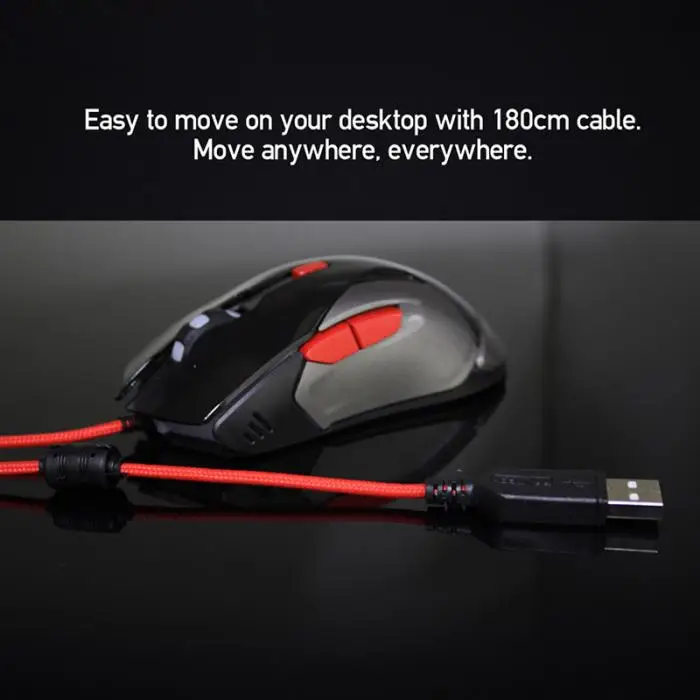 Gaming Mouse Wired USB 6D Buttons DPI 4 Modes 1.8M LED Light Fashion For Computer ND998