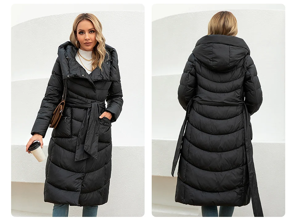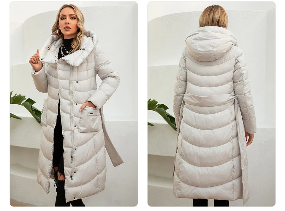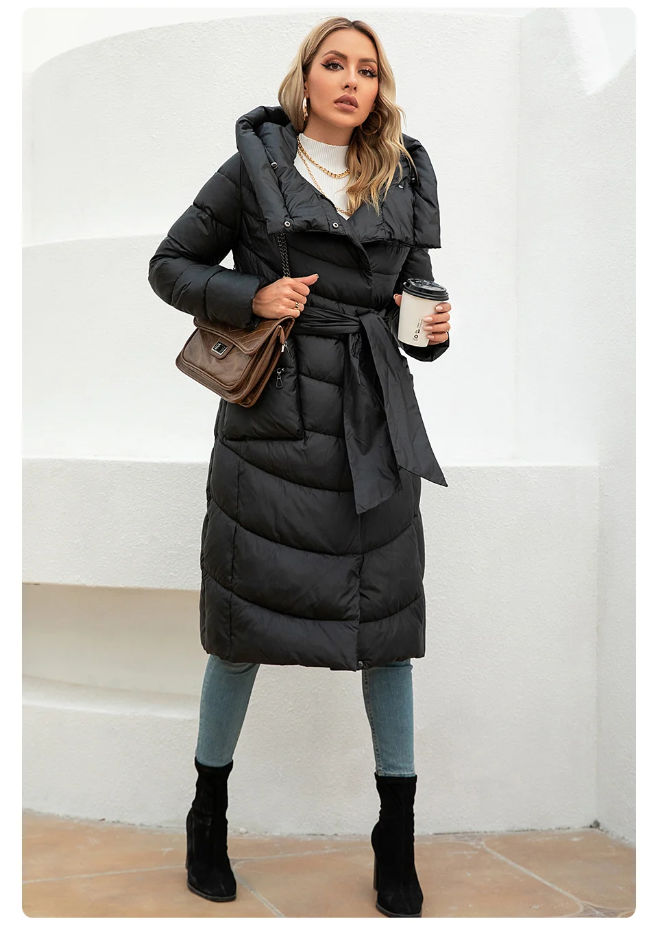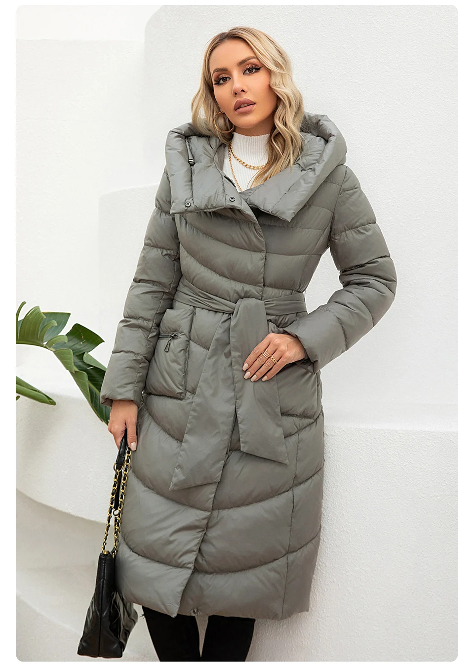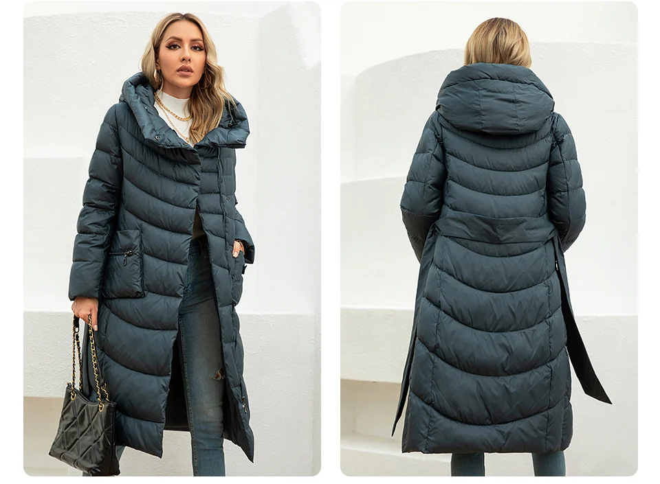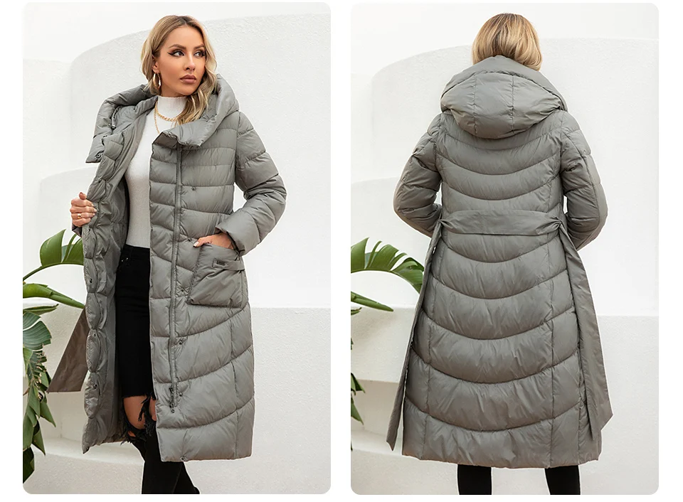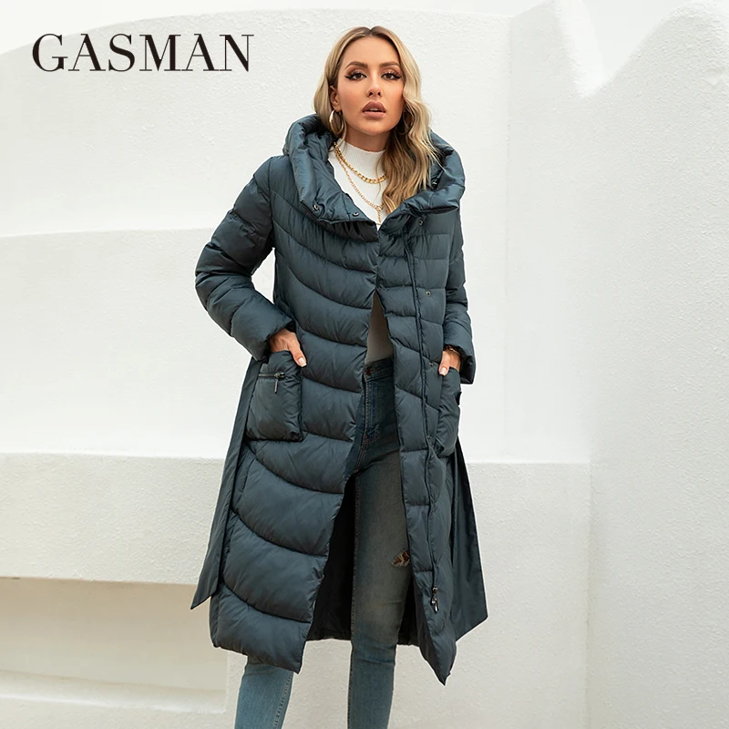 GASMAN 2023 Fashion Parkas Women’s Casual Hooded Pocket Belt Women Down Jacket Female Coats Outwear 82032