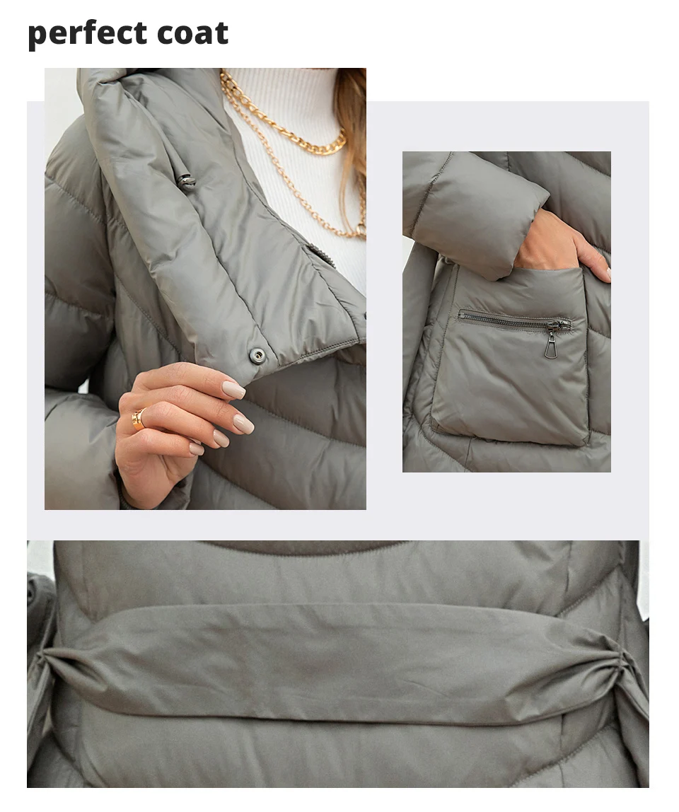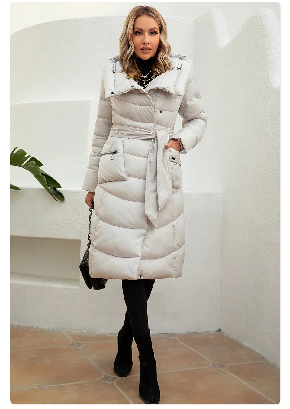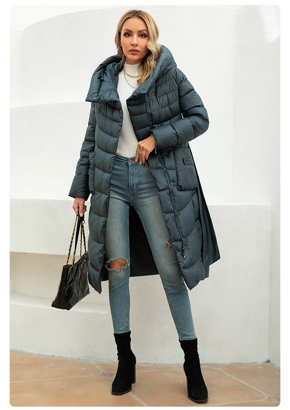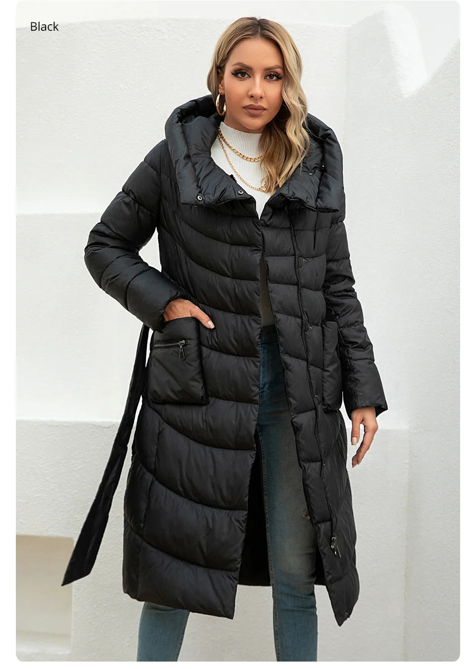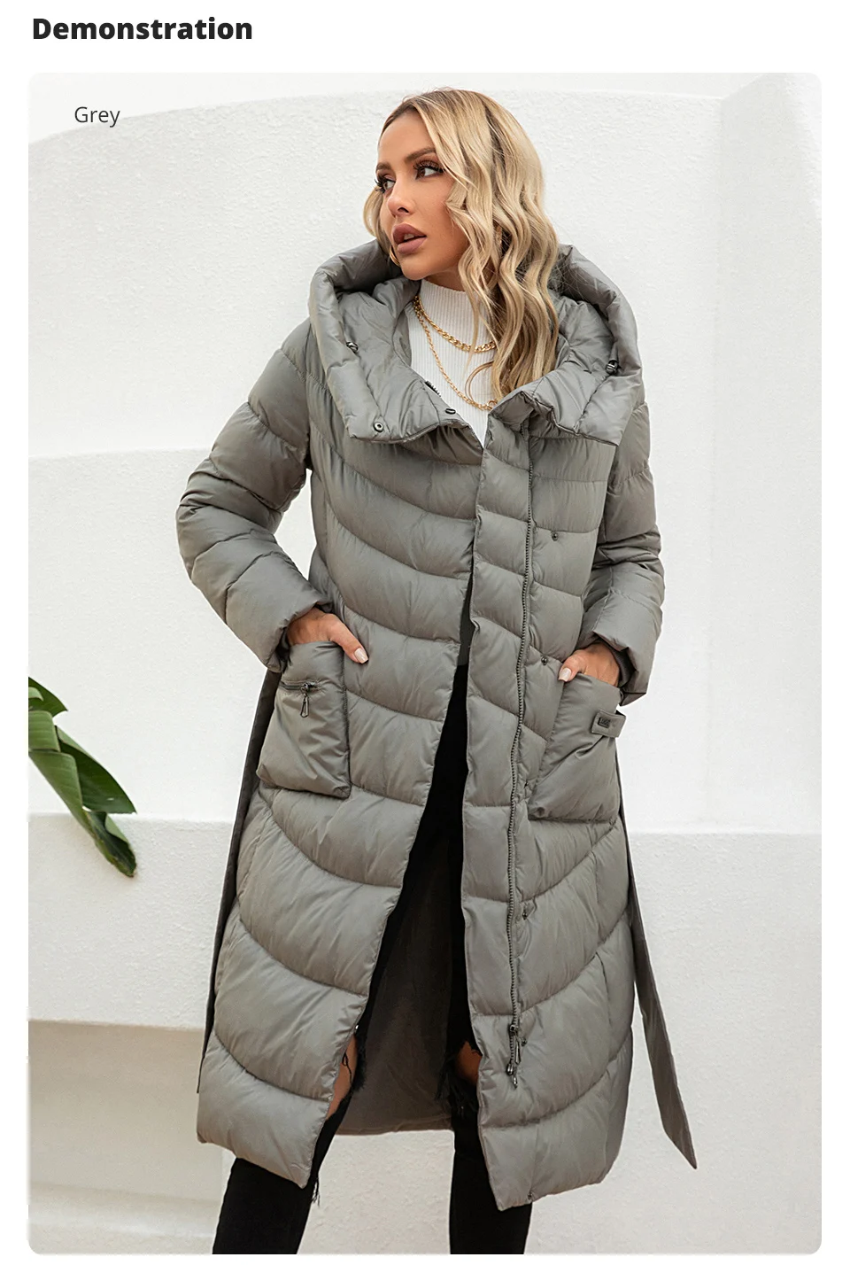 GASMAN 2023 Fashion Parkas Women’s Casual Hooded Pocket Belt Women Down Jacket Female Coats Outwear 82032