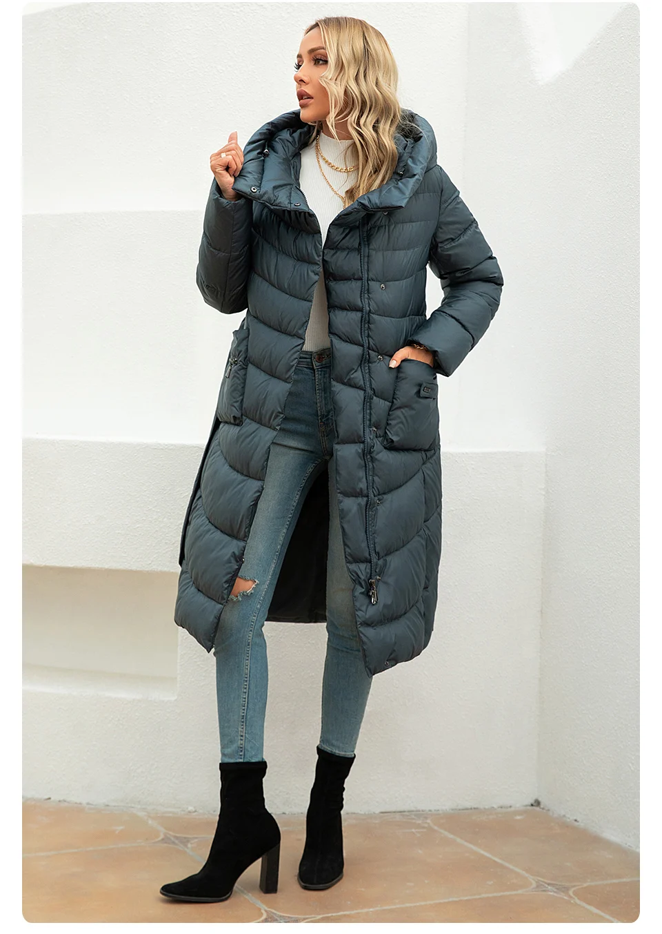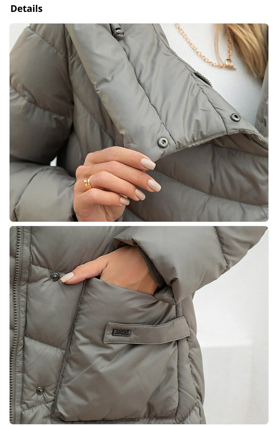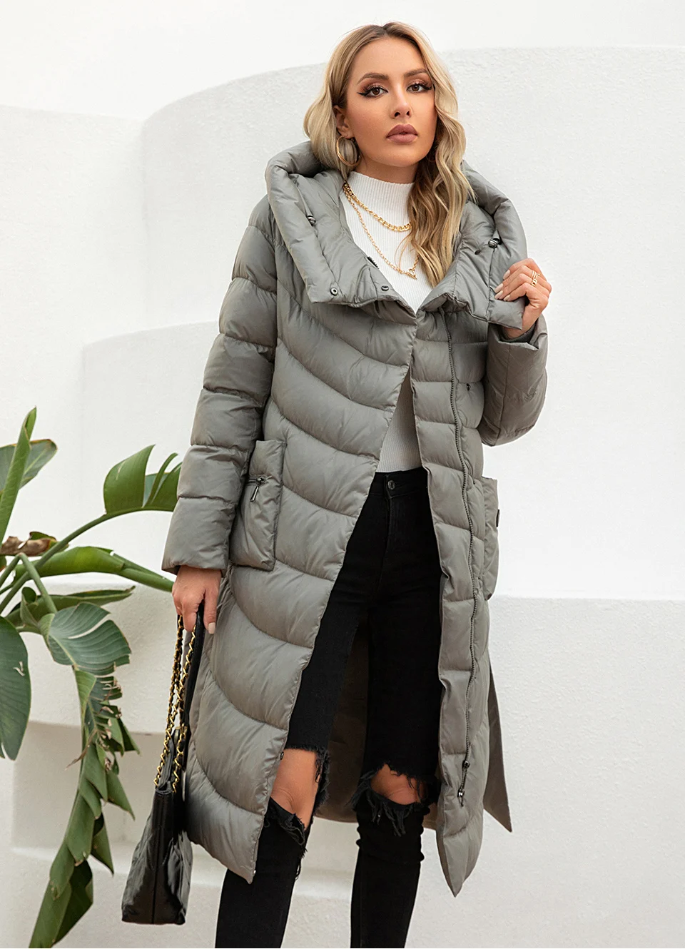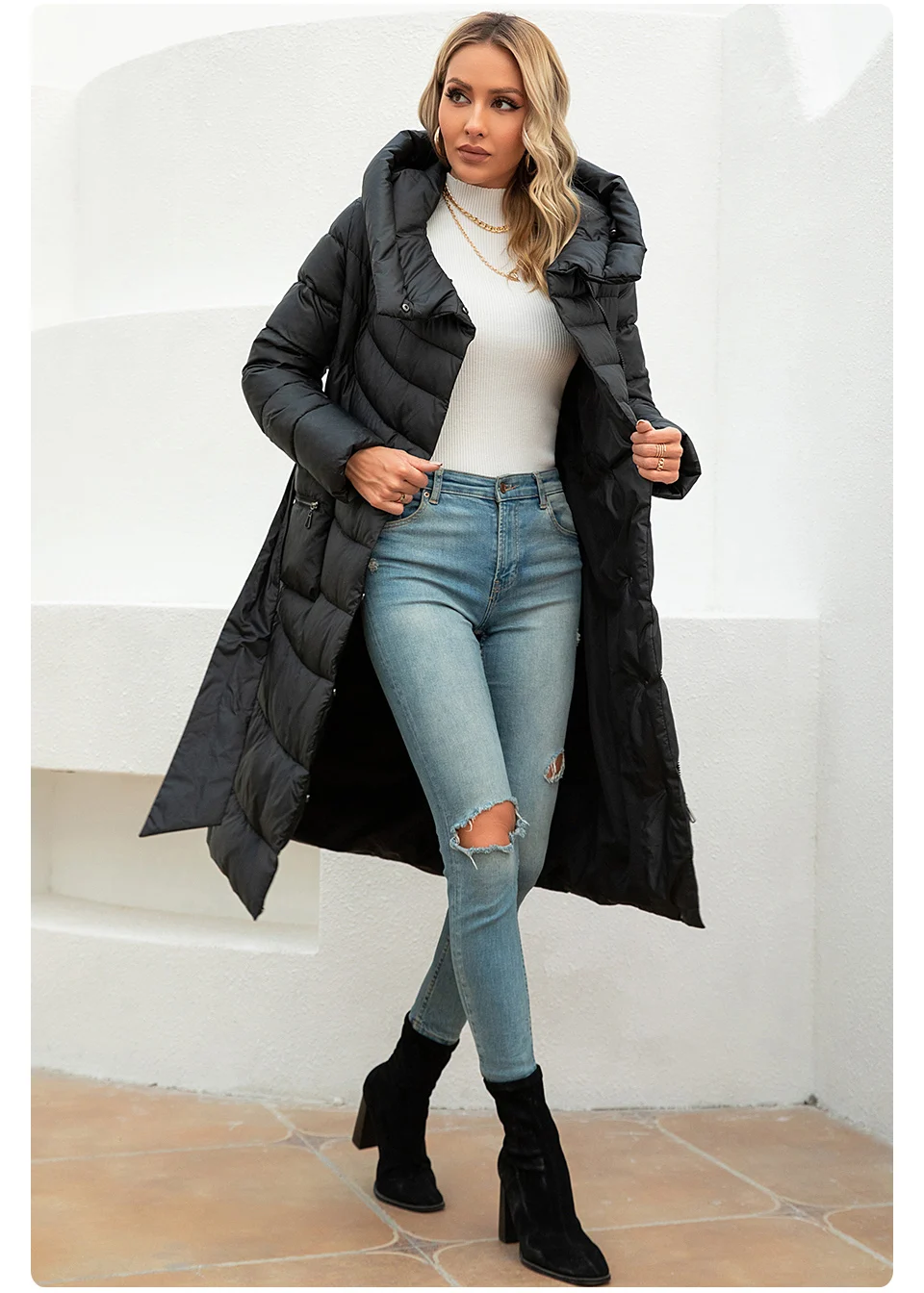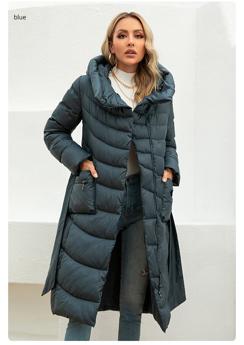 GASMAN 2023 Fashion Parkas Women’s Casual Hooded Pocket Belt Women Down Jacket Female Coats Outwear 82032