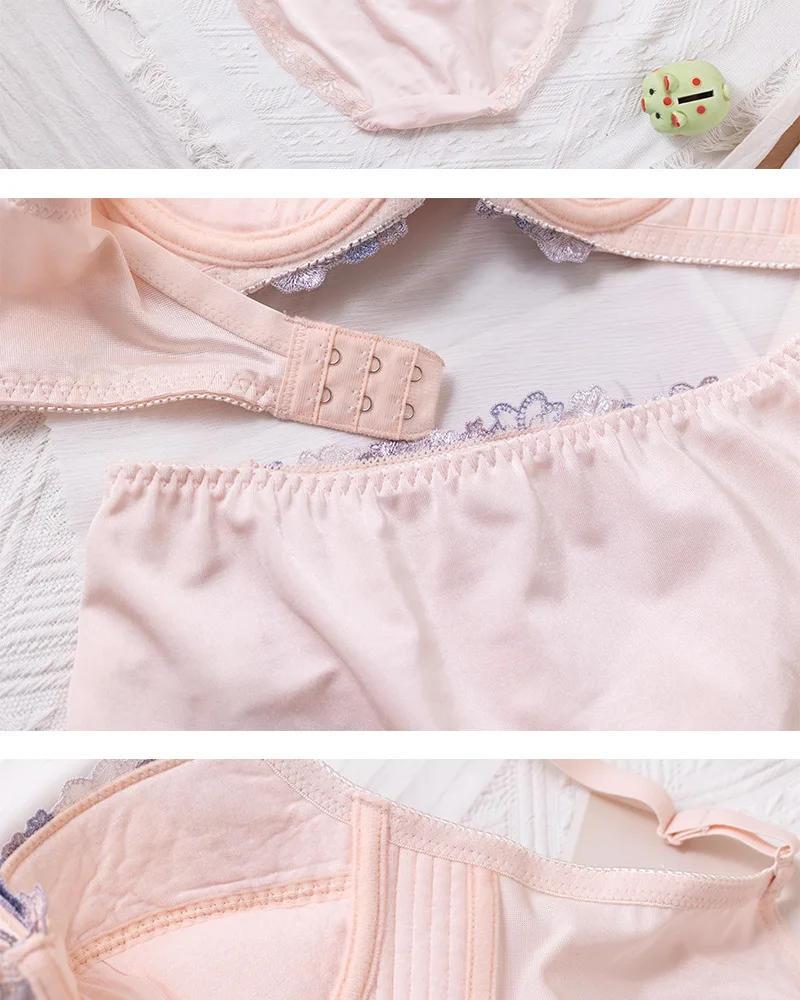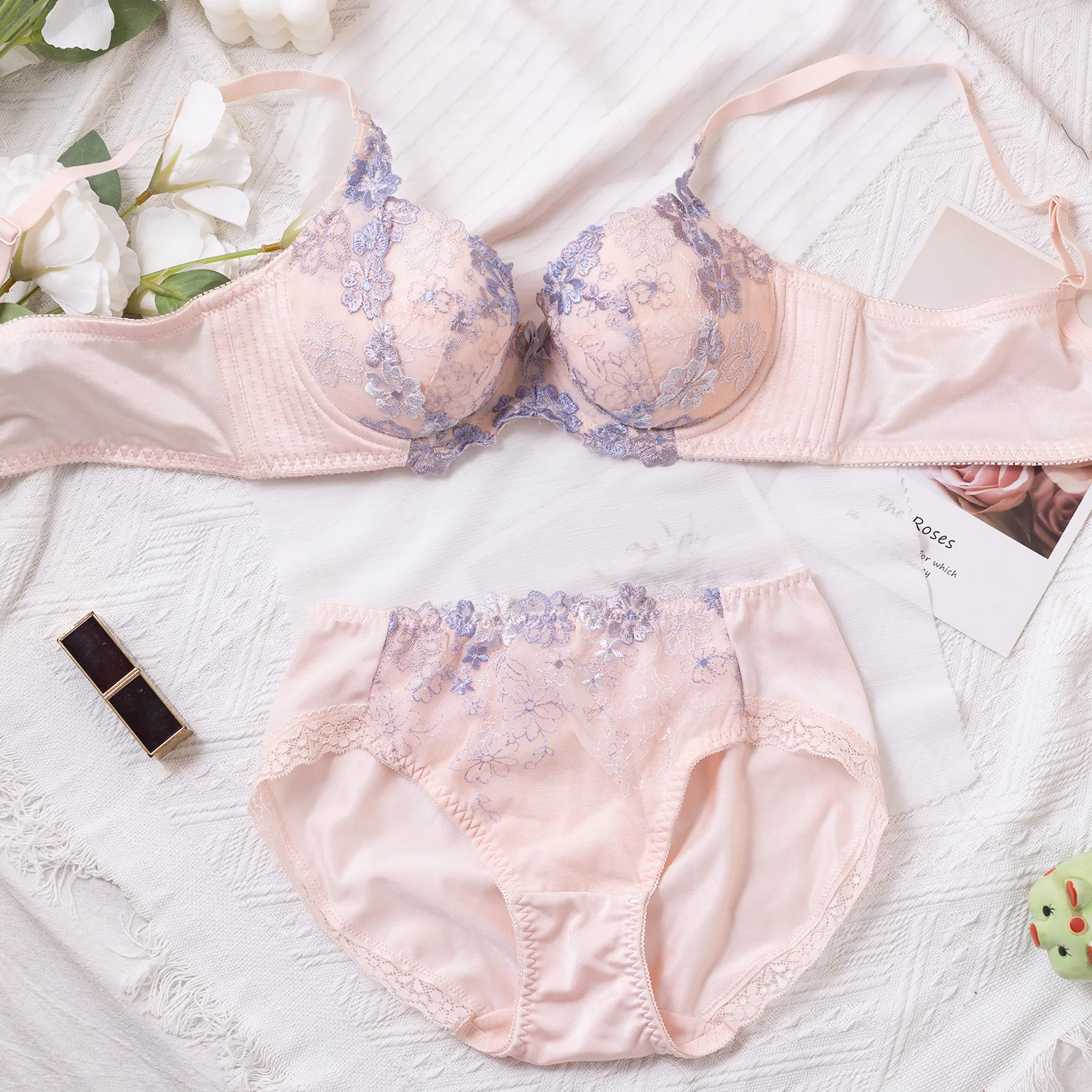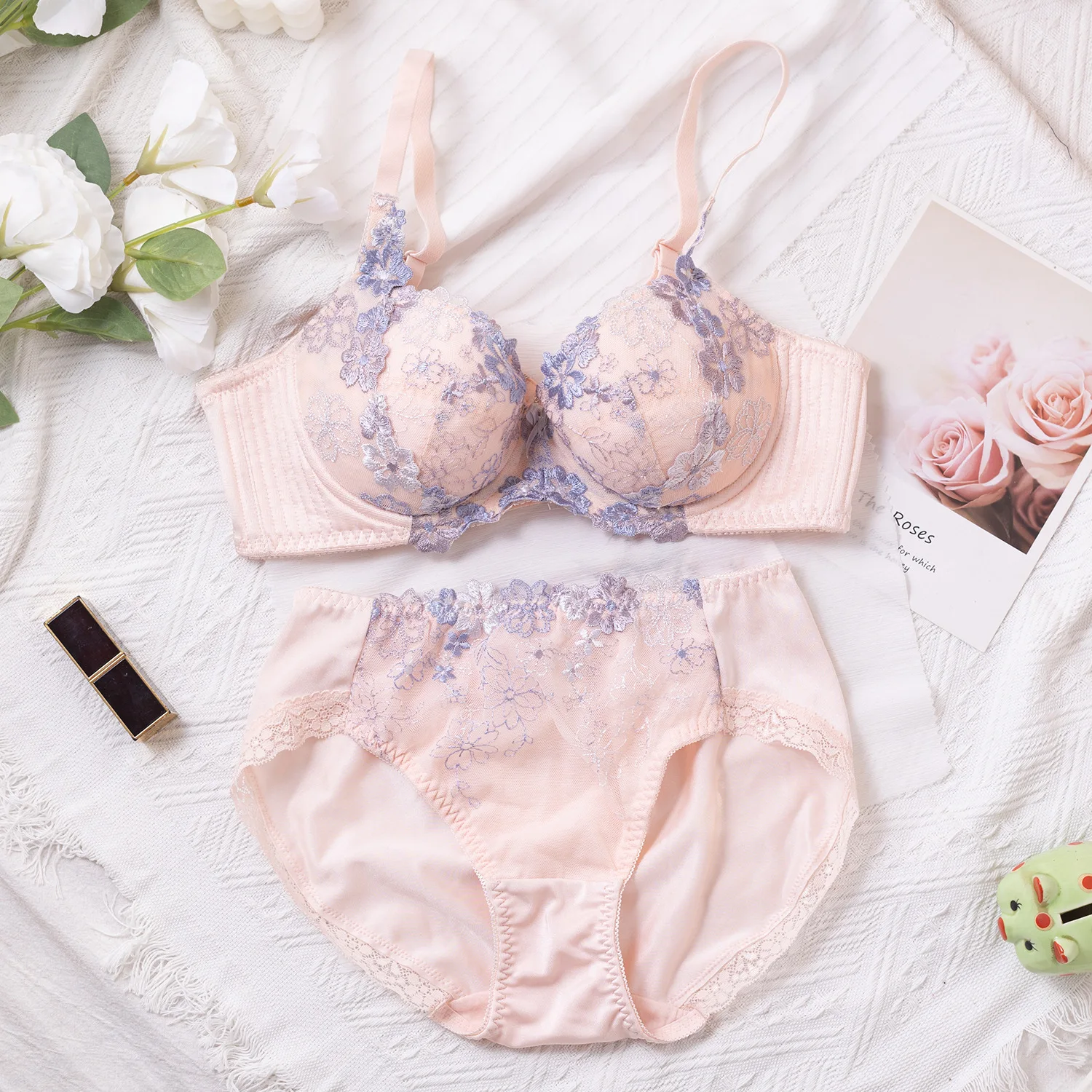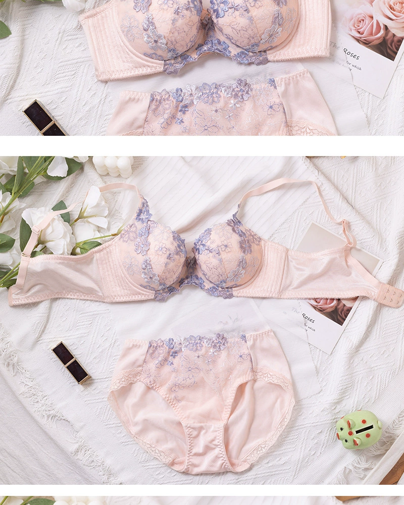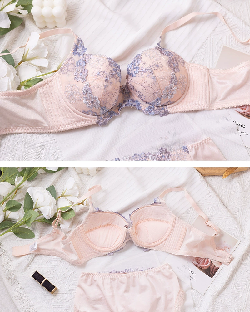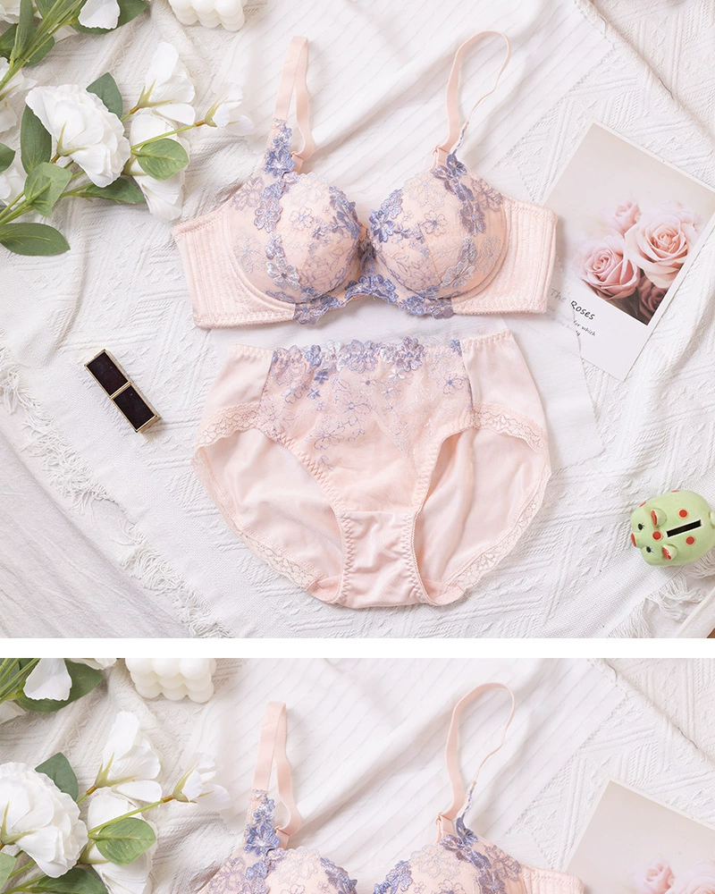 Gathering lingerie side income have steel ring support large bra set Japanese thin section embroidery sexy sweet underwear
