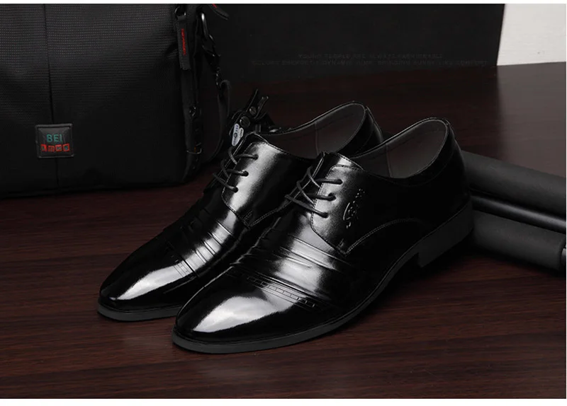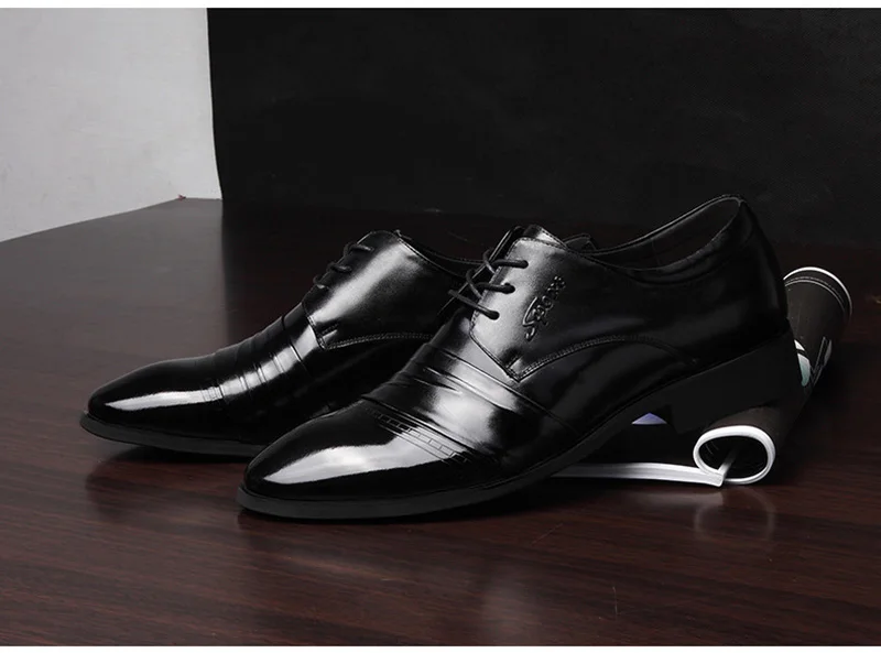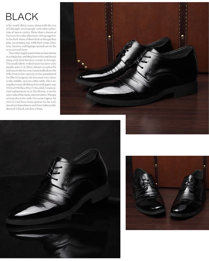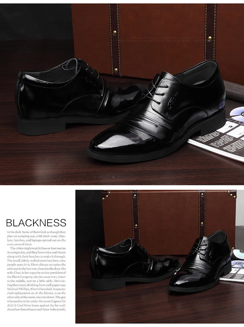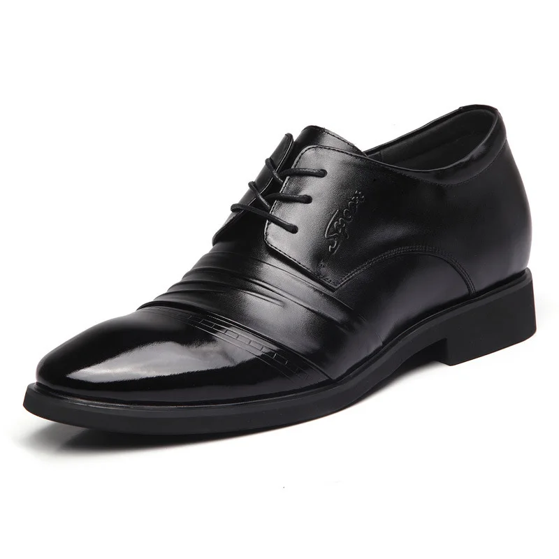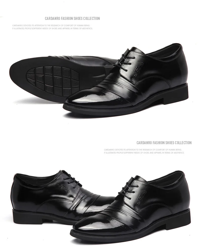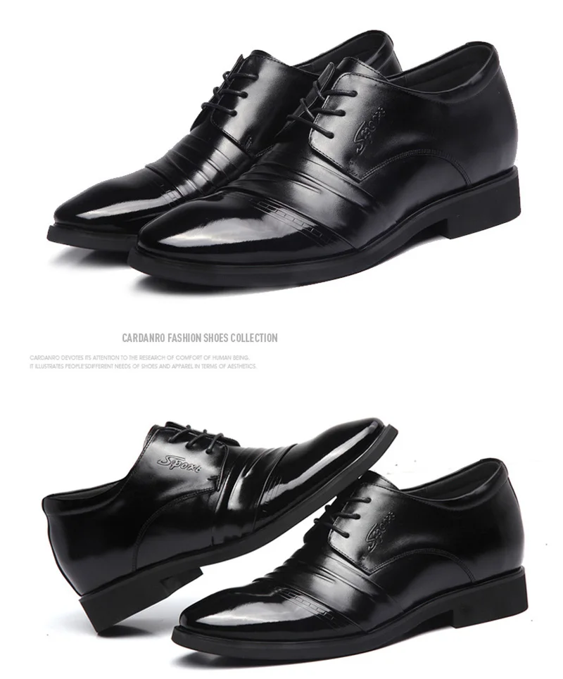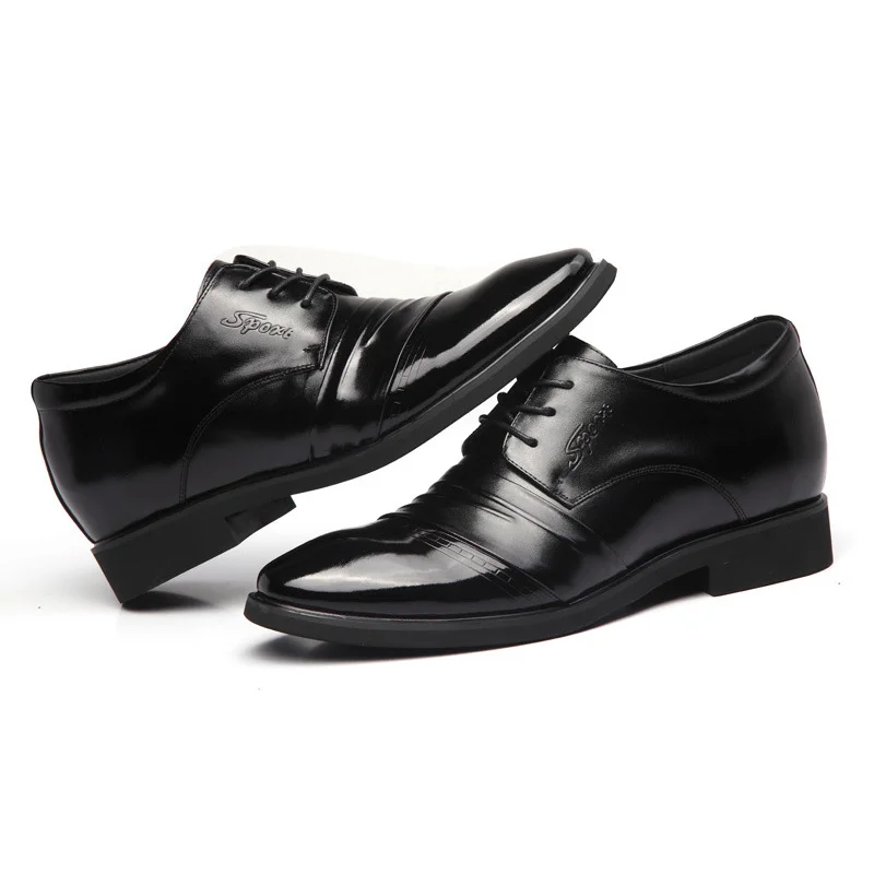 Genuine Leather Business Shoes Men Height Increasing Shoes 6cm Brand Male Footwear Casual Men Black Leather Brogues Shoes A1678
