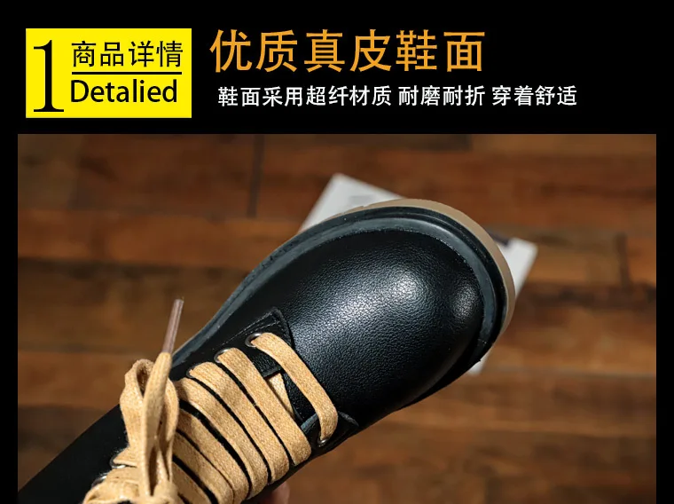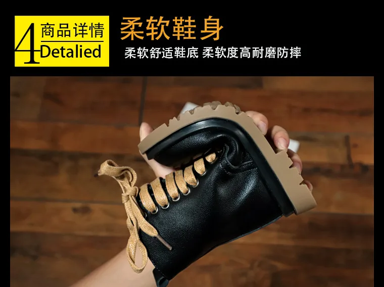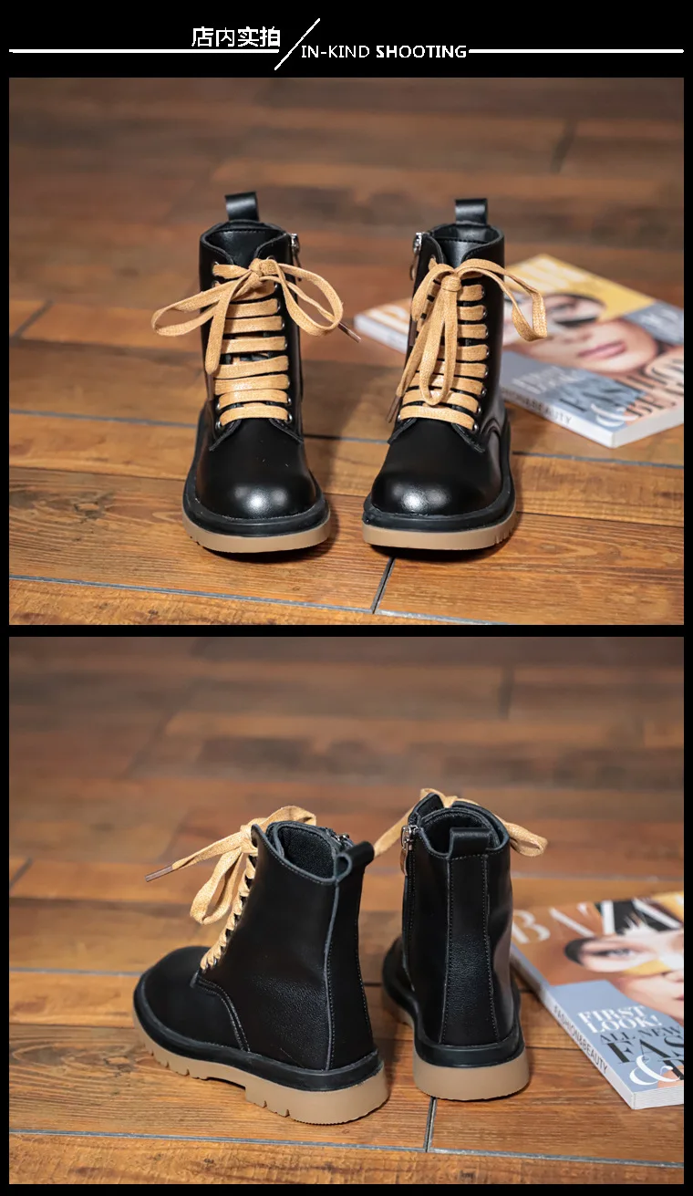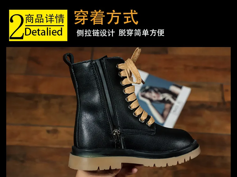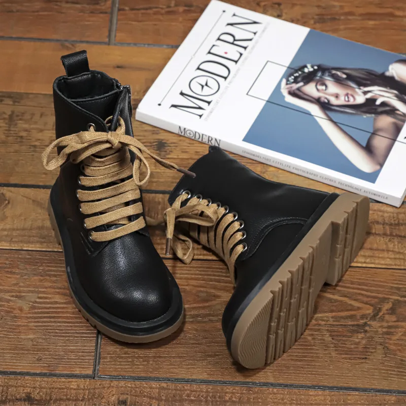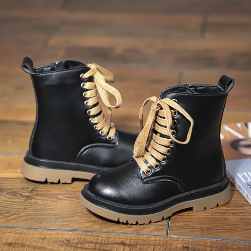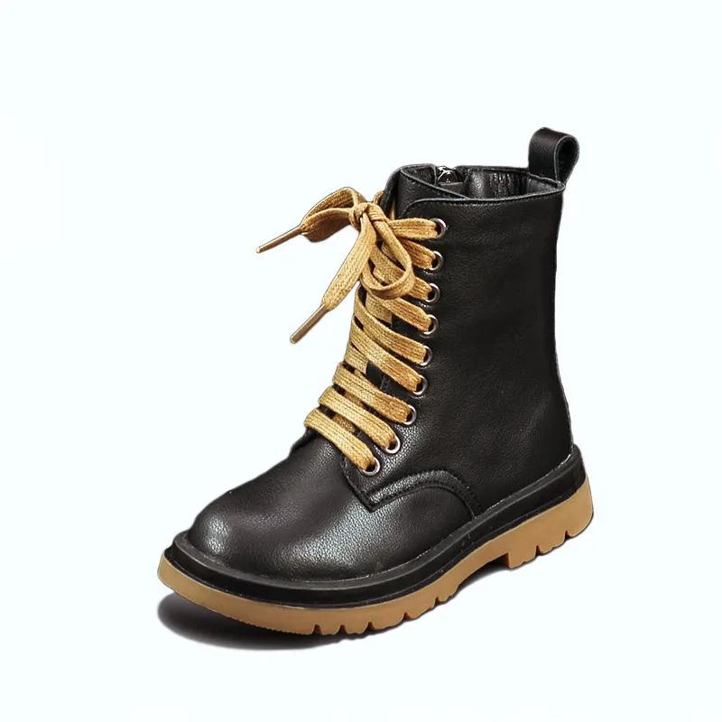 Genuine Leather Children Martin Boots Boys Casual Boots Baby Plush Winter Shoes Side Zipper Kids Warm Shoes Black British Shoes