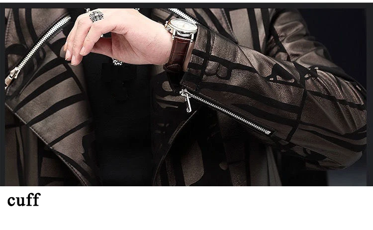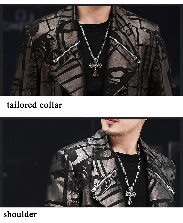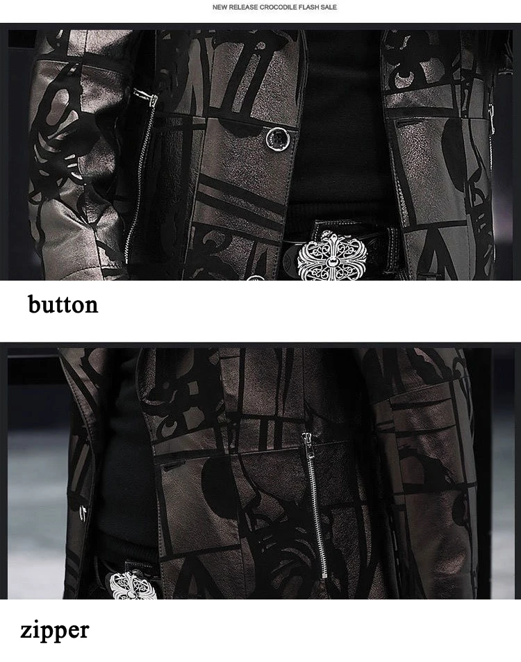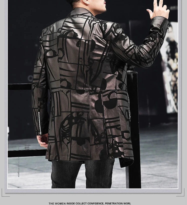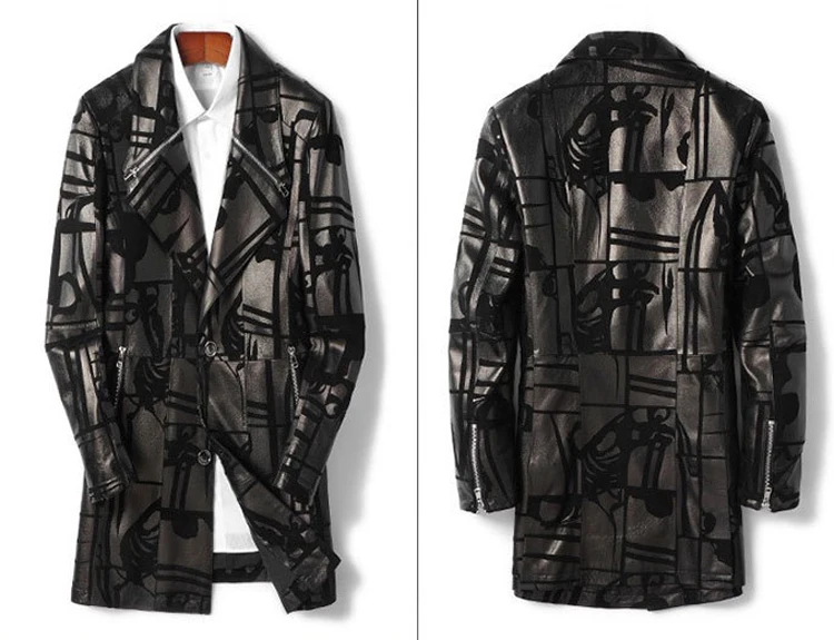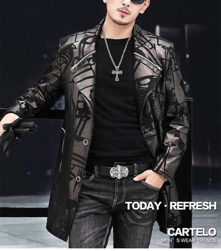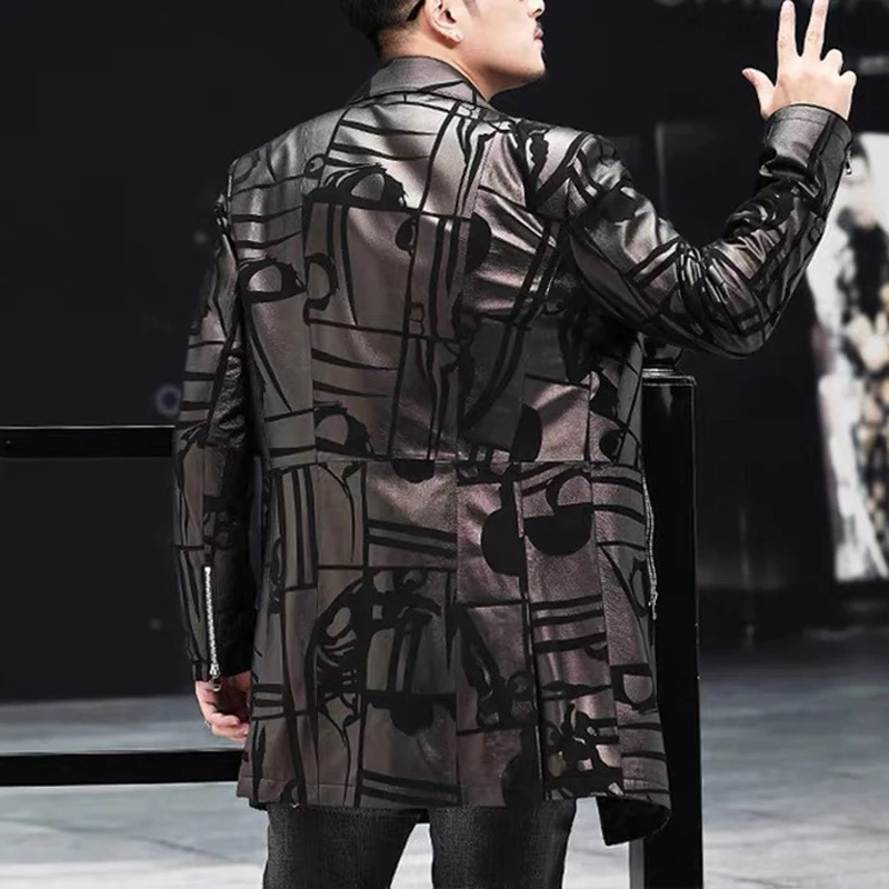Genuine Leather Jacket Men Mid Length Suit Suede Printed Trench