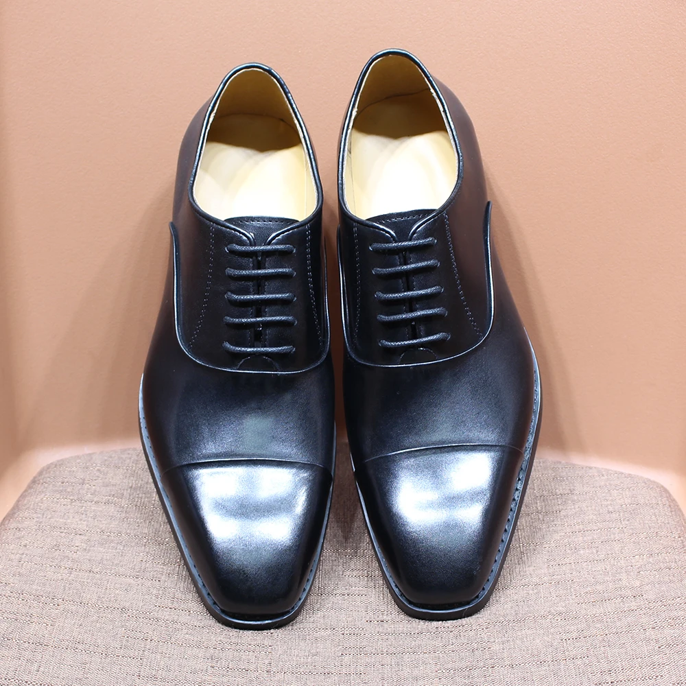 Genuine Leather Men’s Oxford Handmade Dress Shoes for Men Classic Lace Up Solid Cap Toe Office Wedding Pointed Formal Footwear