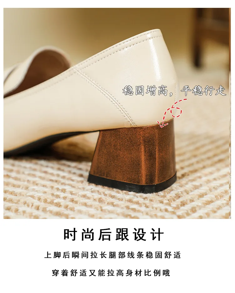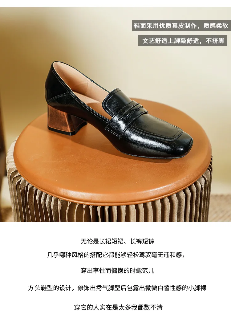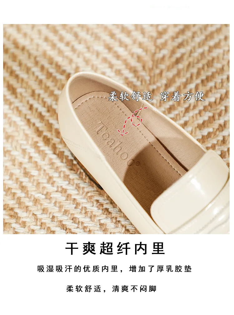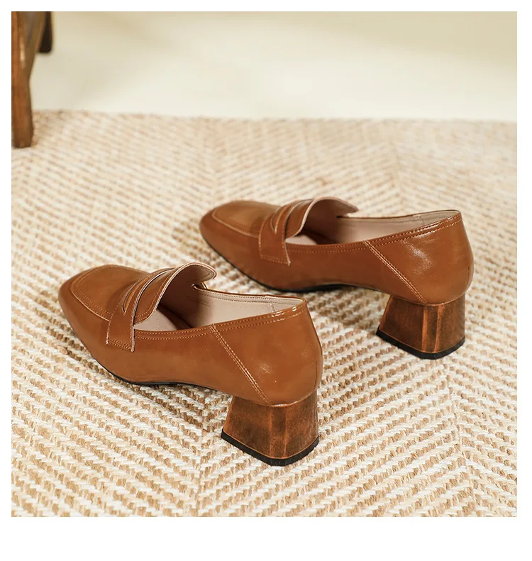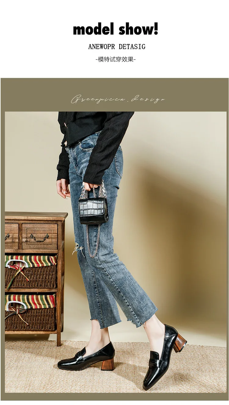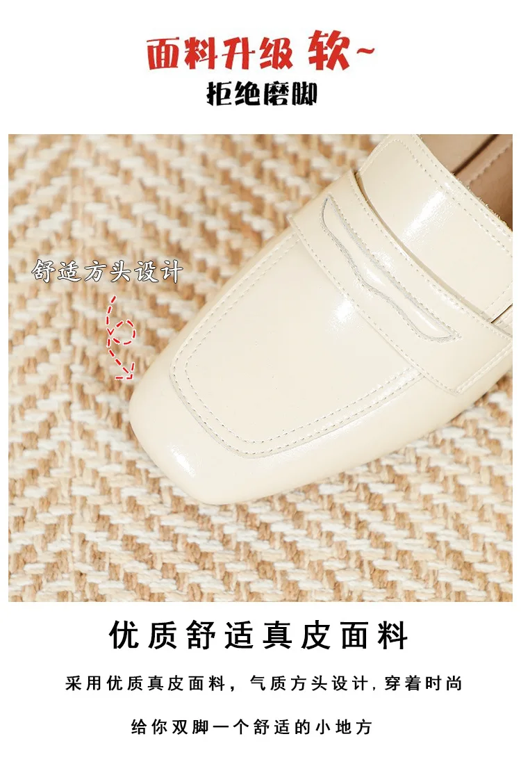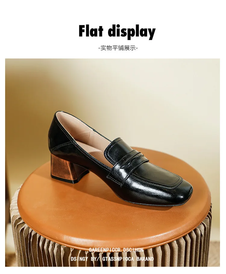 Genuine Leather oxford shoes women 2022 shallow flats shiny leather office shoes british square toe chunky heels loafers woman