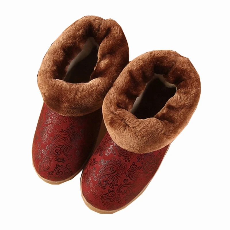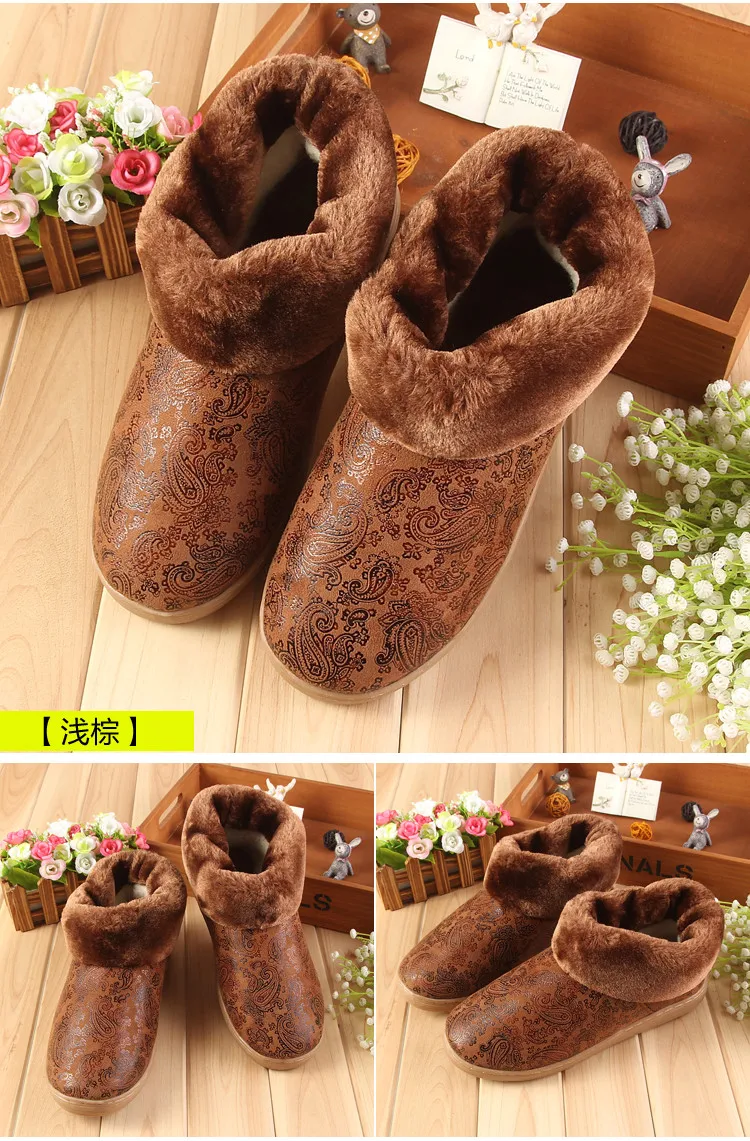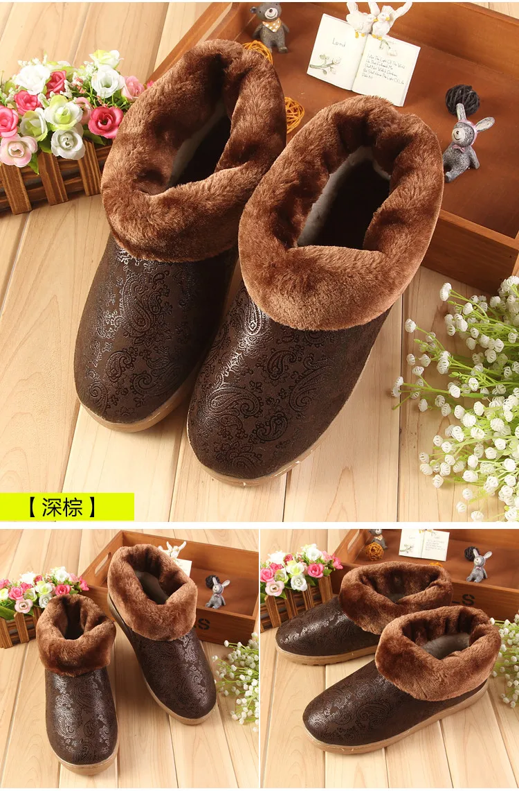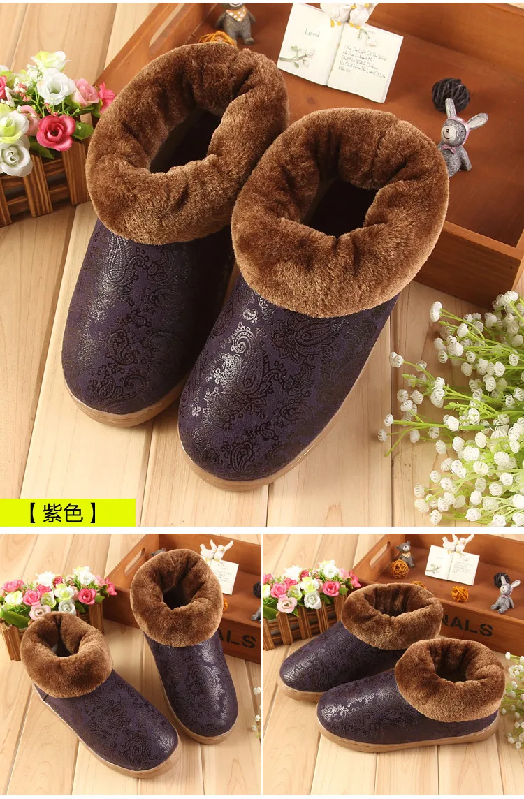 Genuine Leather Winter House Slippers Super Warm Thick Sole Couple’s Home Shoes Anti-Slip Aged Men and Women Indoor Slippers