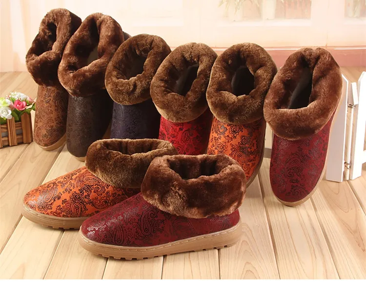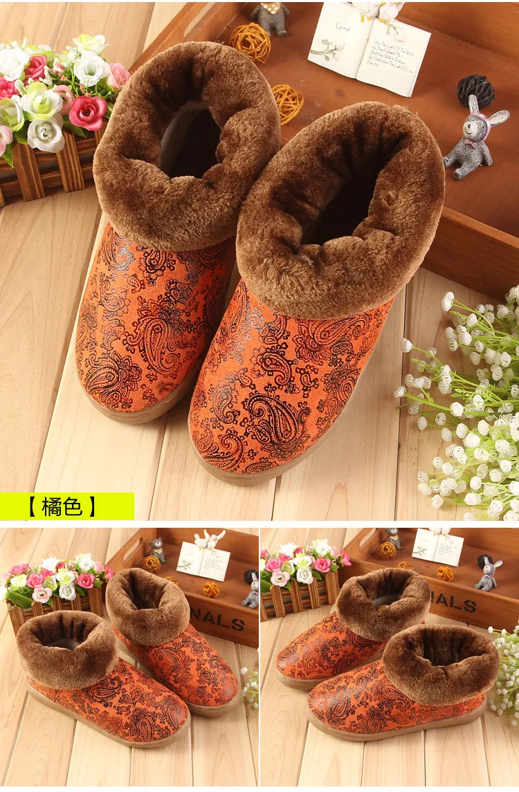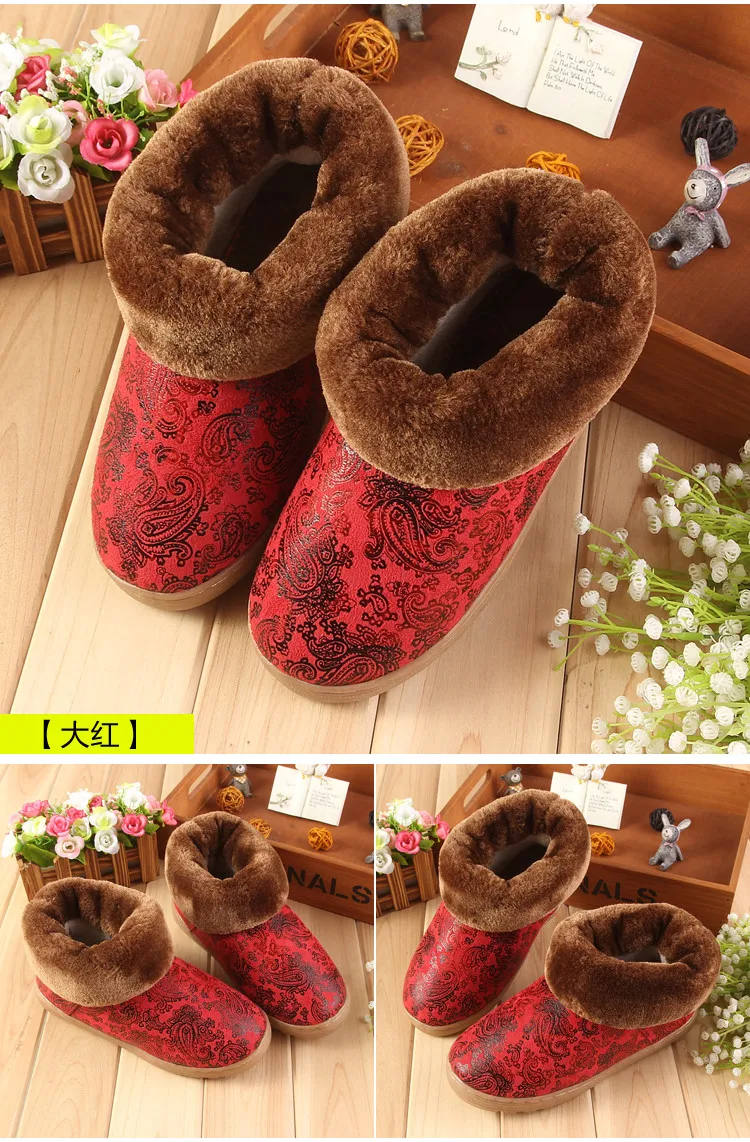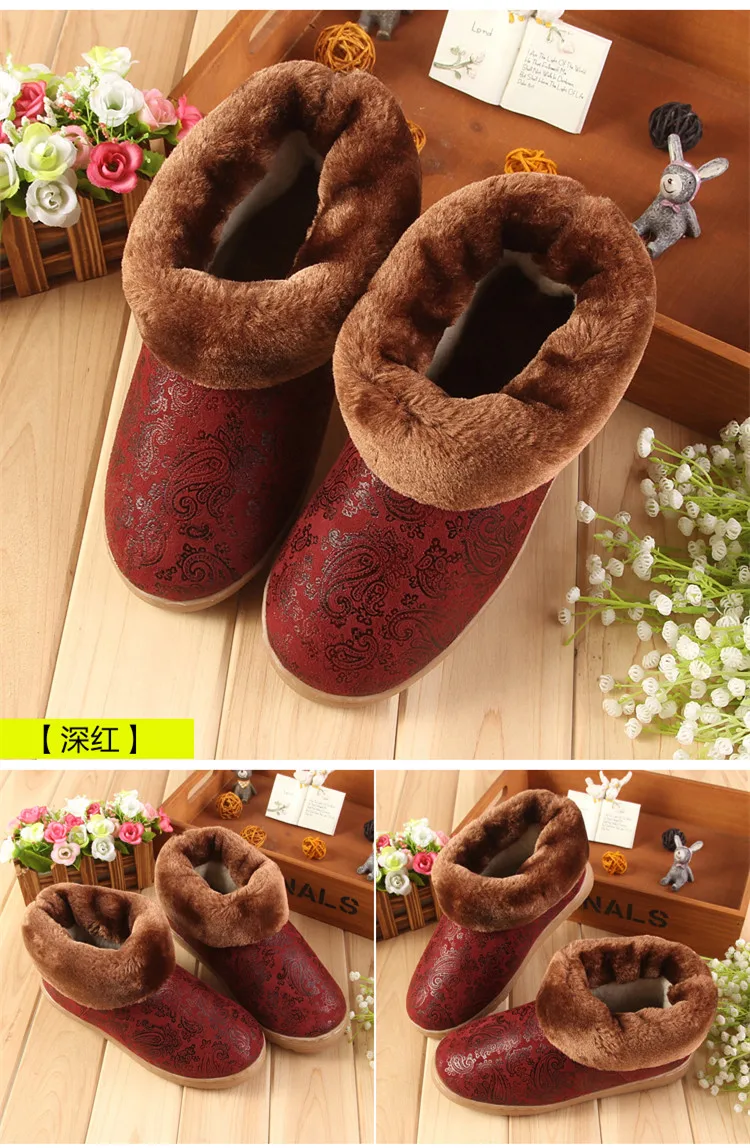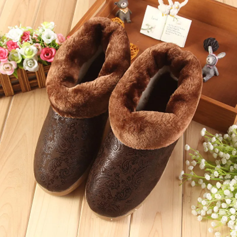 Genuine Leather Winter House Slippers Super Warm Thick Sole Couple’s Home Shoes Anti-Slip Aged Men and Women Indoor Slippers