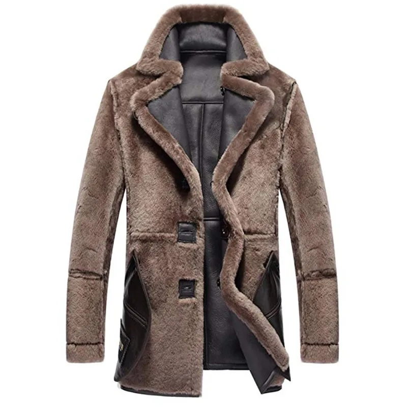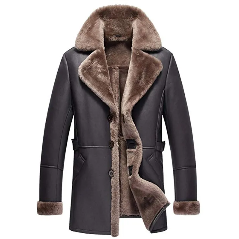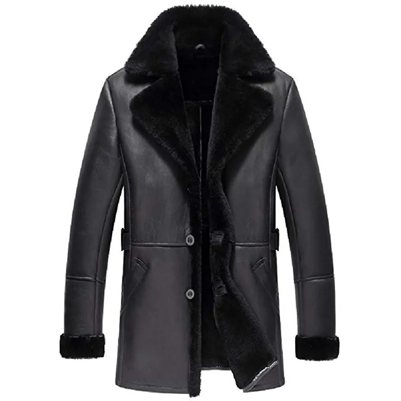 Genuine Men’s Shearling Coat – Aviator Pilot Jacket, B3 Sheepskin Fur Outwear