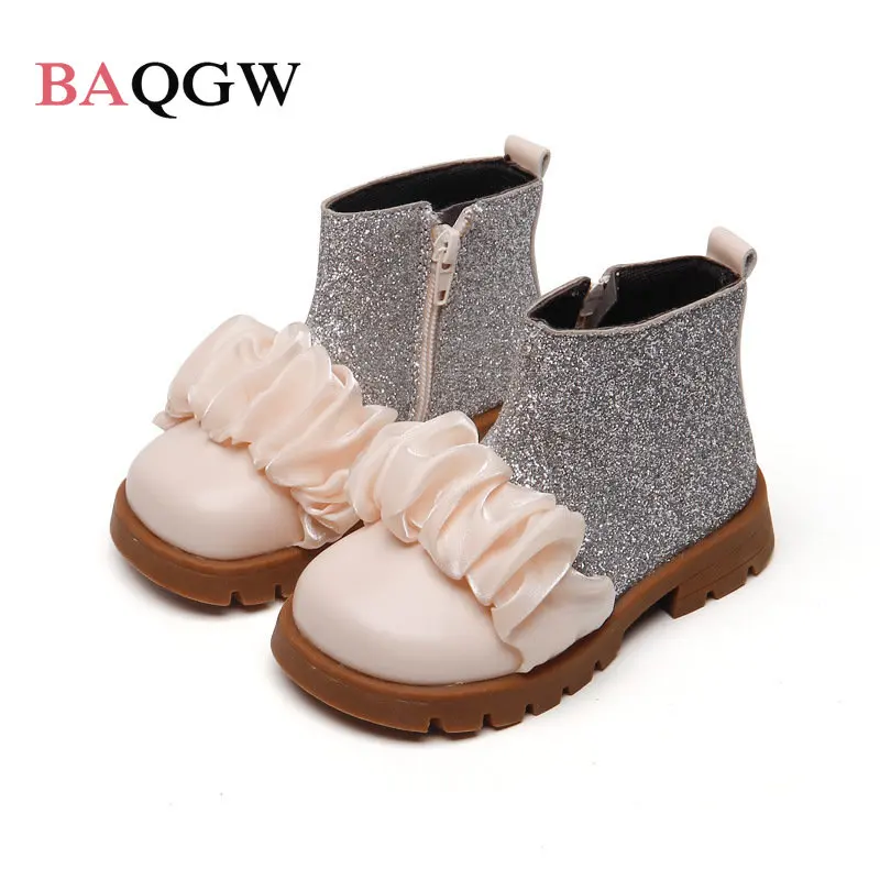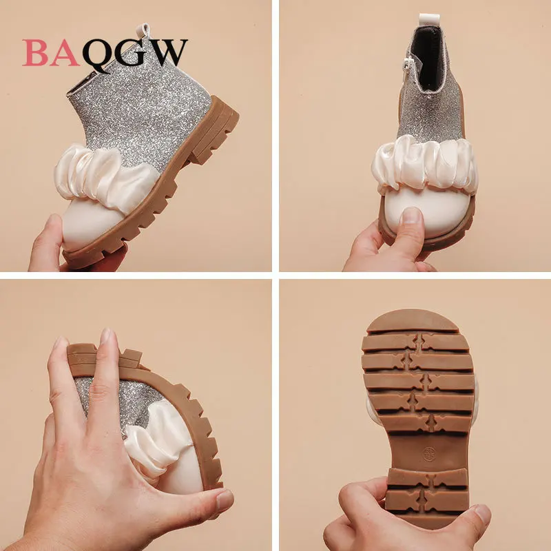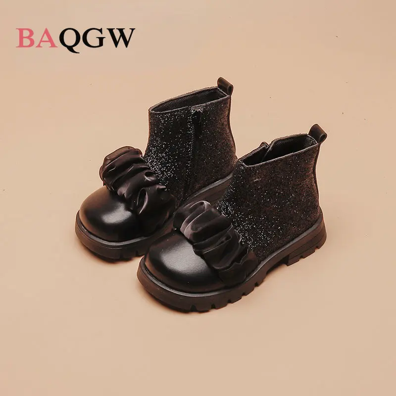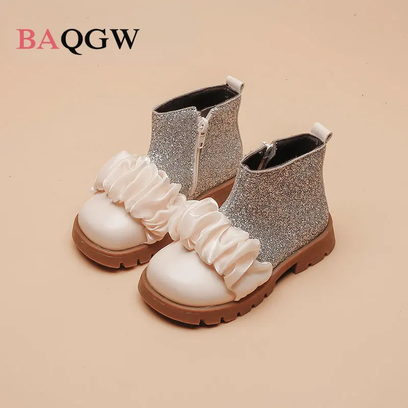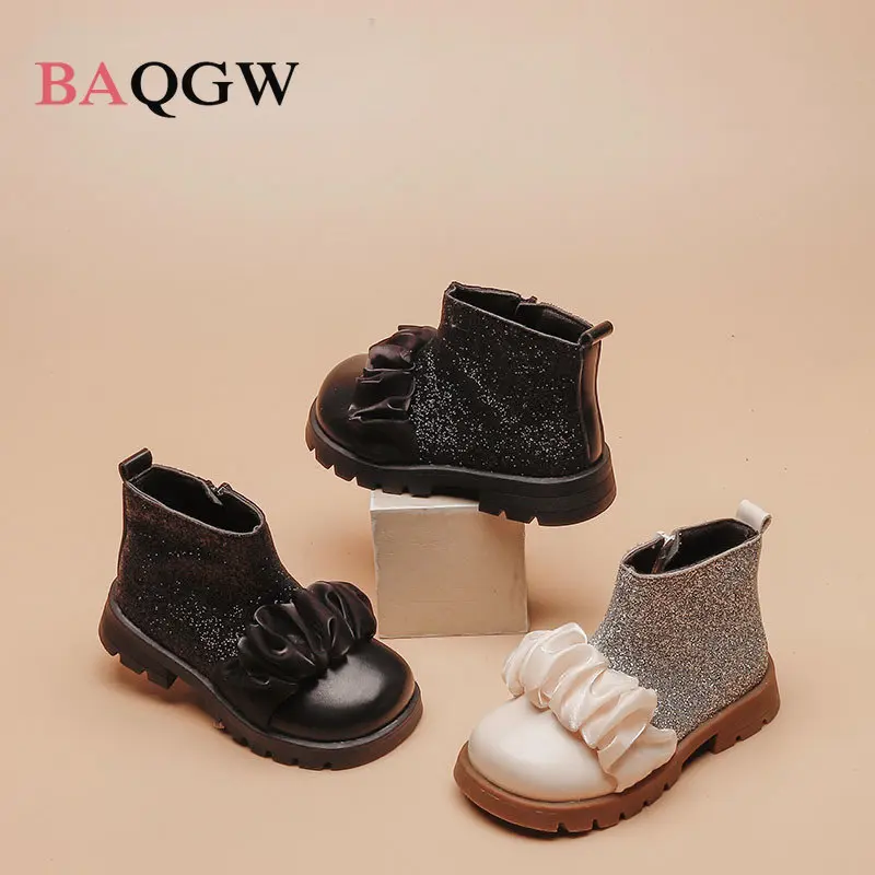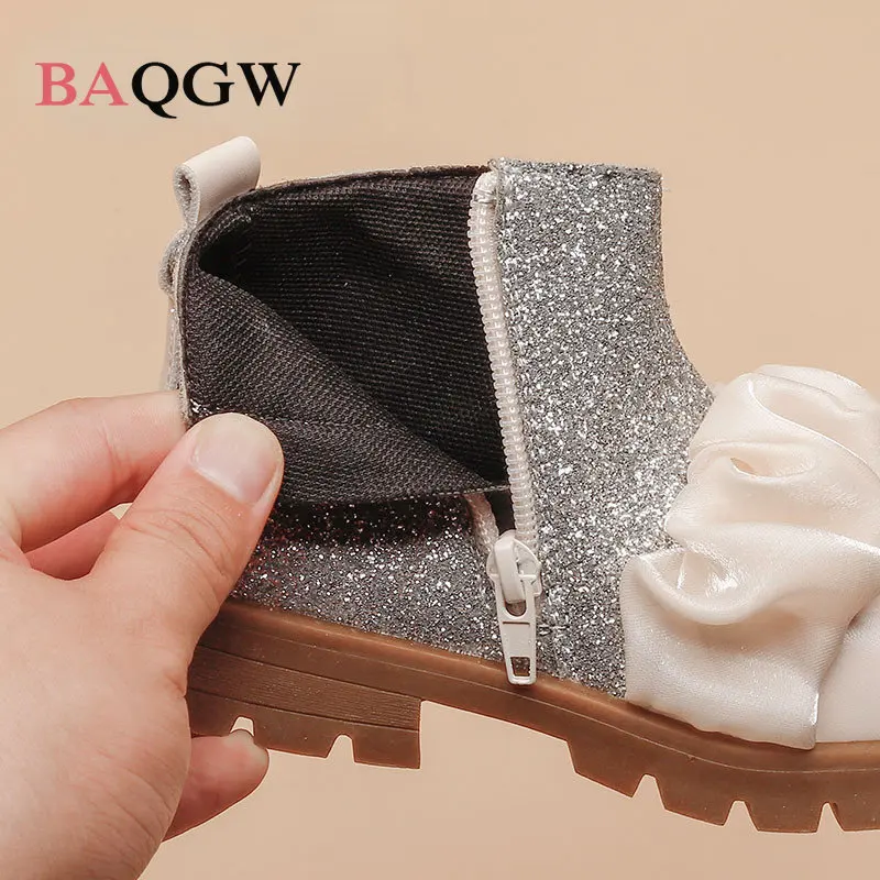 Girl Fashion Sparkly Princess Boots Chunky Elegant Cute Children Short Boot Patent Leather Autumn Fashion Kids Shoes Size 23-36