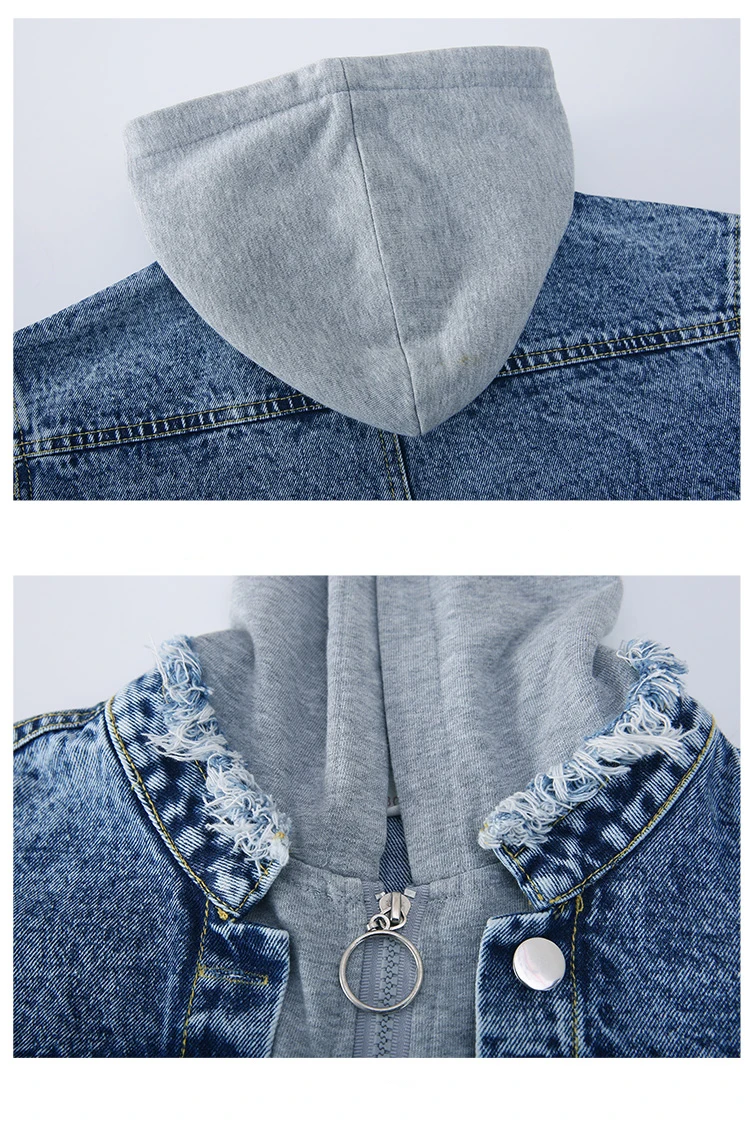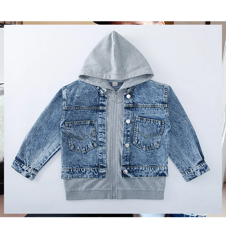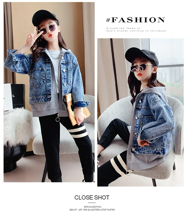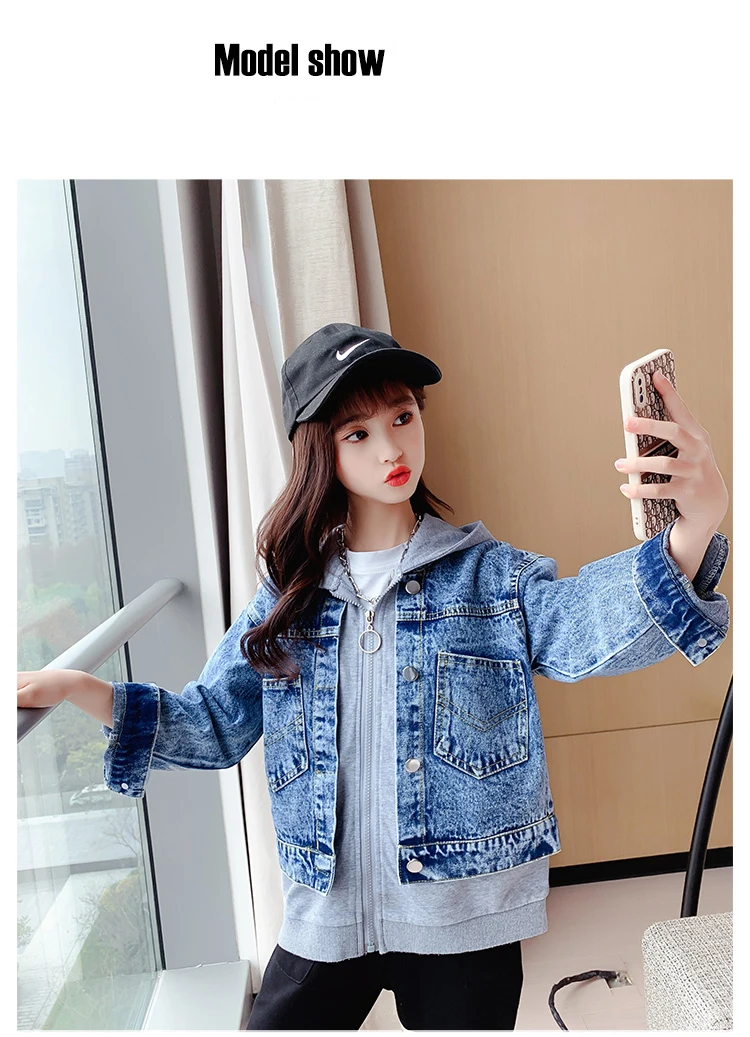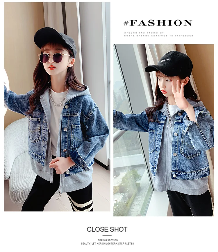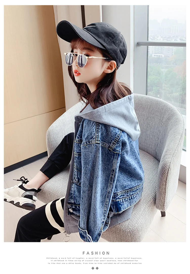 Girls Denim Jackets Hooded Coats Patchwork Spring Autumn Children Casual Outerwear Teenager Kids Jean Jacket 6 8 10 12 14 Years
